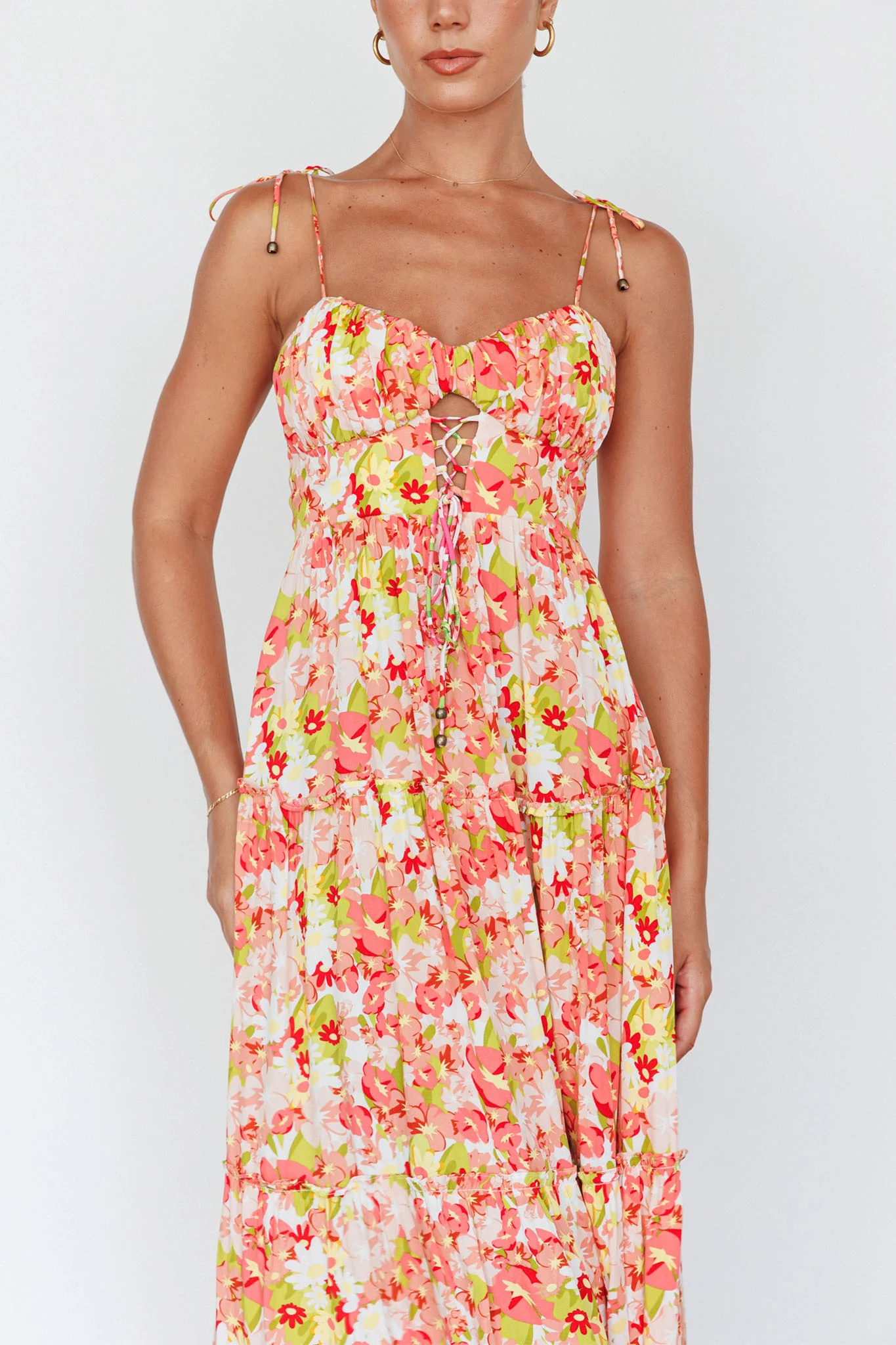 Kinlee Lace-Up Bodice Maxi Dress Floral Pink