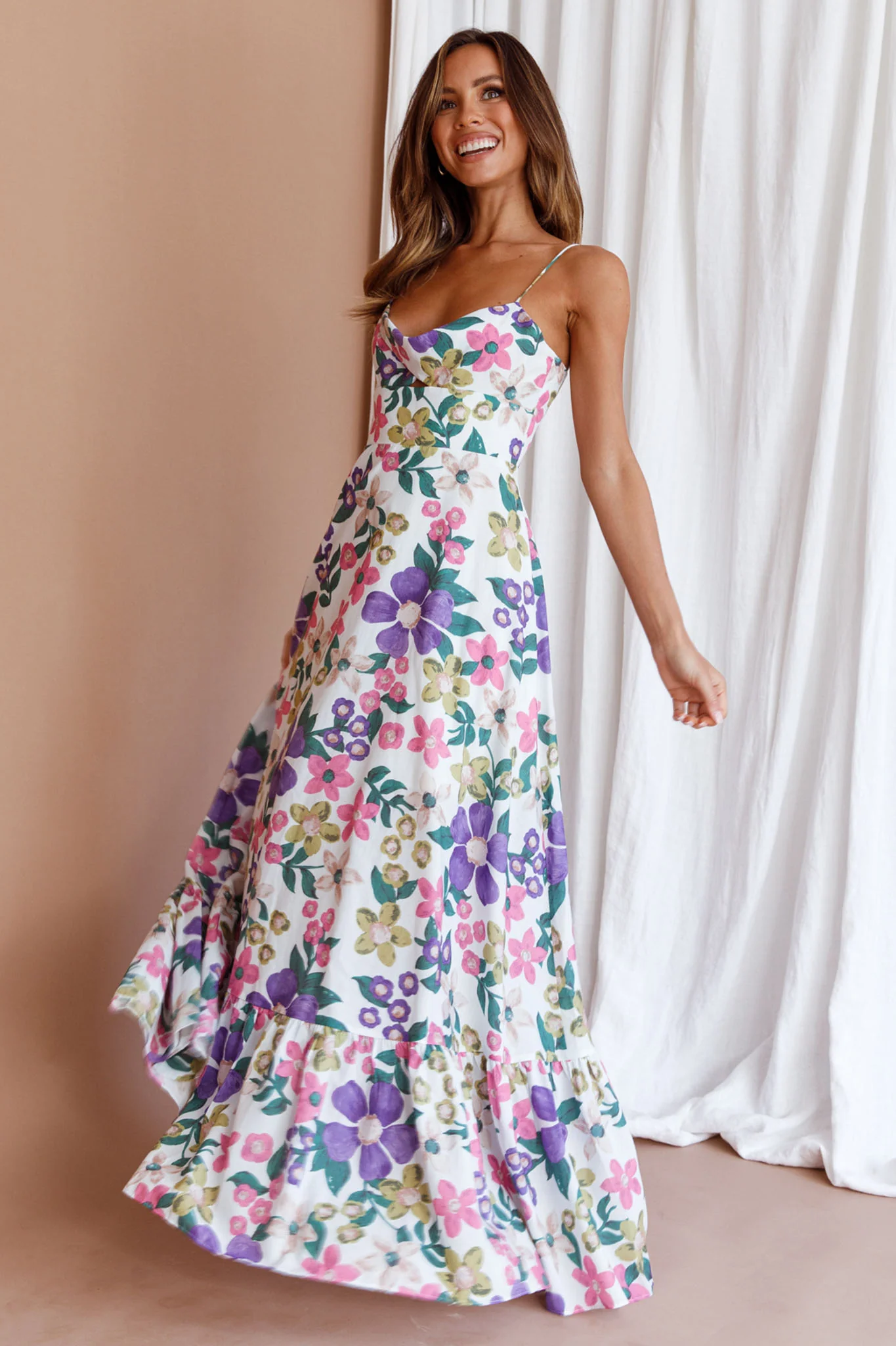 Ibiza Sunset Bust Flower Midi Dress Lilac