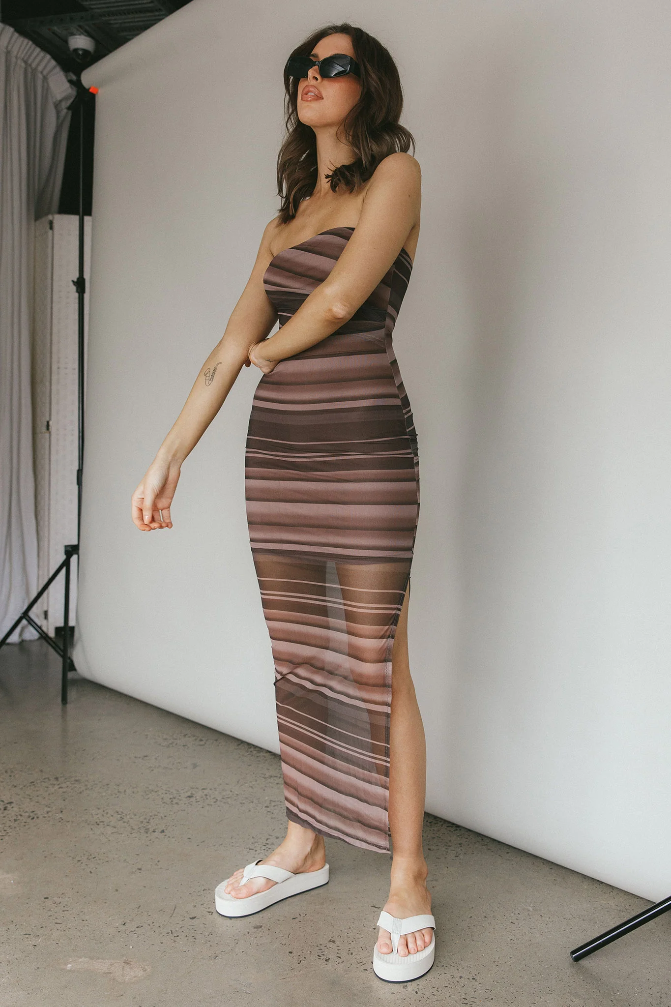 Lane Cove Cami Strap Maxi Dress Print Mocha