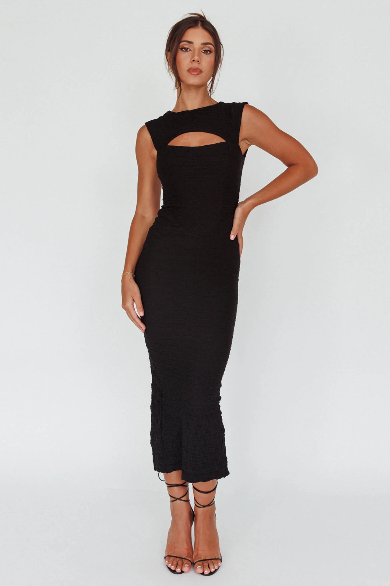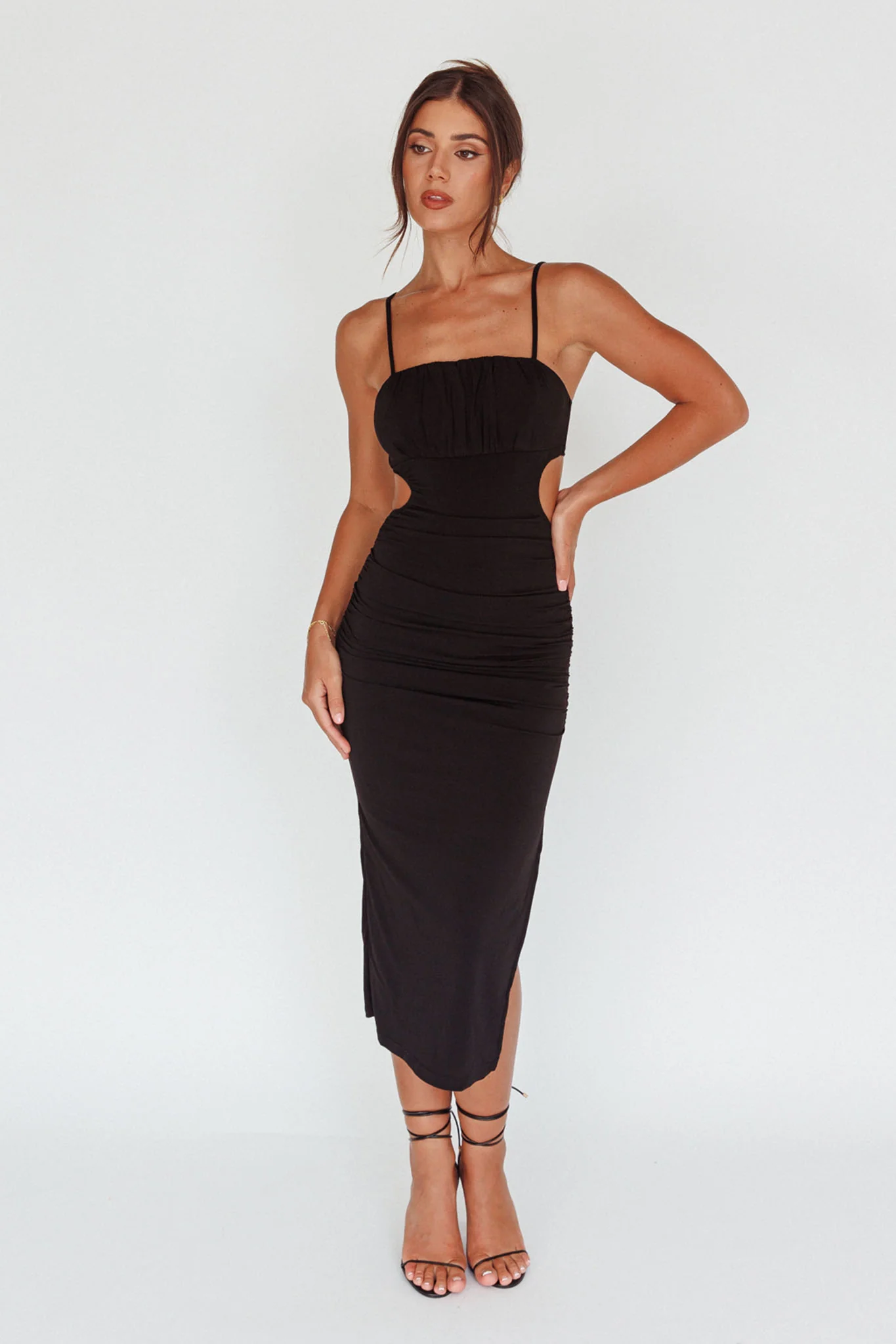 Mary Jane Gathered Bust Tie Back Midi Dress Black