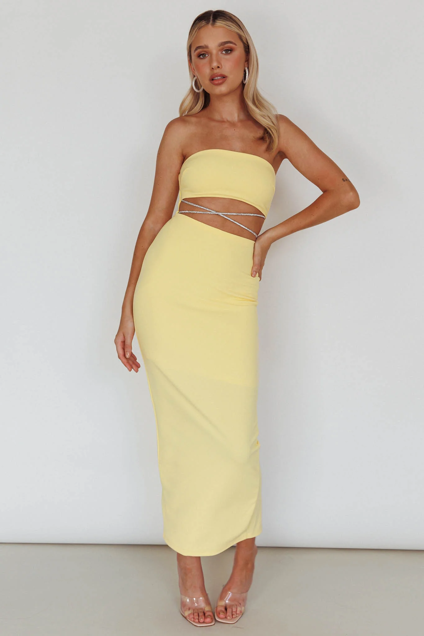 Dream Crush Lace-Up Back Side Split Midi Dress Yellow