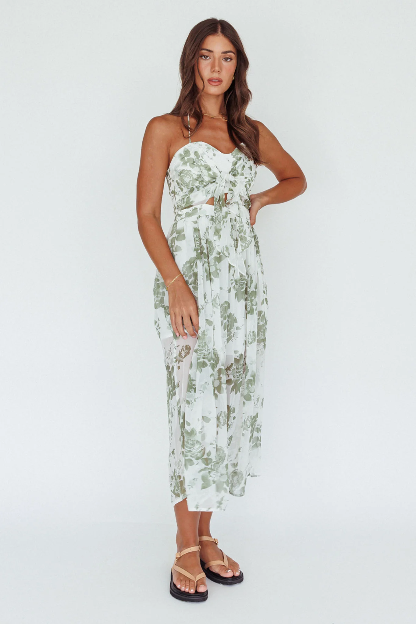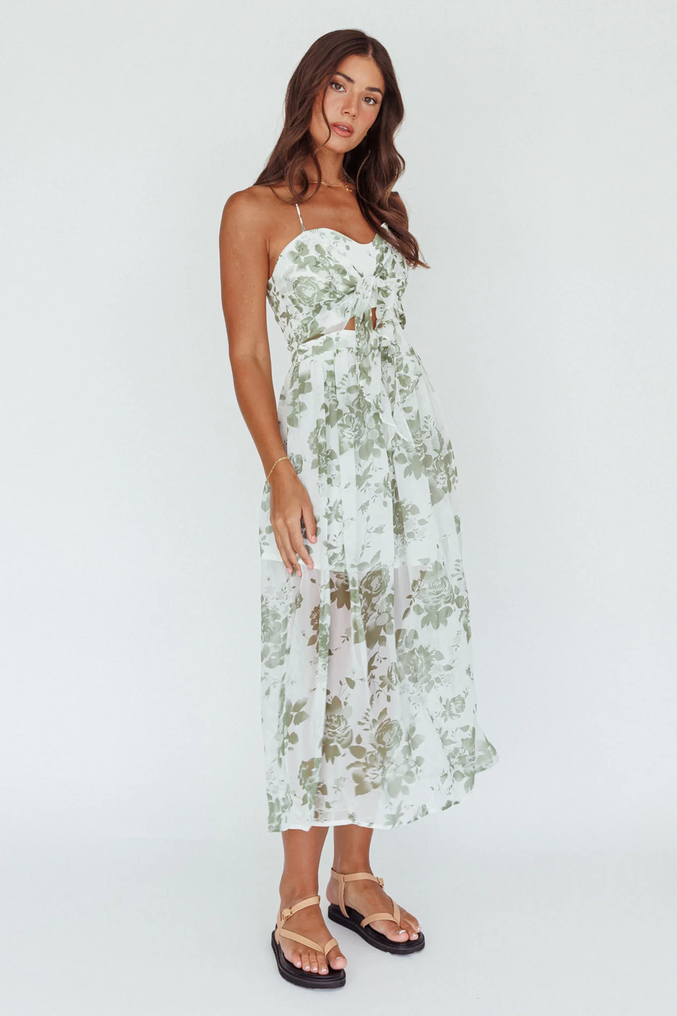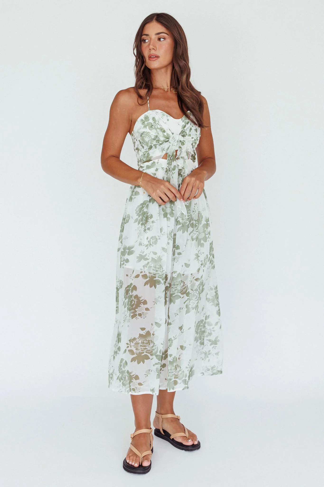 Los Feliz Tied Bust Halterneck Midi Dress Floral Green