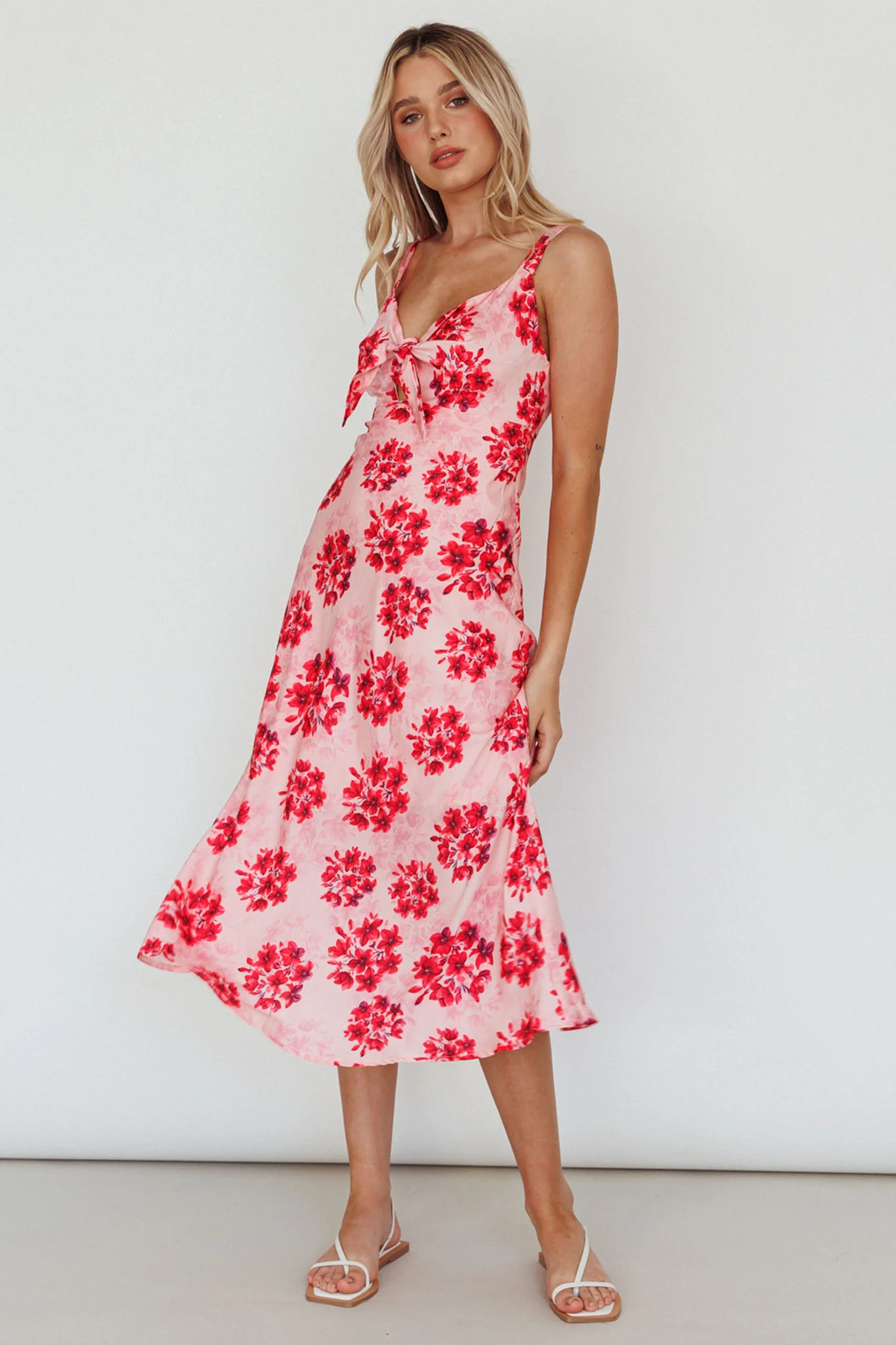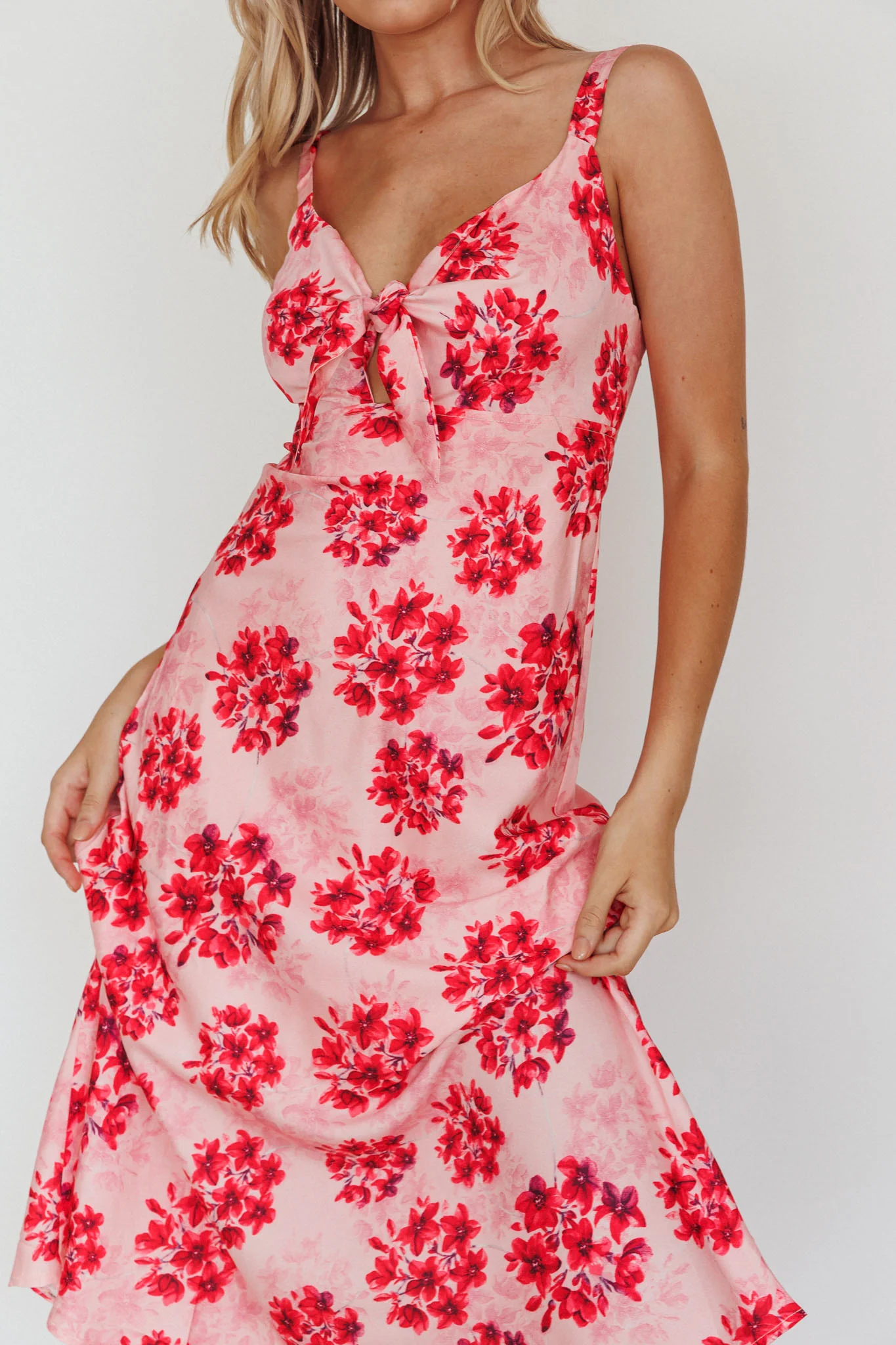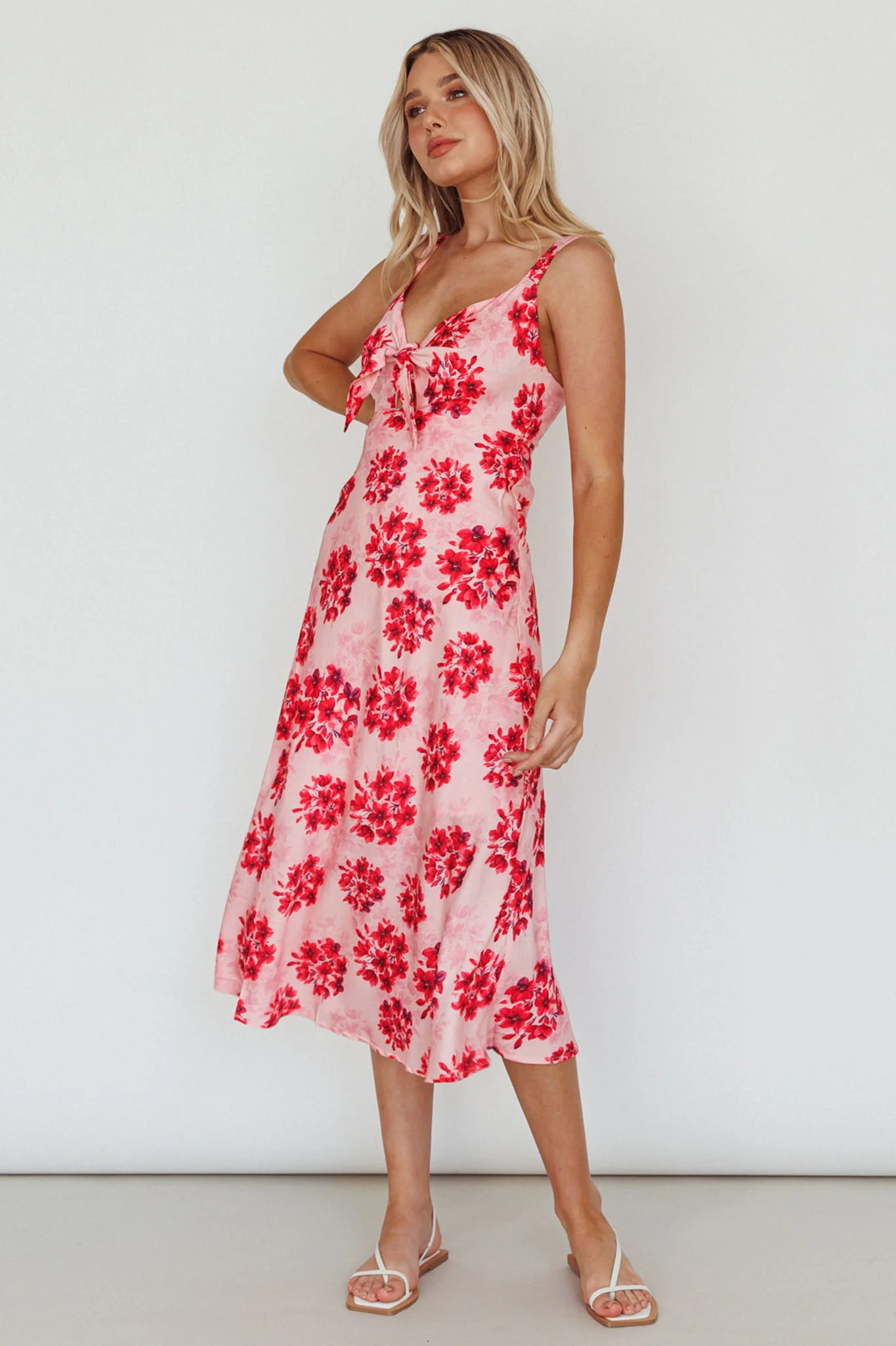 Starry Night Bust-Tie Midi Dress Floral Pink