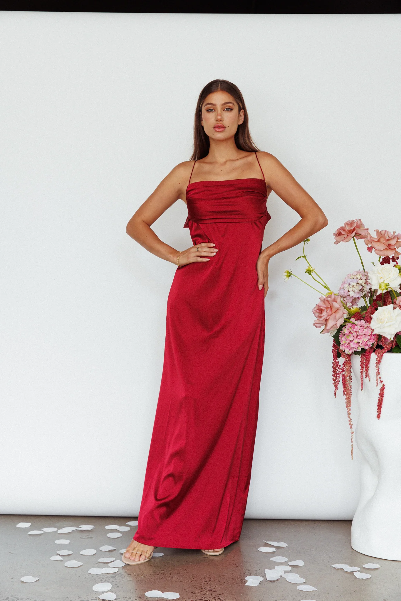 Kalisa Strapless Thigh Split Maxi Dress Burgundy