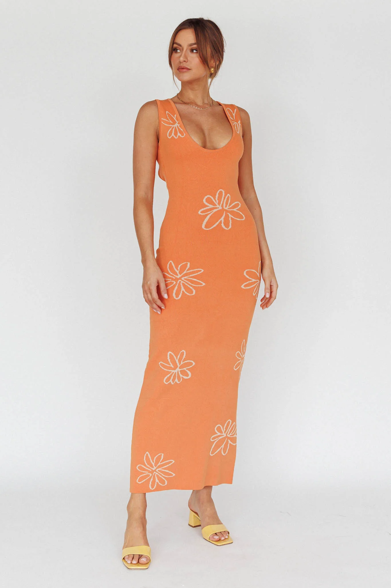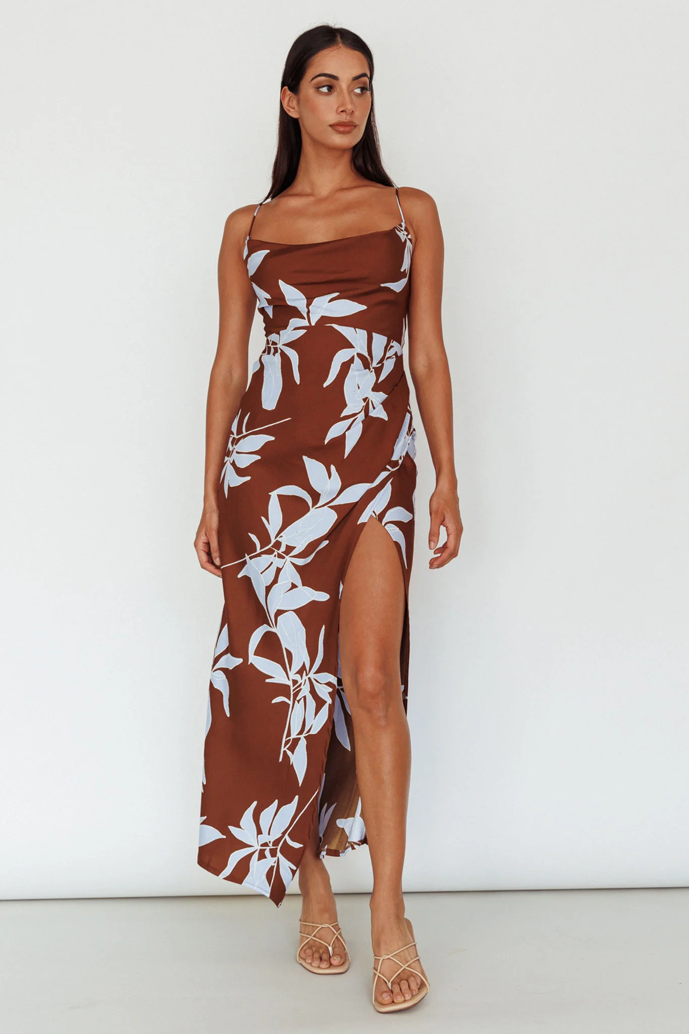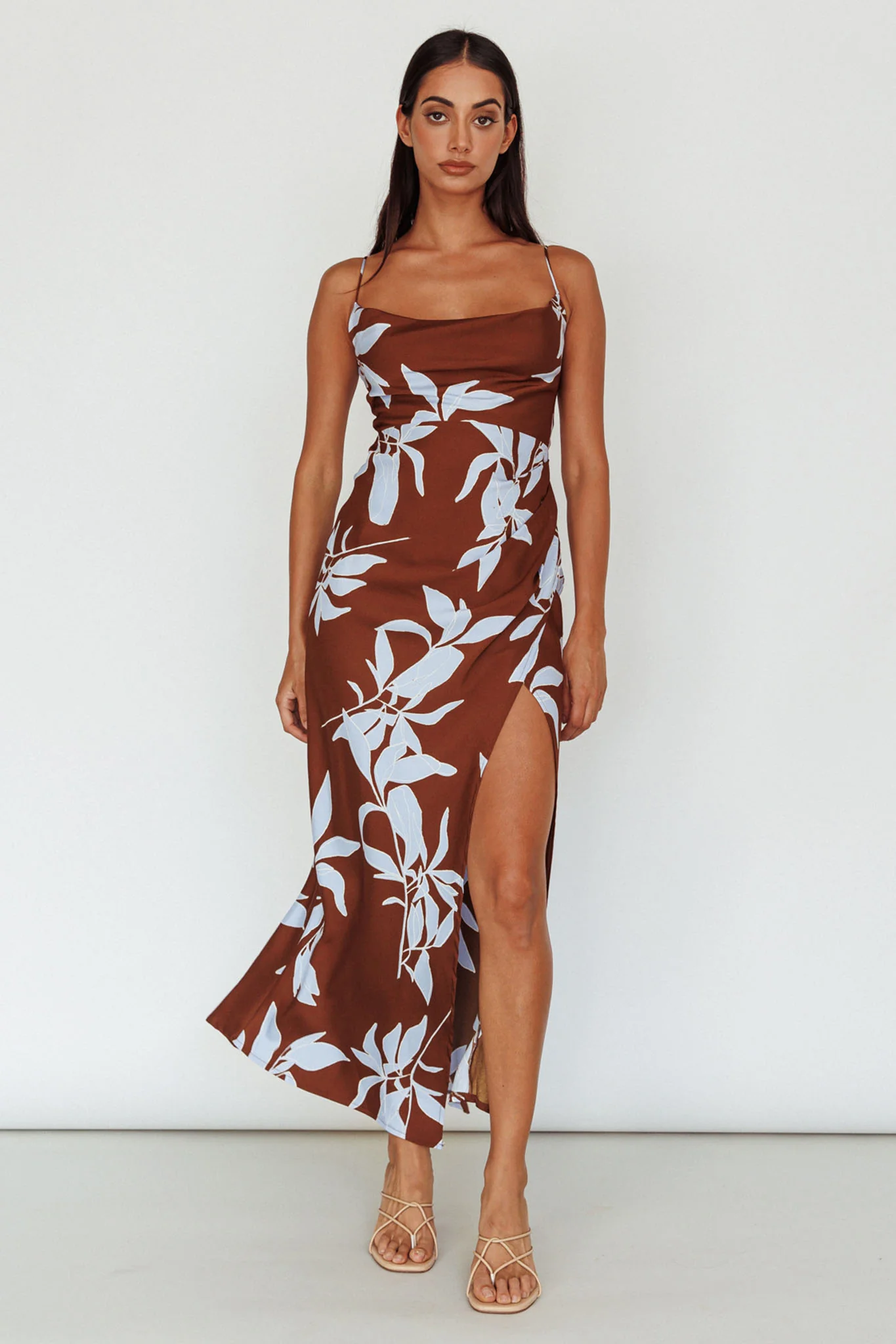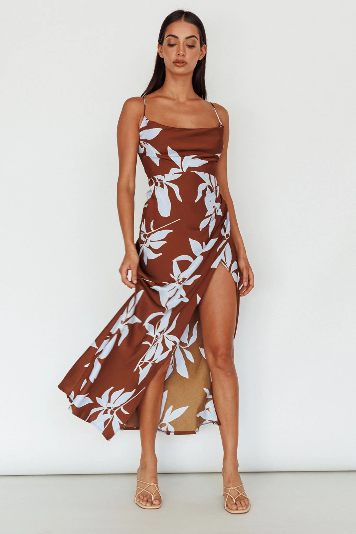 Sunday Bliss Tie-Up Back Cowl Neck Midi Dress Floral Yellow