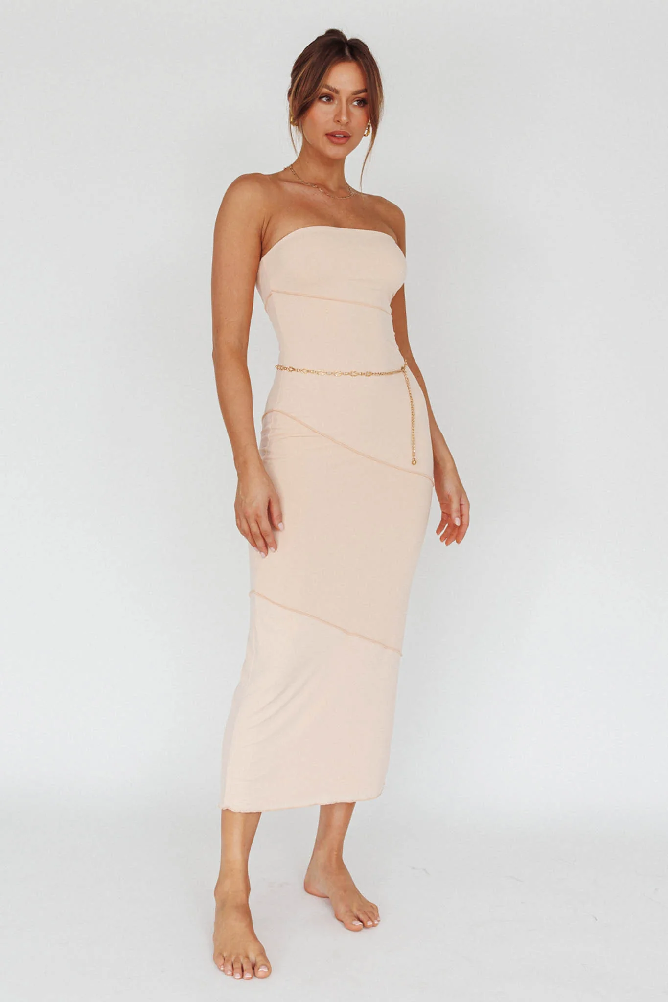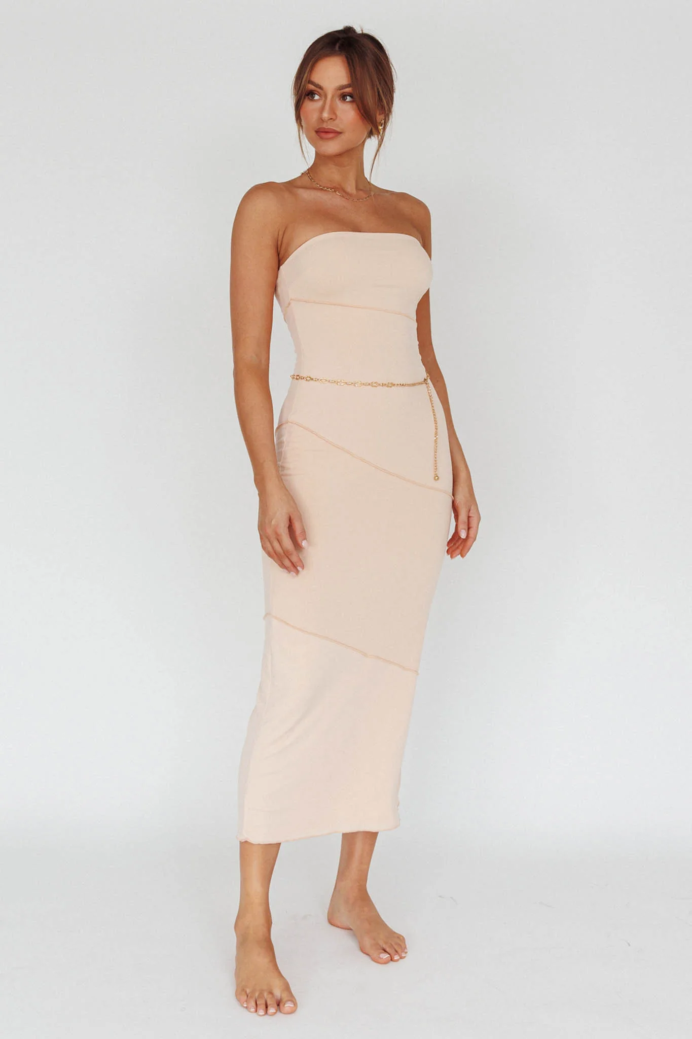 Divinity Twist Bust Tied Back Asymmetrical Hem Mini Dress Beige