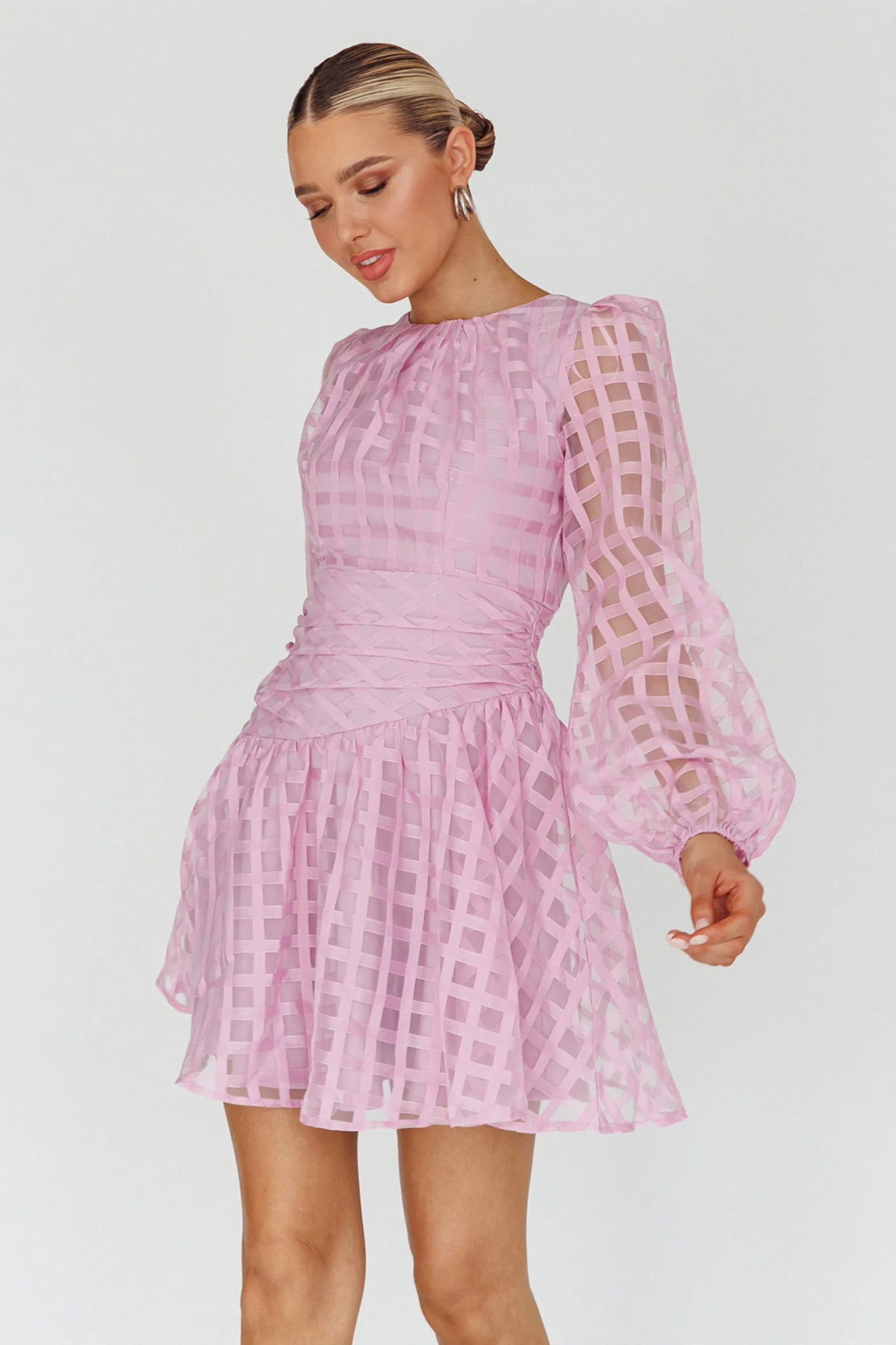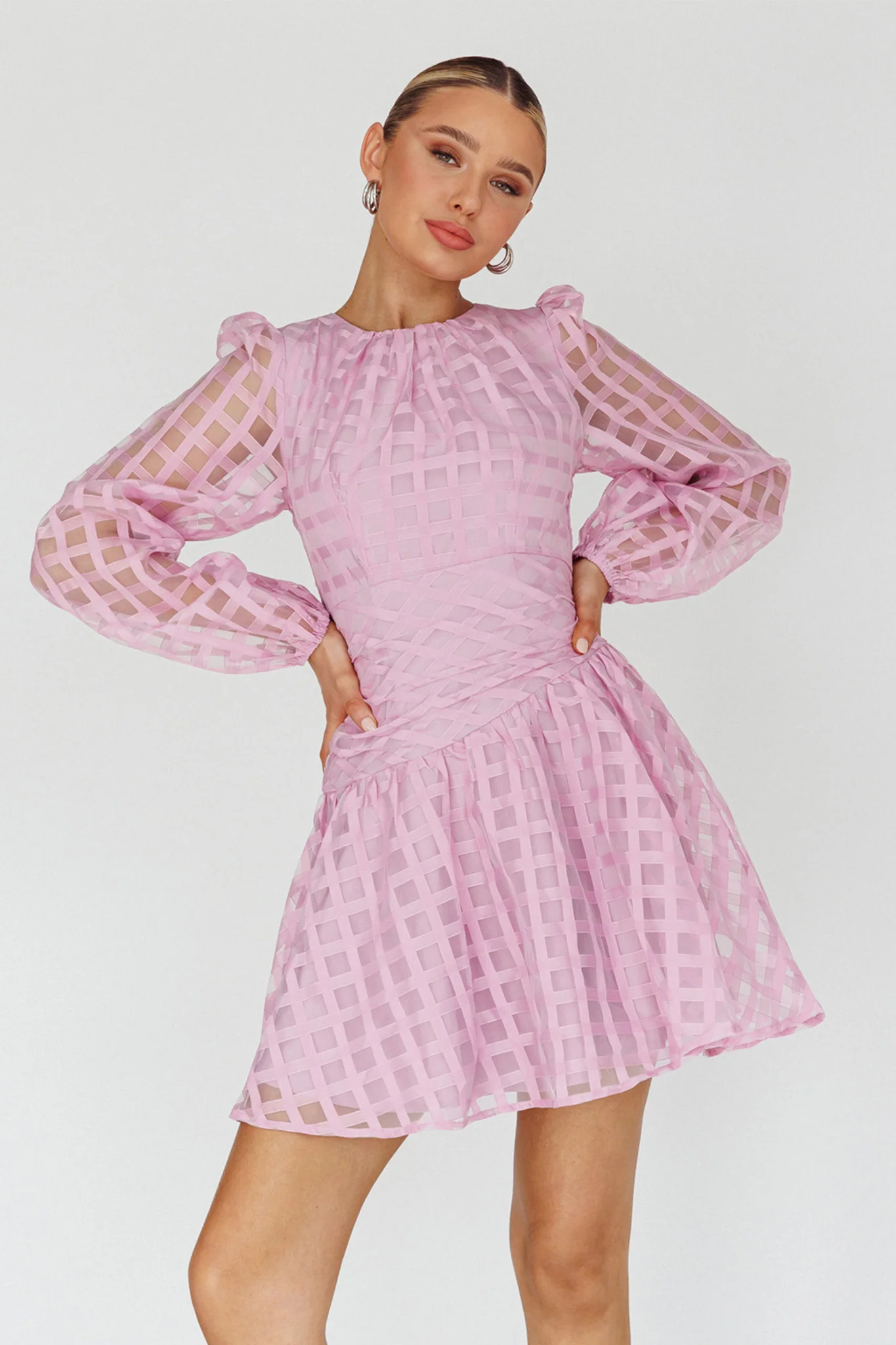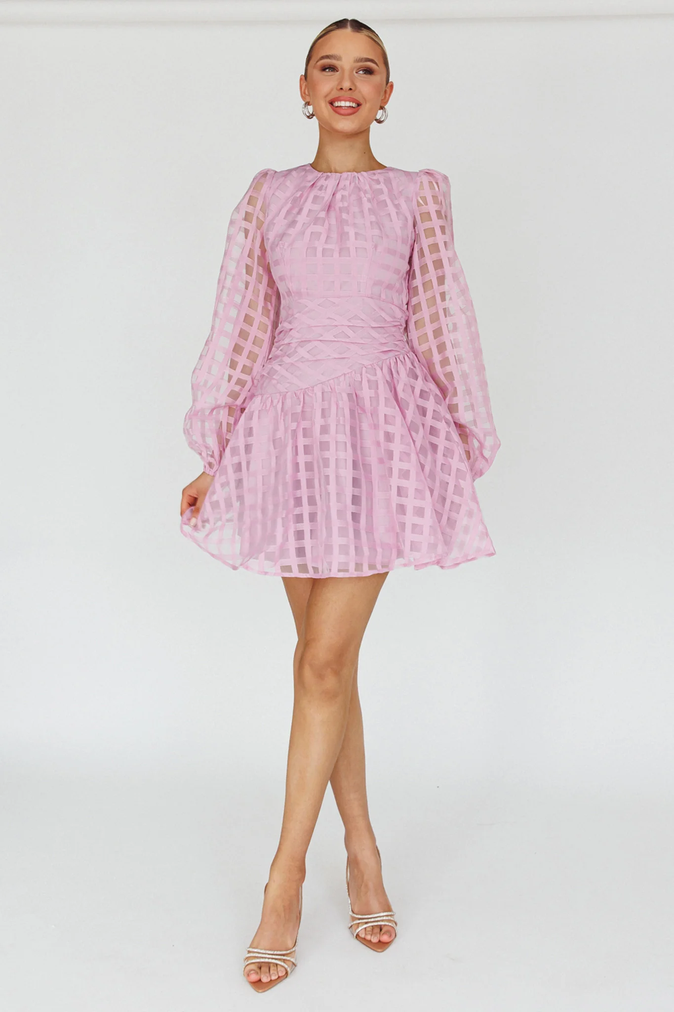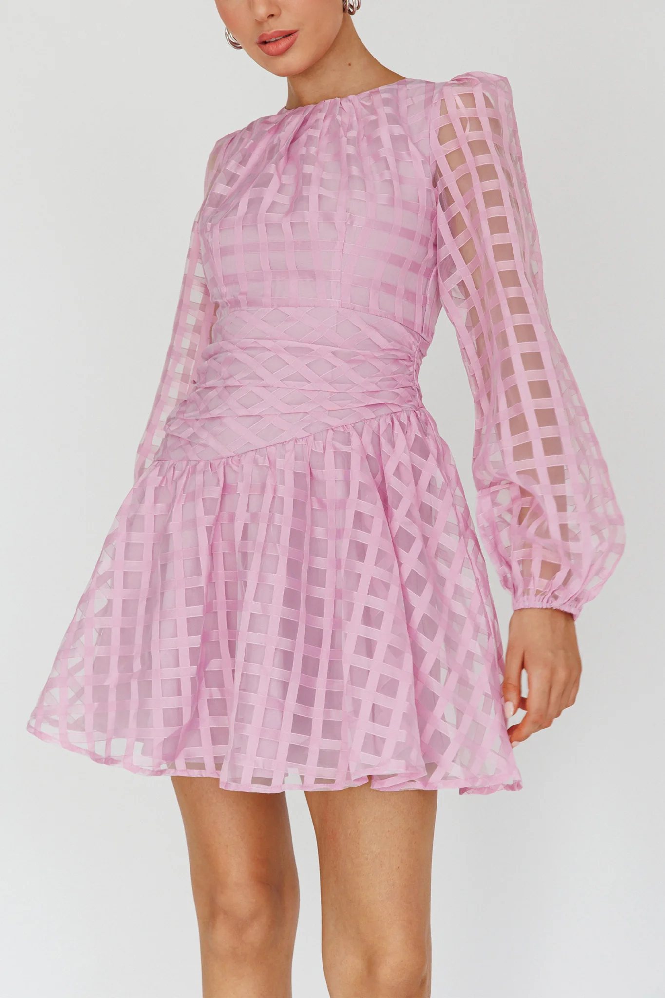 Tatiana Long Sleeve Plaid Mini Dress Lilac