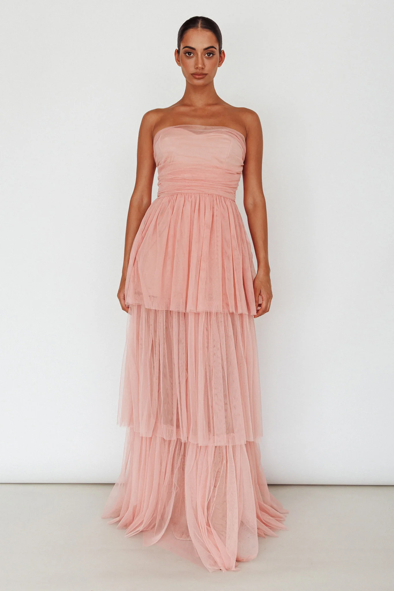 Rosalia Ruched Ruffle Maxi Dress Fuchsia