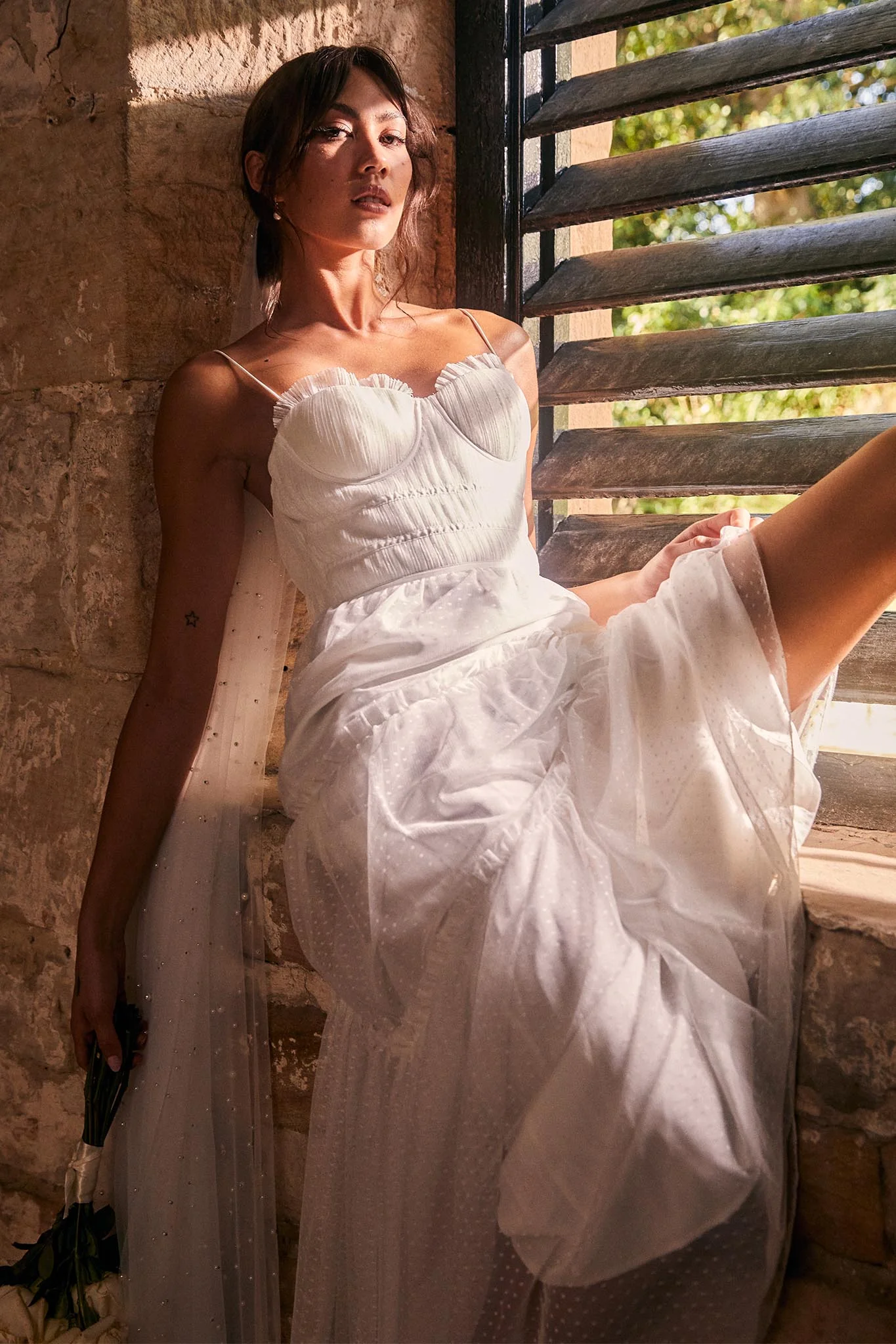 Calla Sweetheart Neckline Hail Spot Midi Dress White