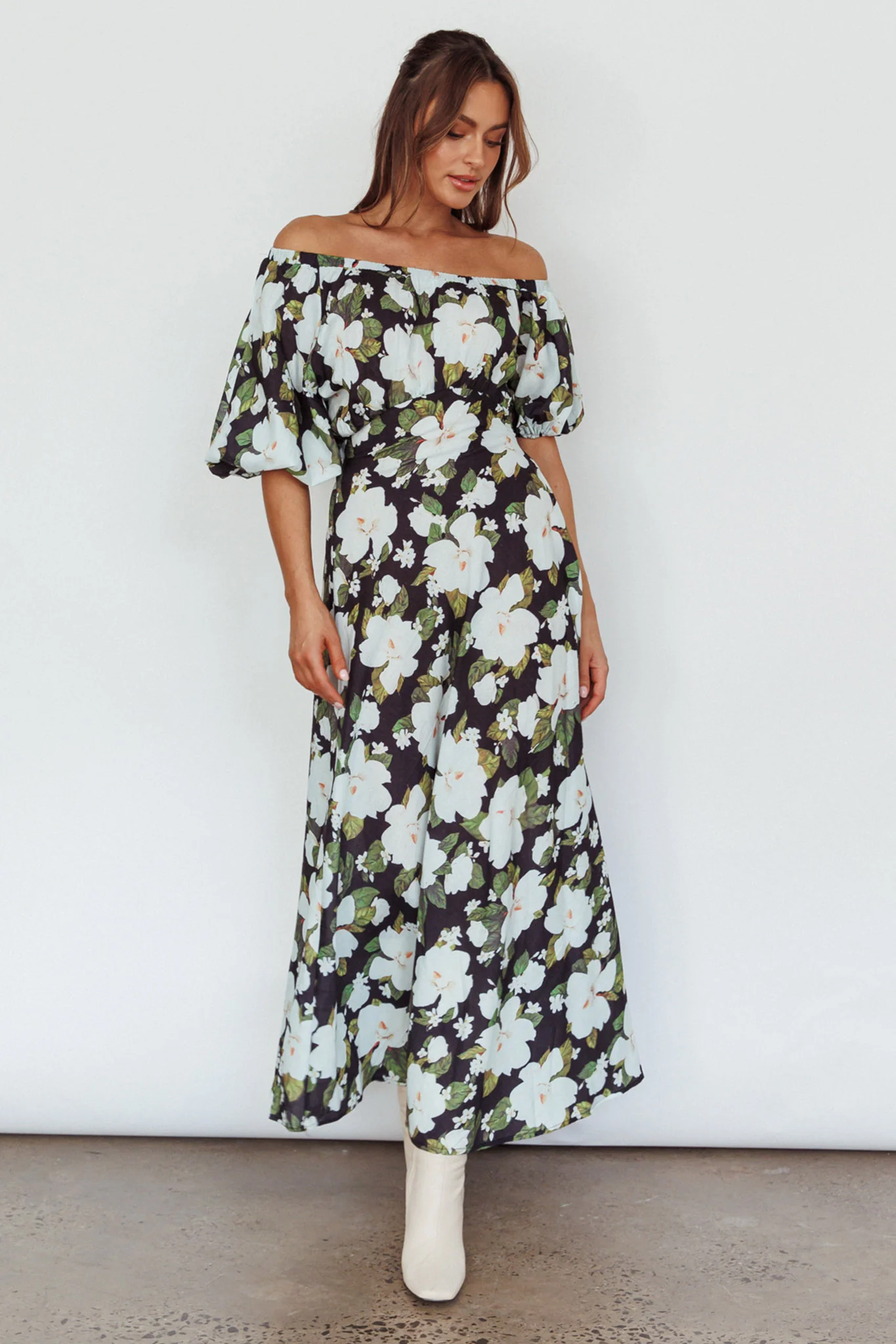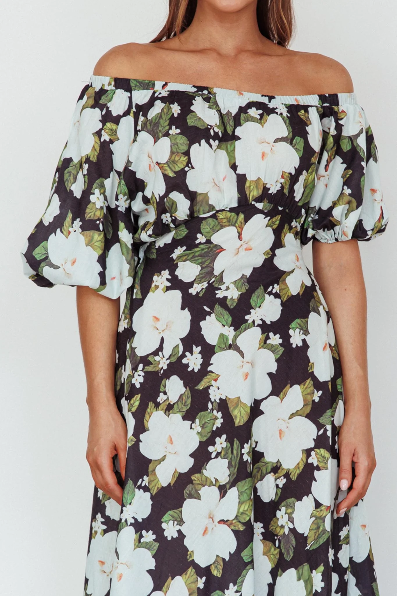 Addicted To Love Pleated Bust Dress Floral Blue/Mocha