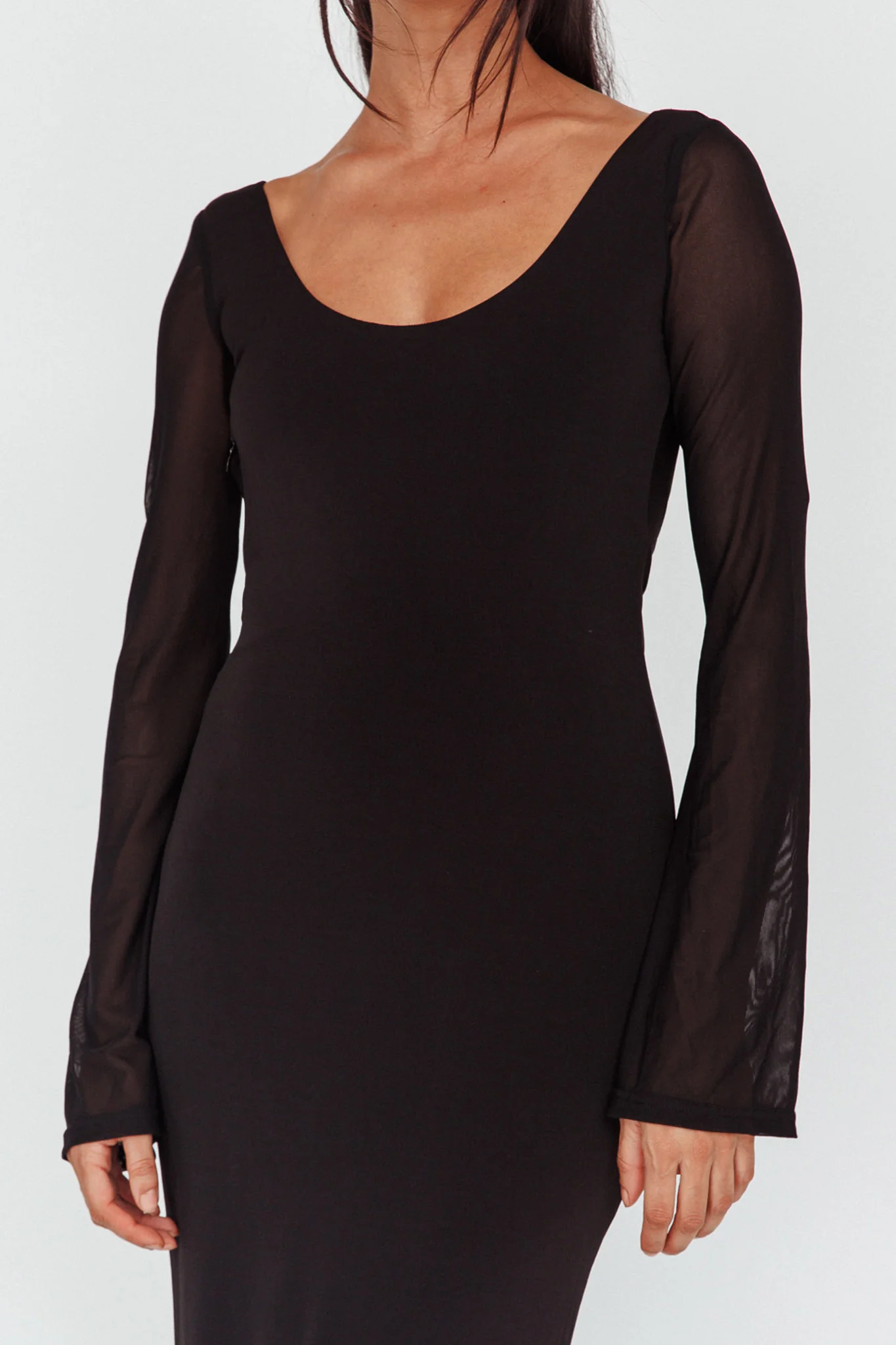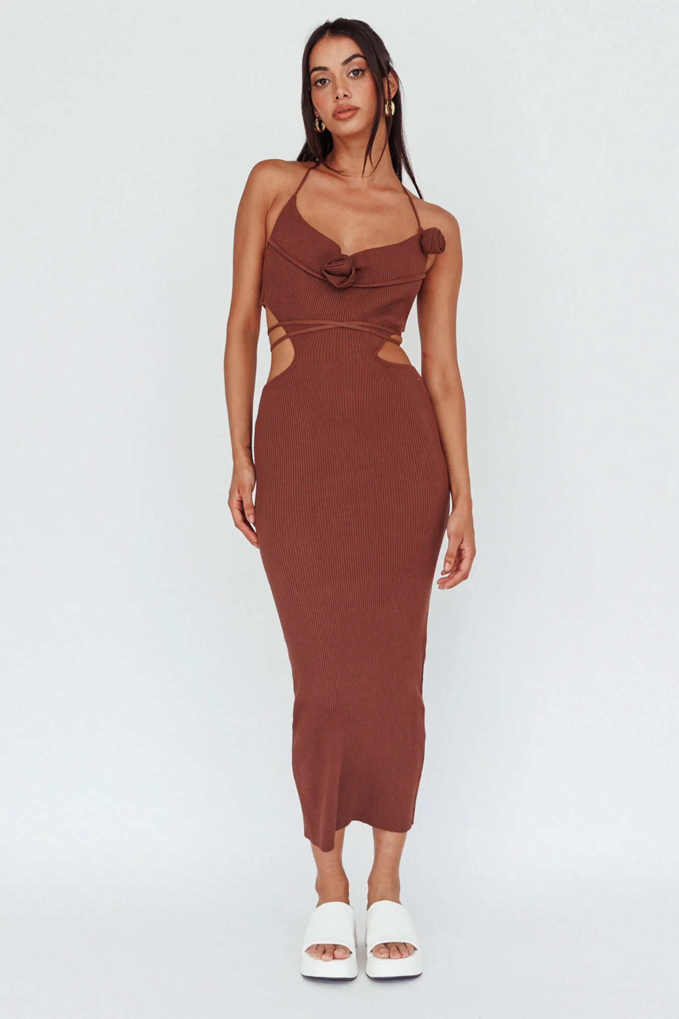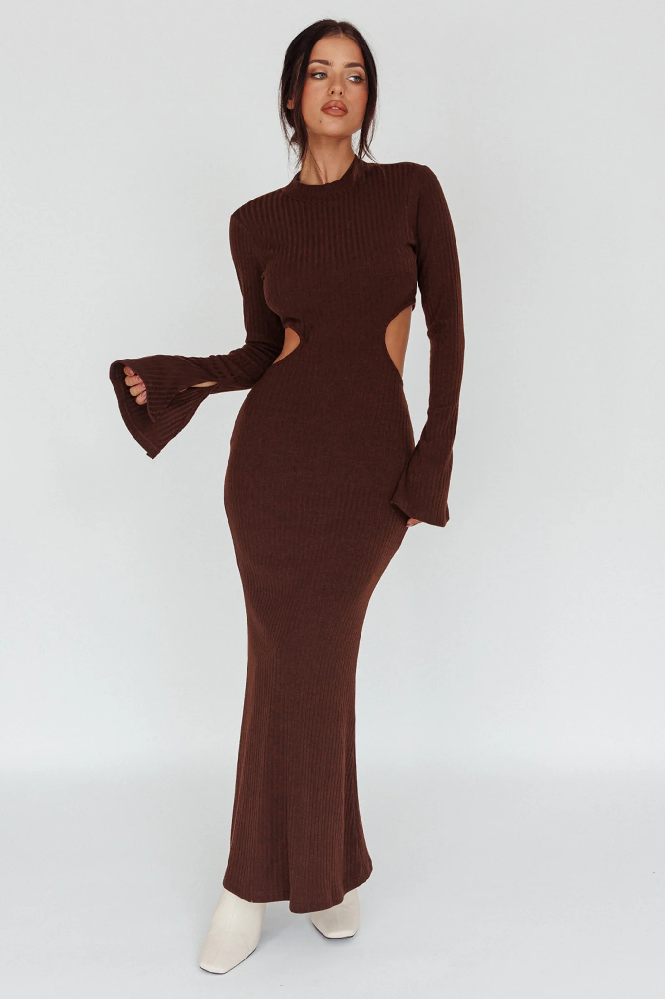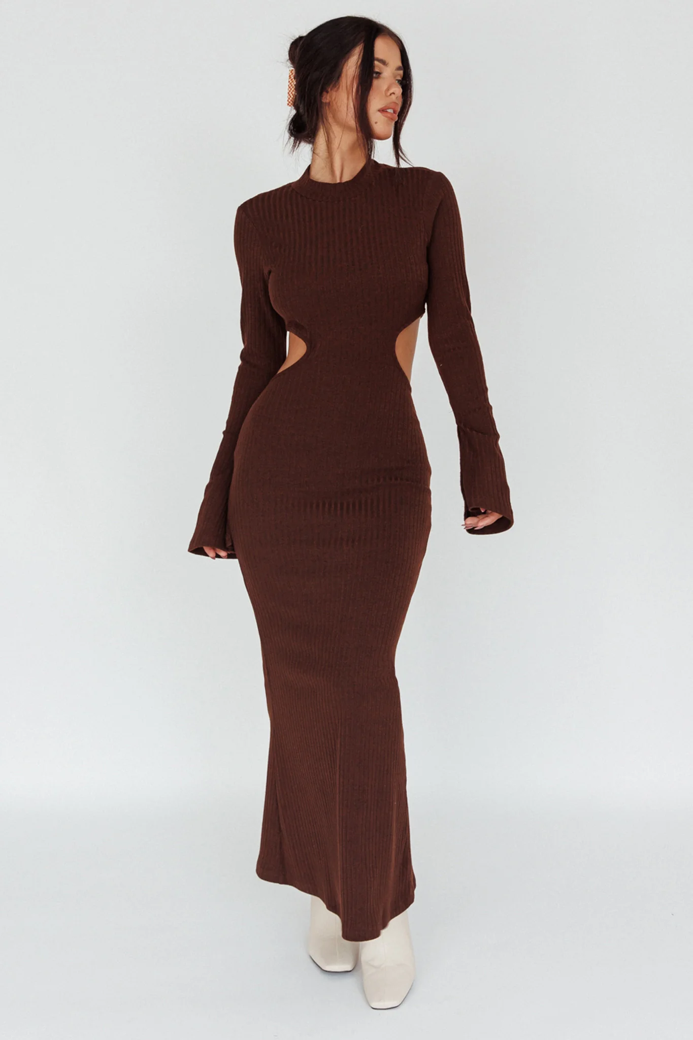 Shianne Long Sleeve Knit Maxi Dress Chocolate