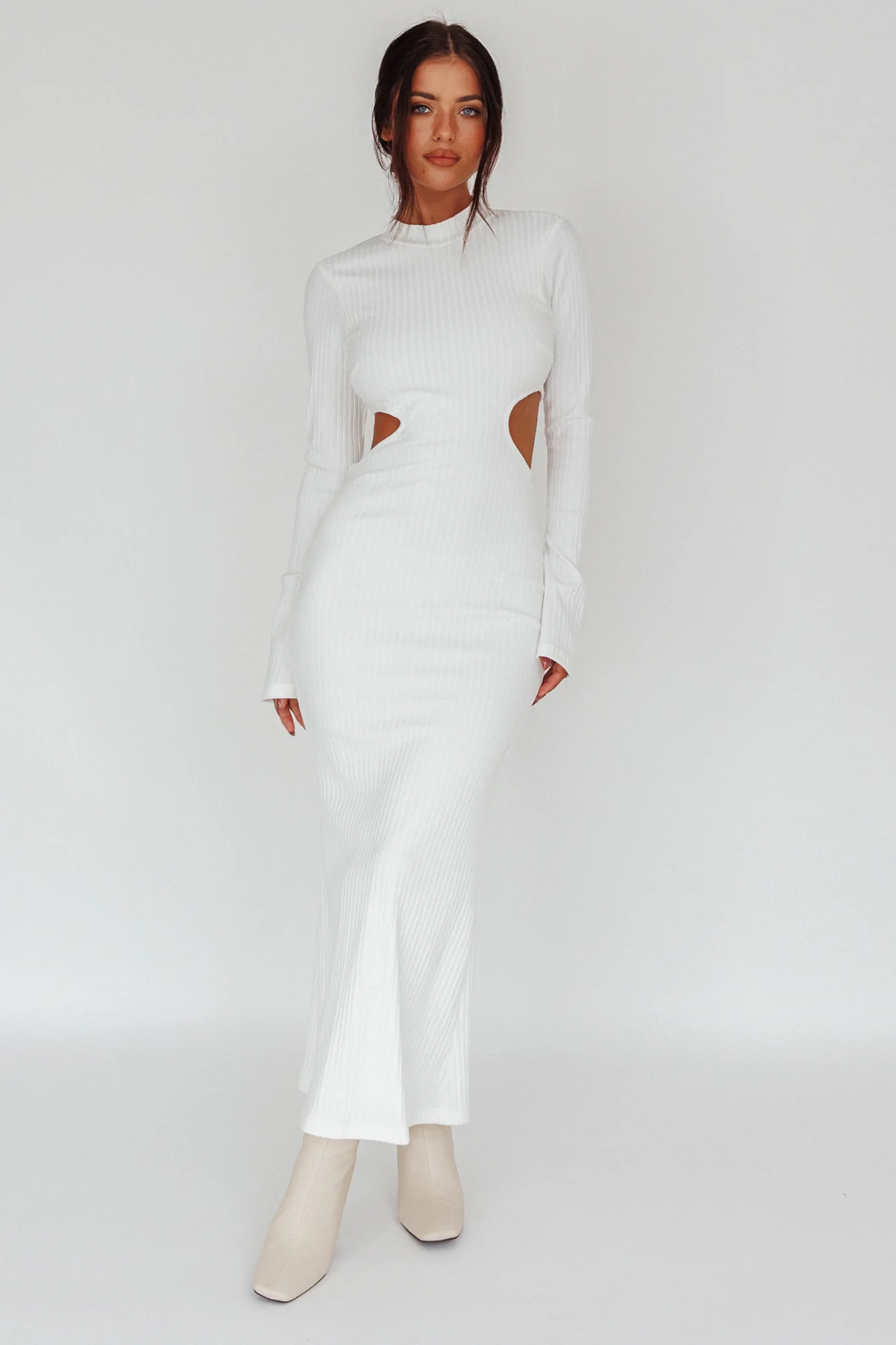 Revel Ruffle Trim Cut-Out Waist Dress Ivory