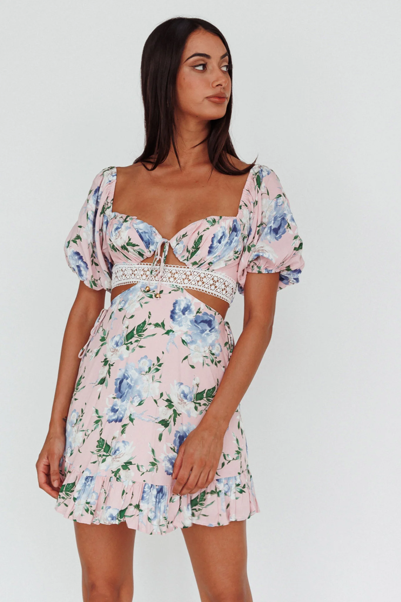 Jemilia Cut-Out Bust Flounce Mini Dress Floral Pink