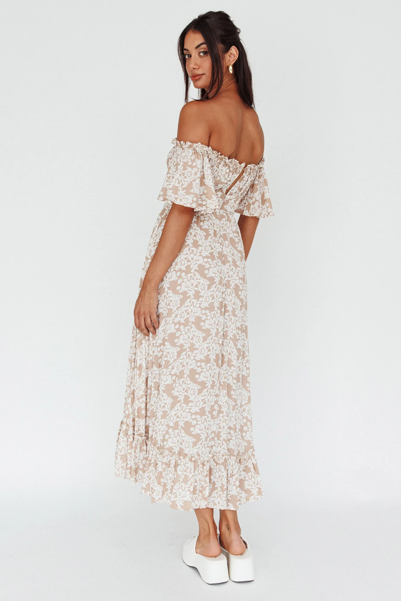 Voyager Off-Shoulder Bell Sleeve Midi Dress Floral Blush