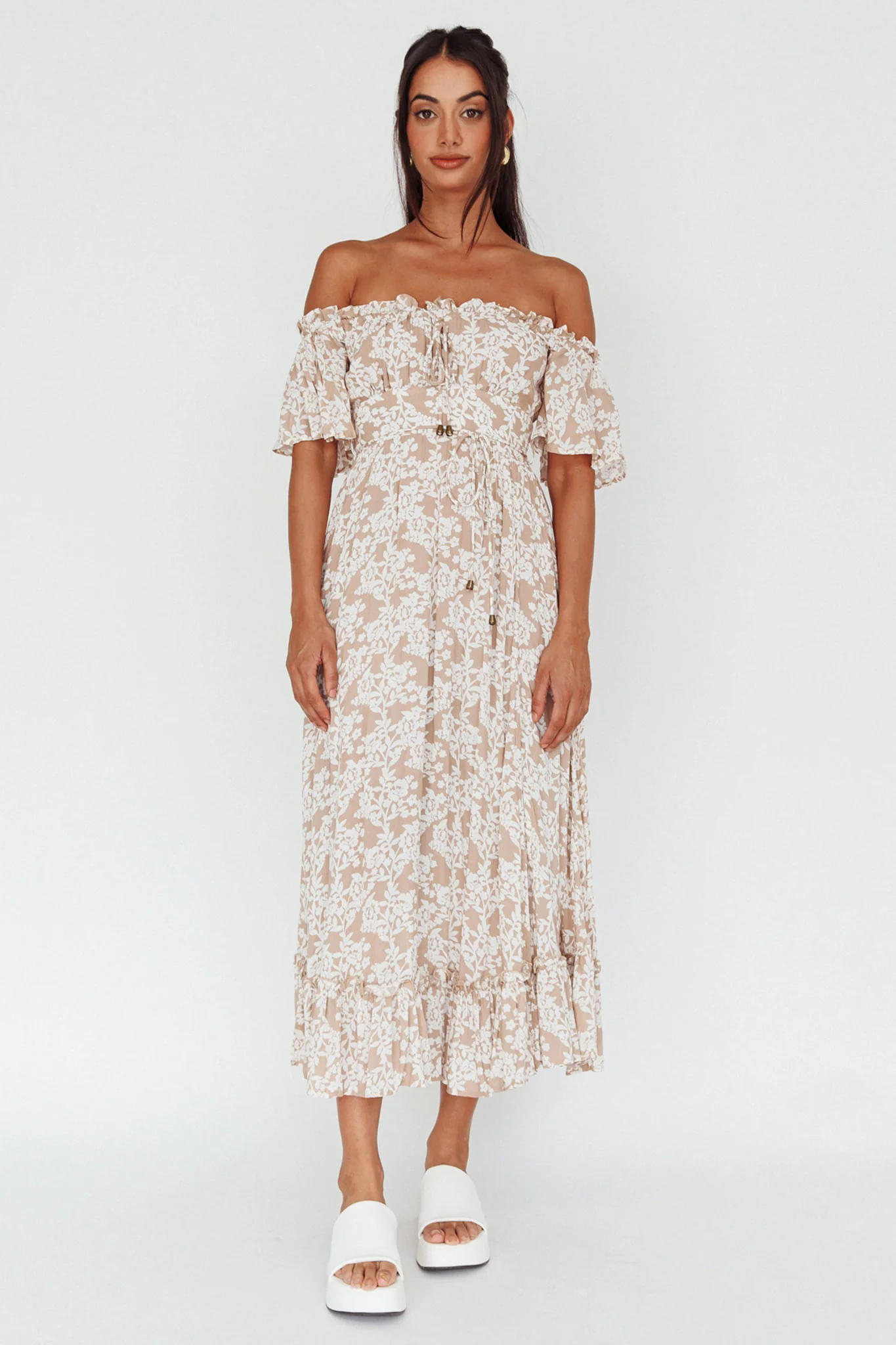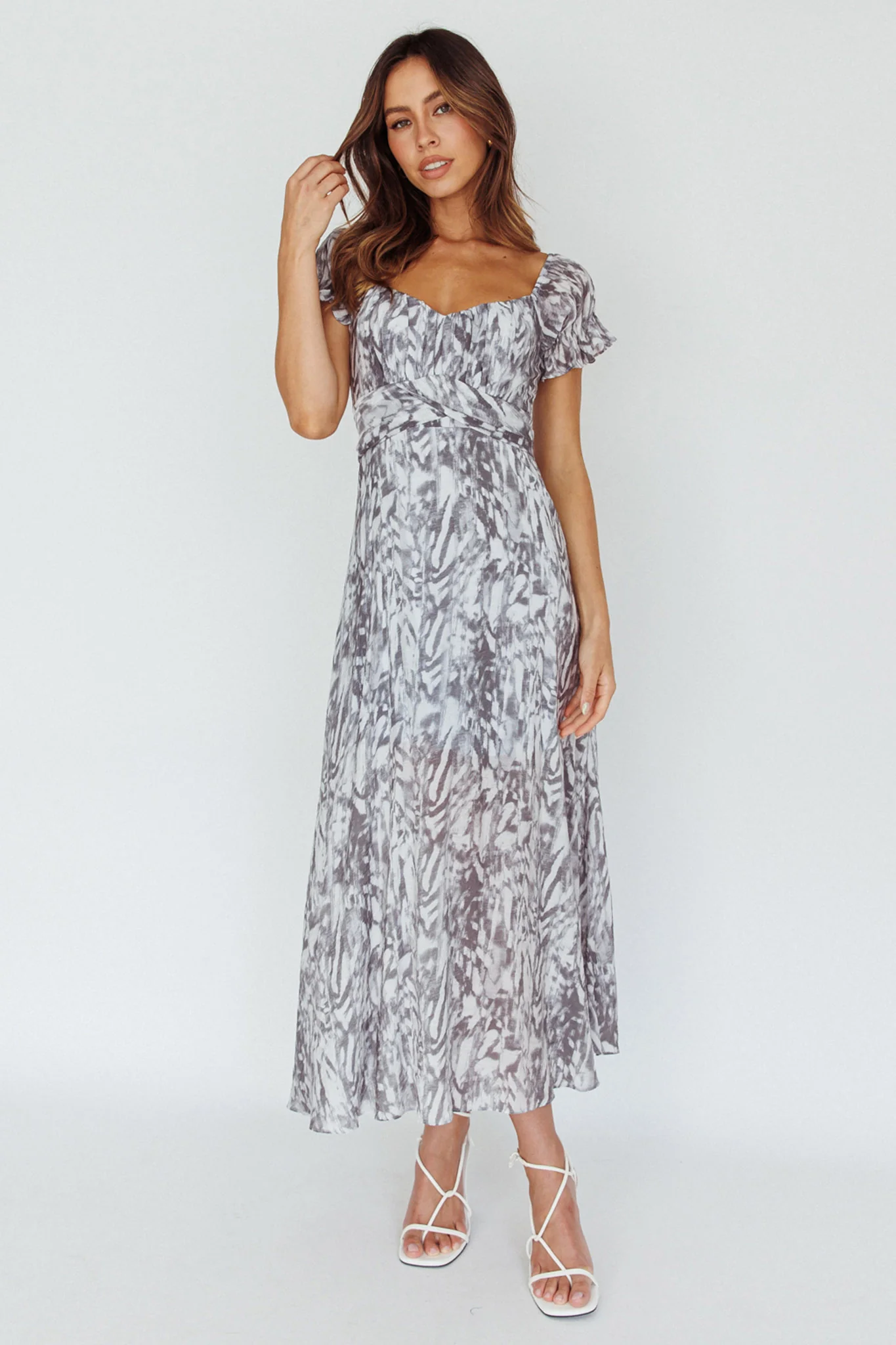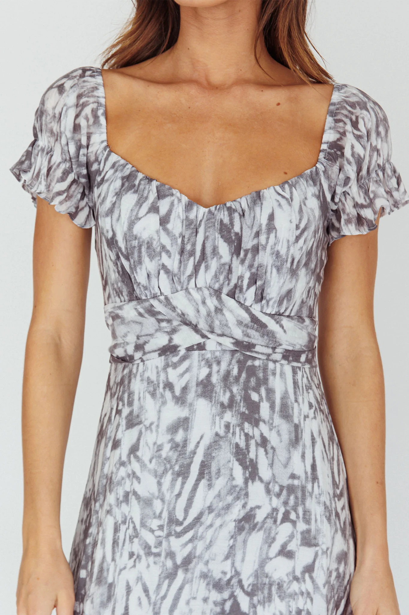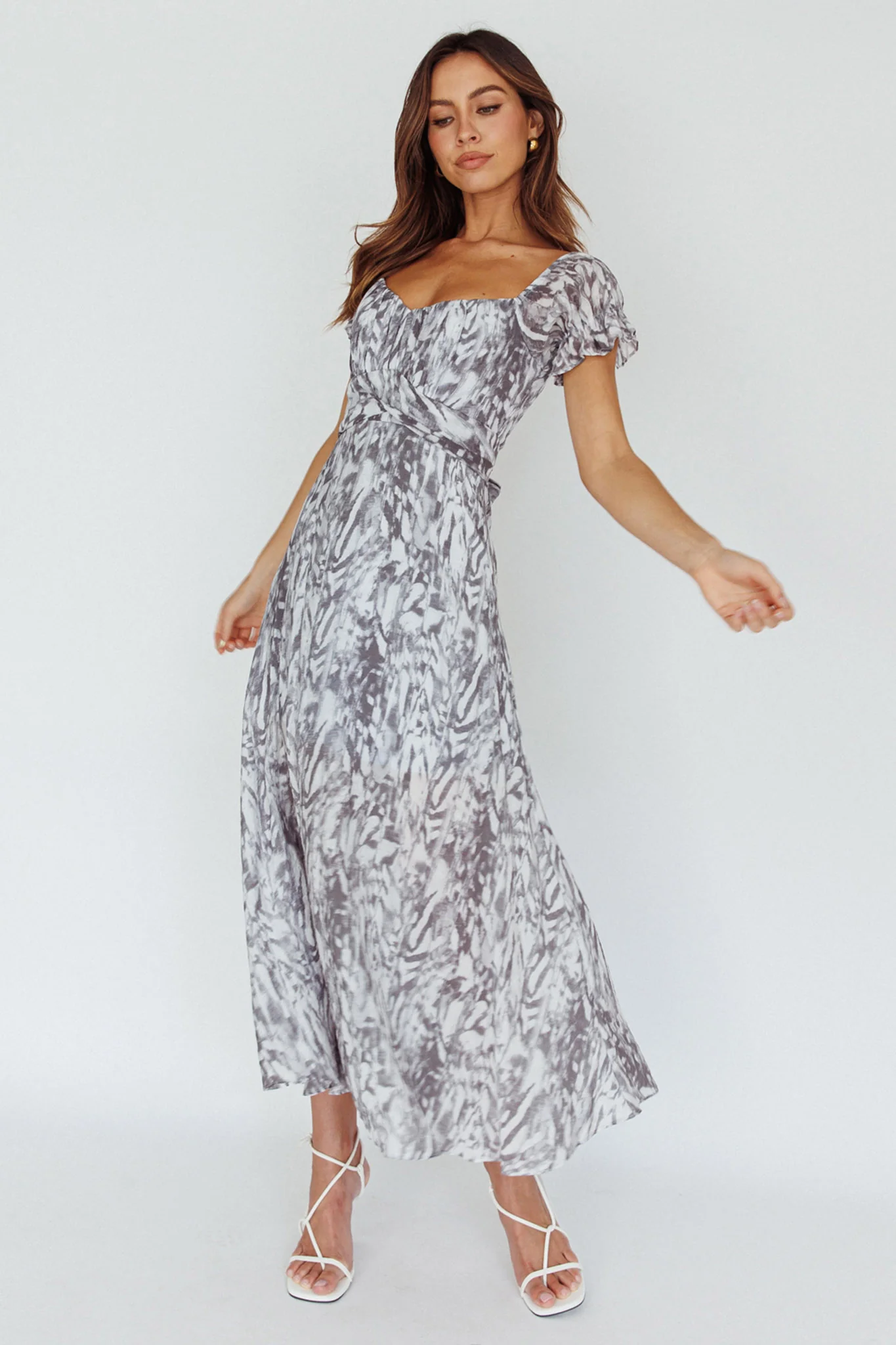 Linka Off-Shoulder Tie Back Midi Dress Printed Grey