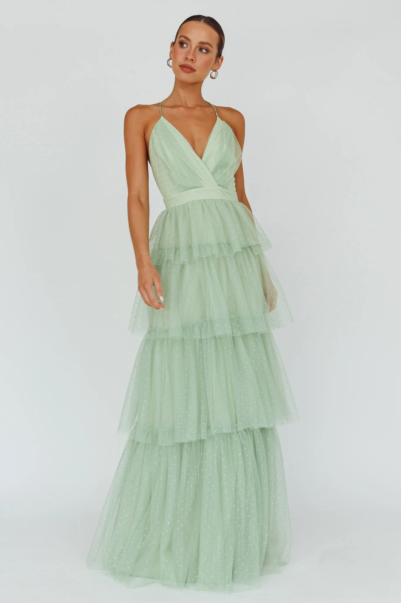 Seylah Tiered Frill Maxi Dress Glitter Sage