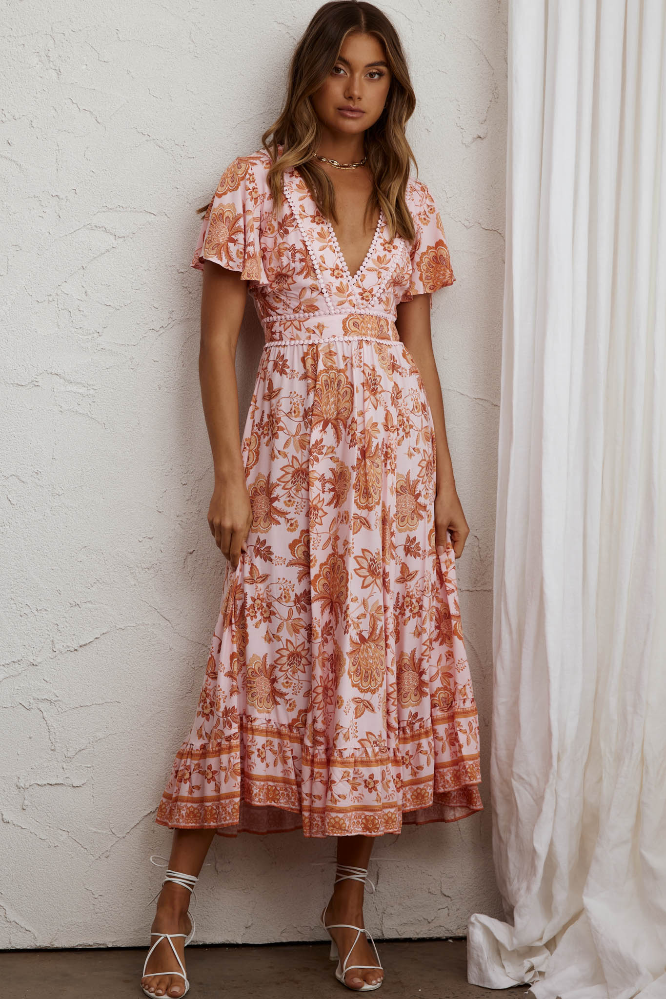 Kailee Short Sleeve Midi Dress Pink/Orange
