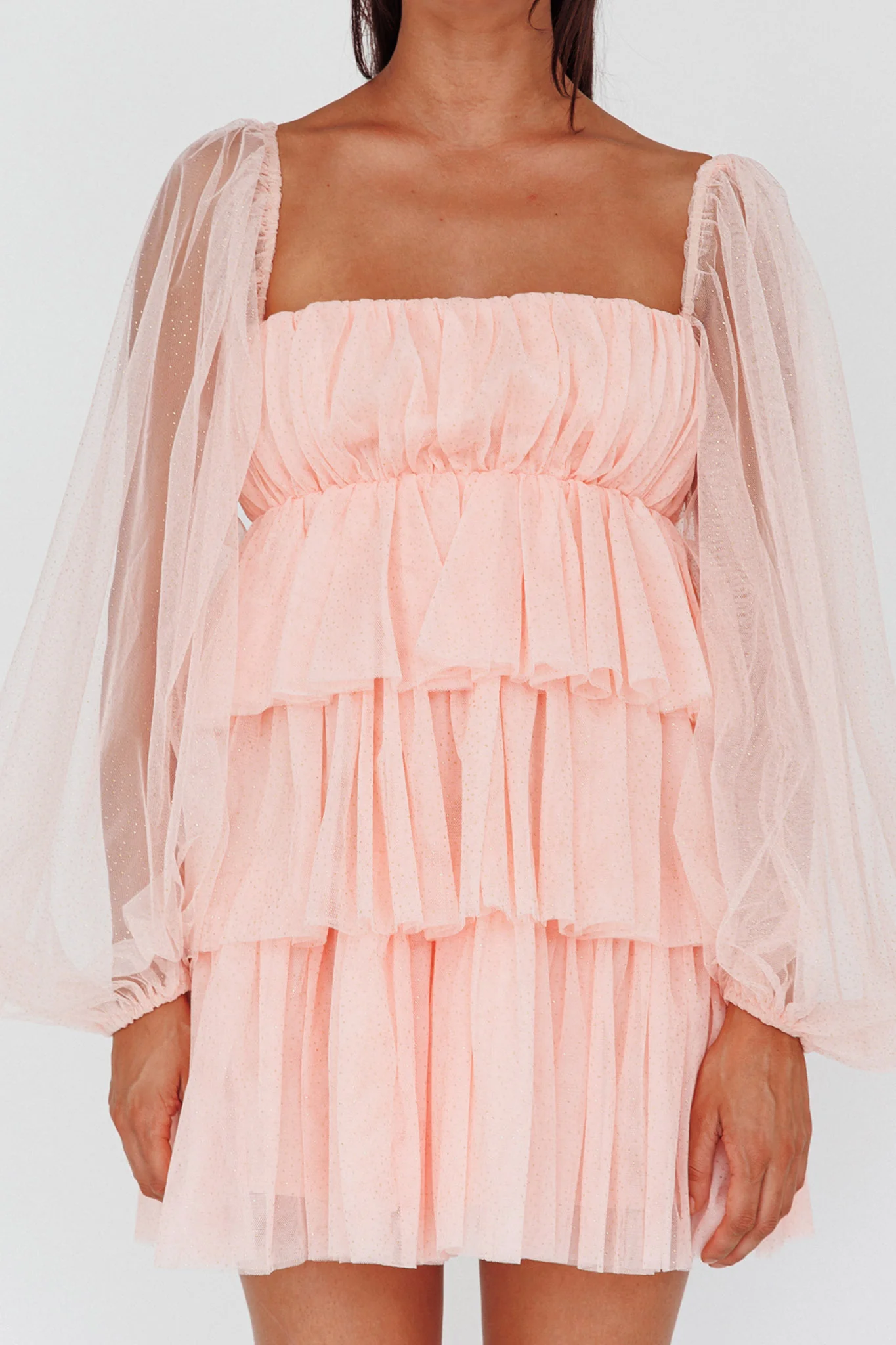 Spring Morning Long Sleeve Tiered Mini Dress Pink