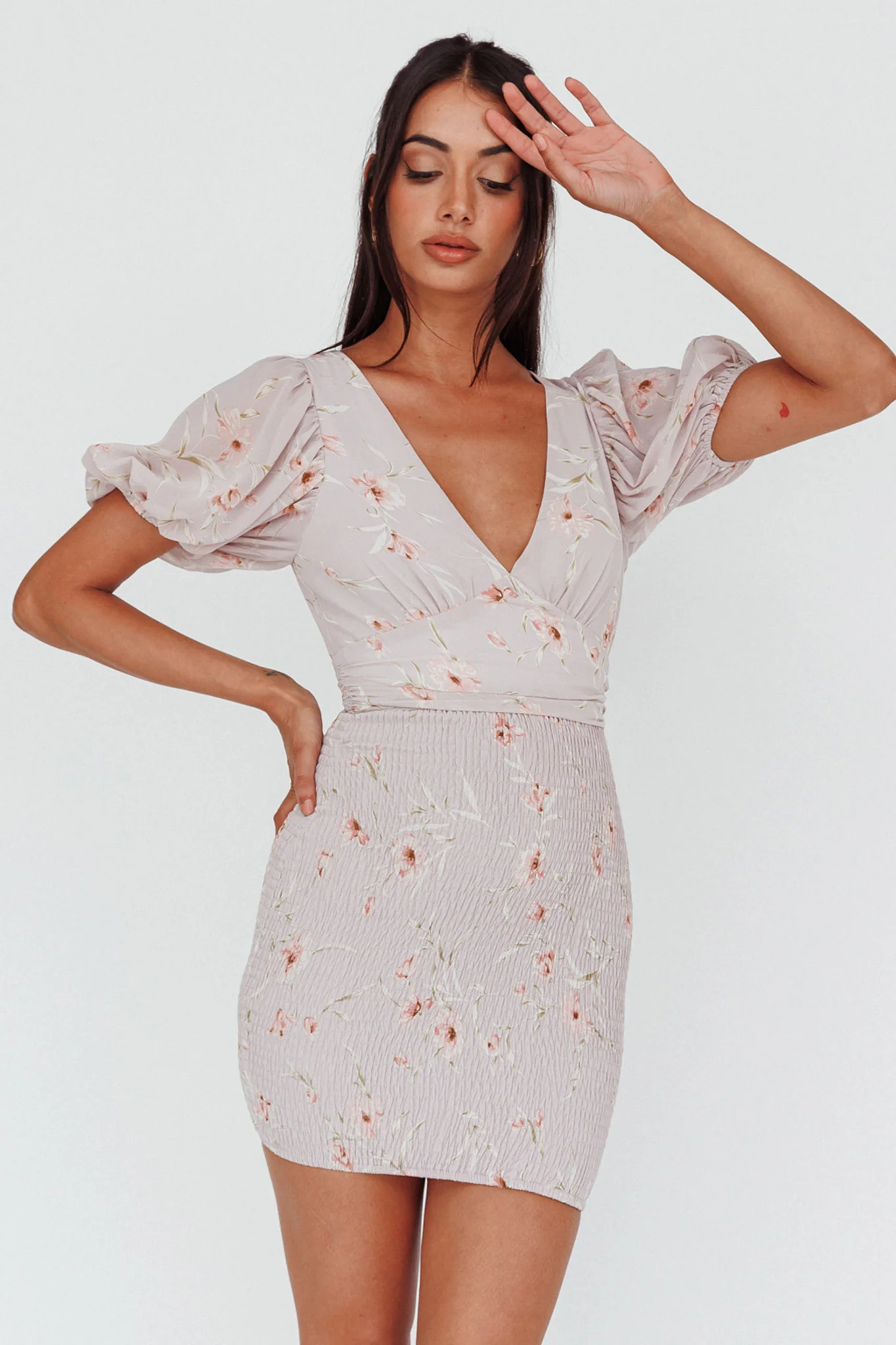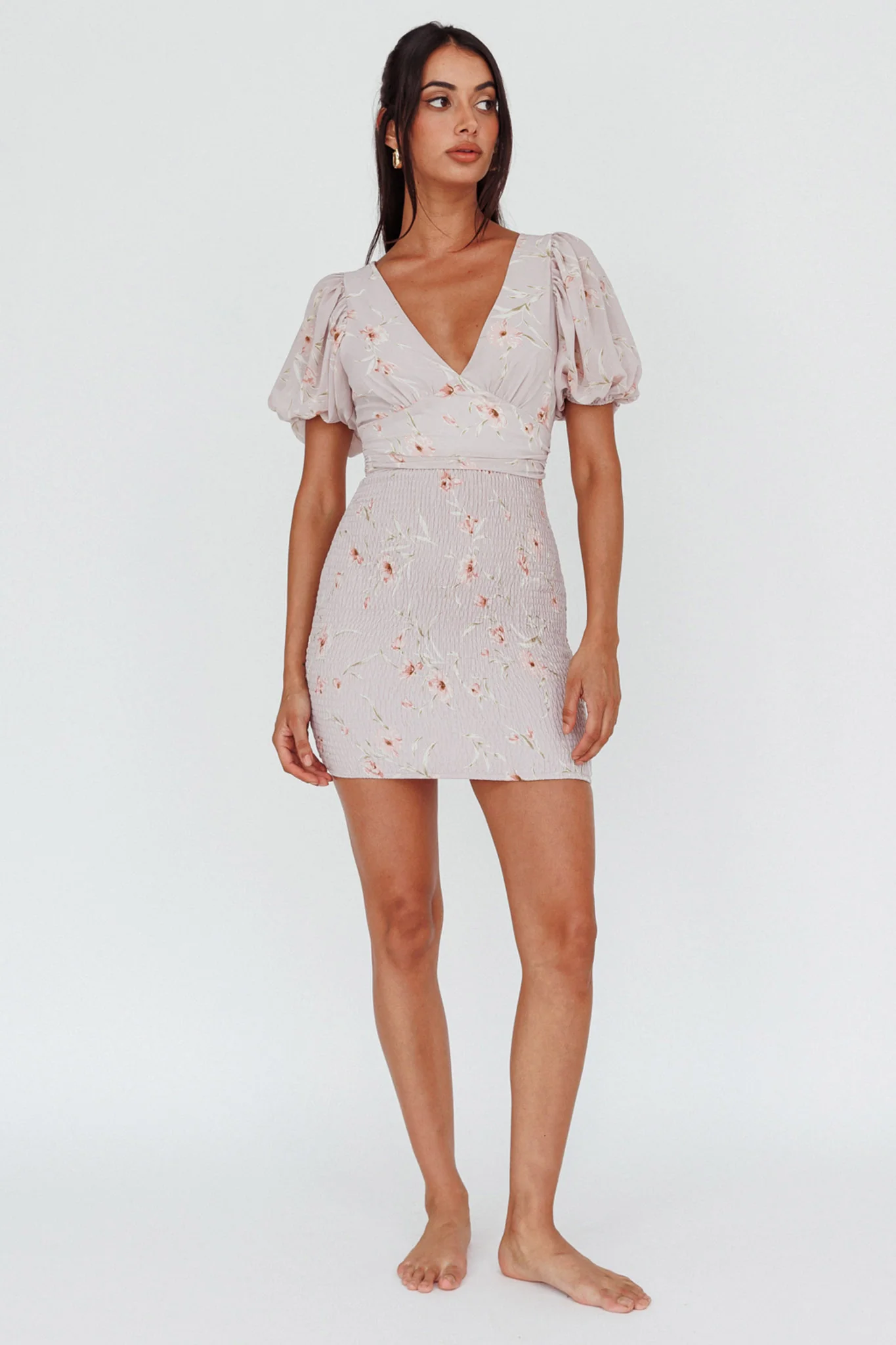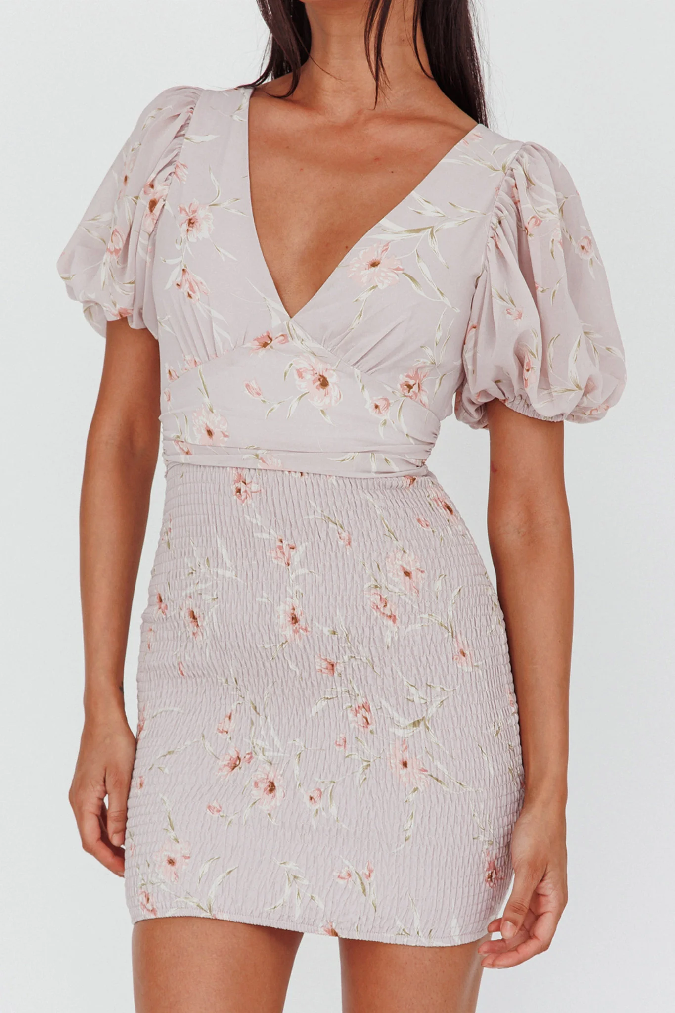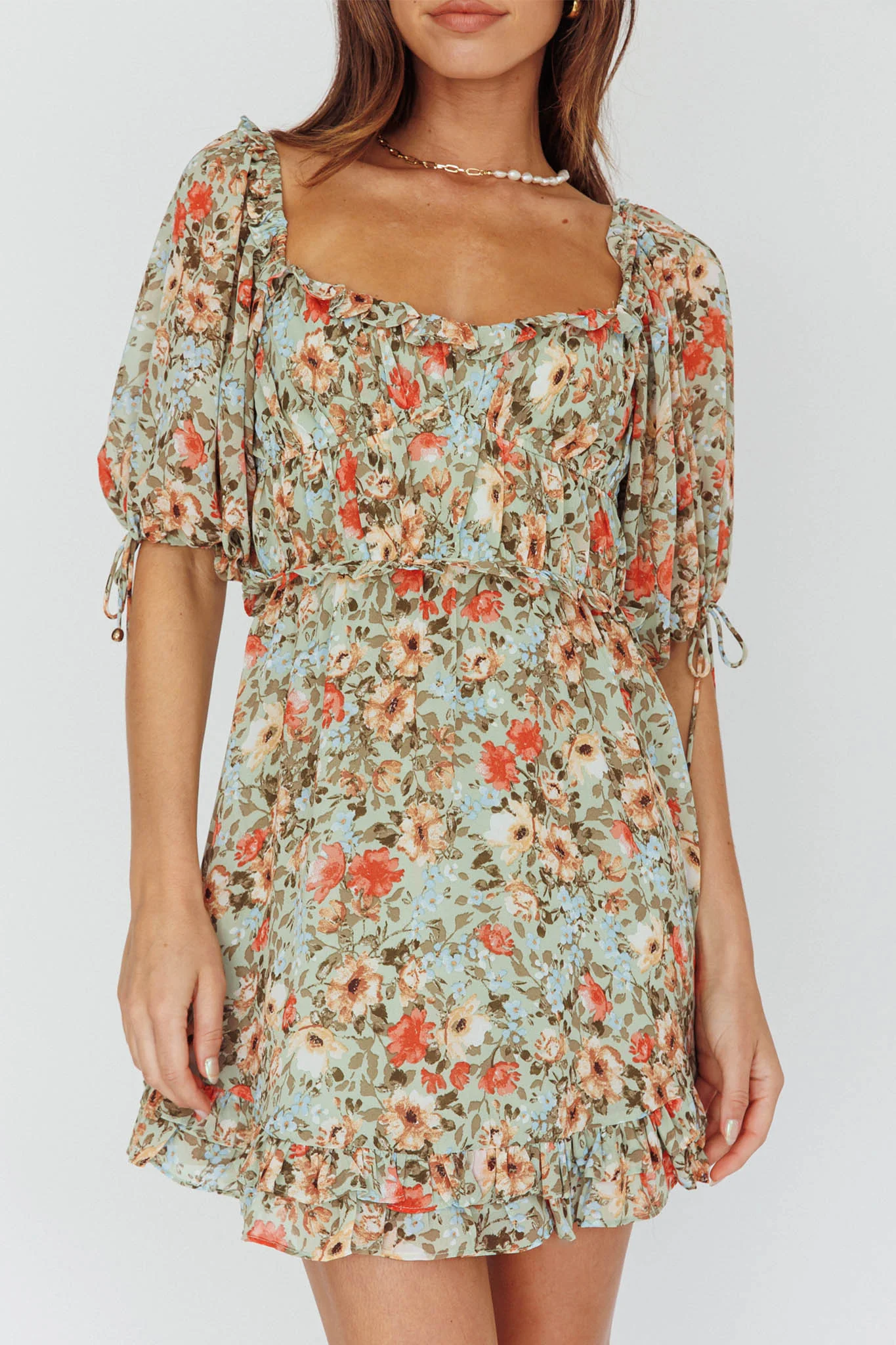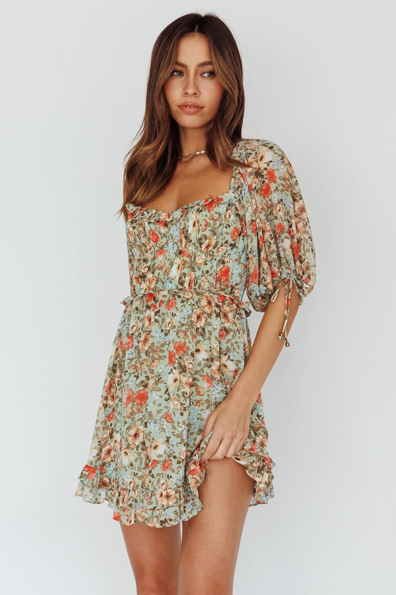 Madison Bow Tie Bust Puff Sleeve Dress Floral Mint