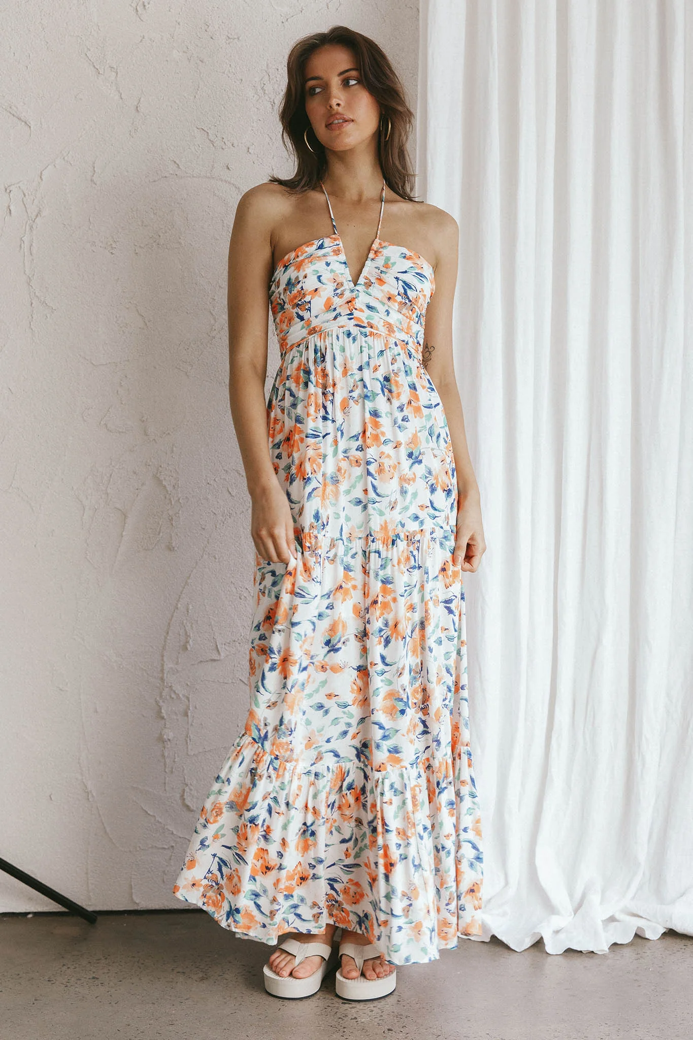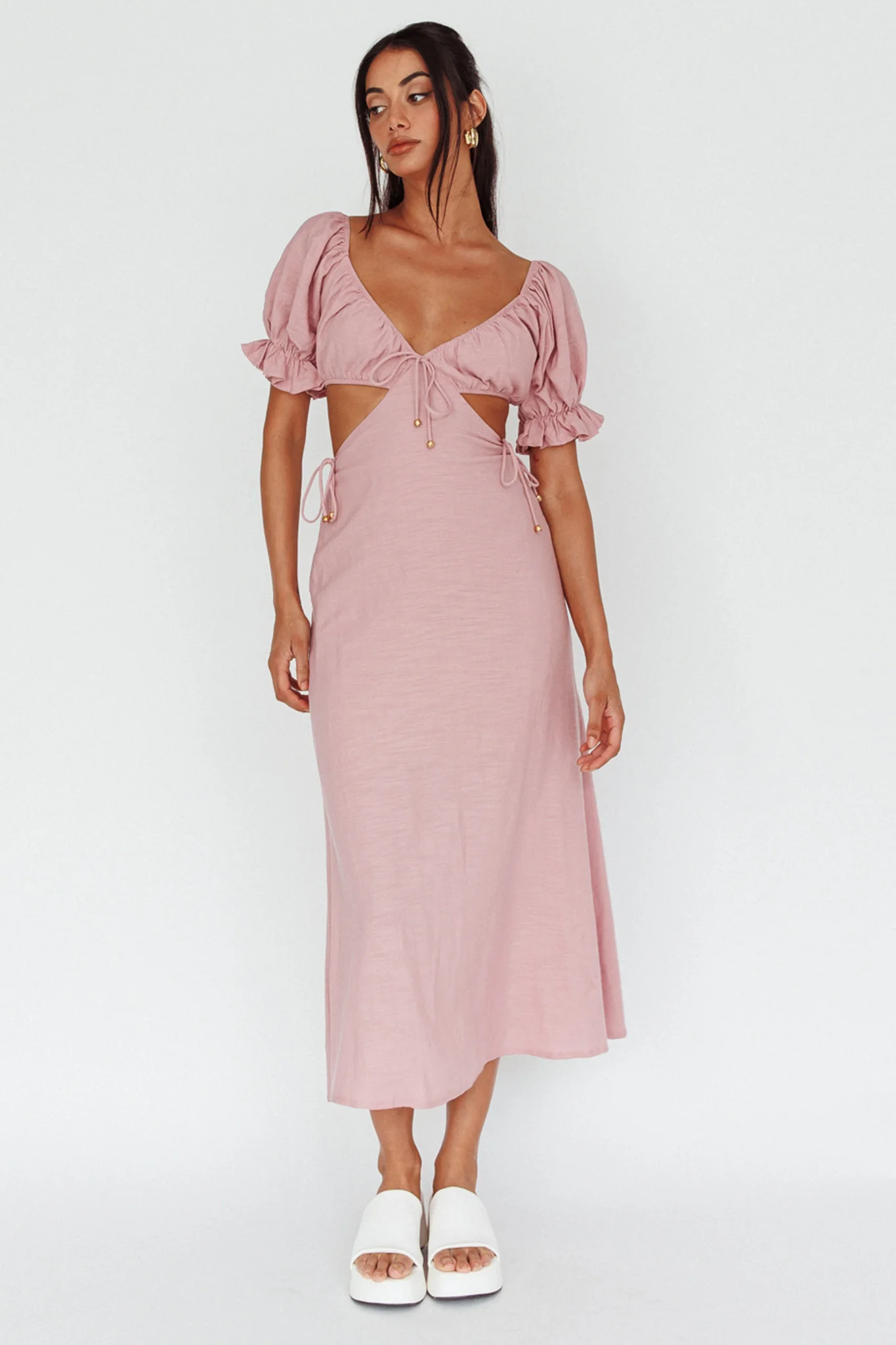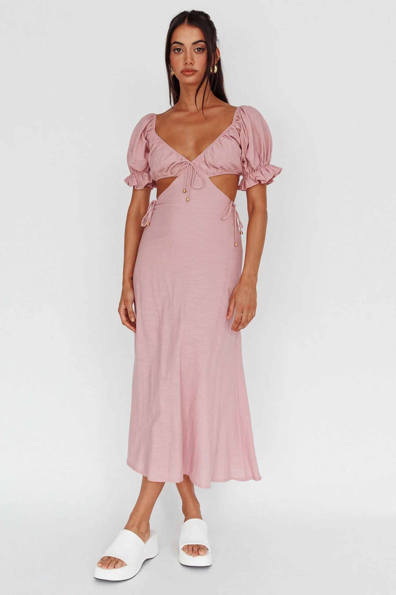 Cariba Cut-Out Waist Midi Dress Floral Blush