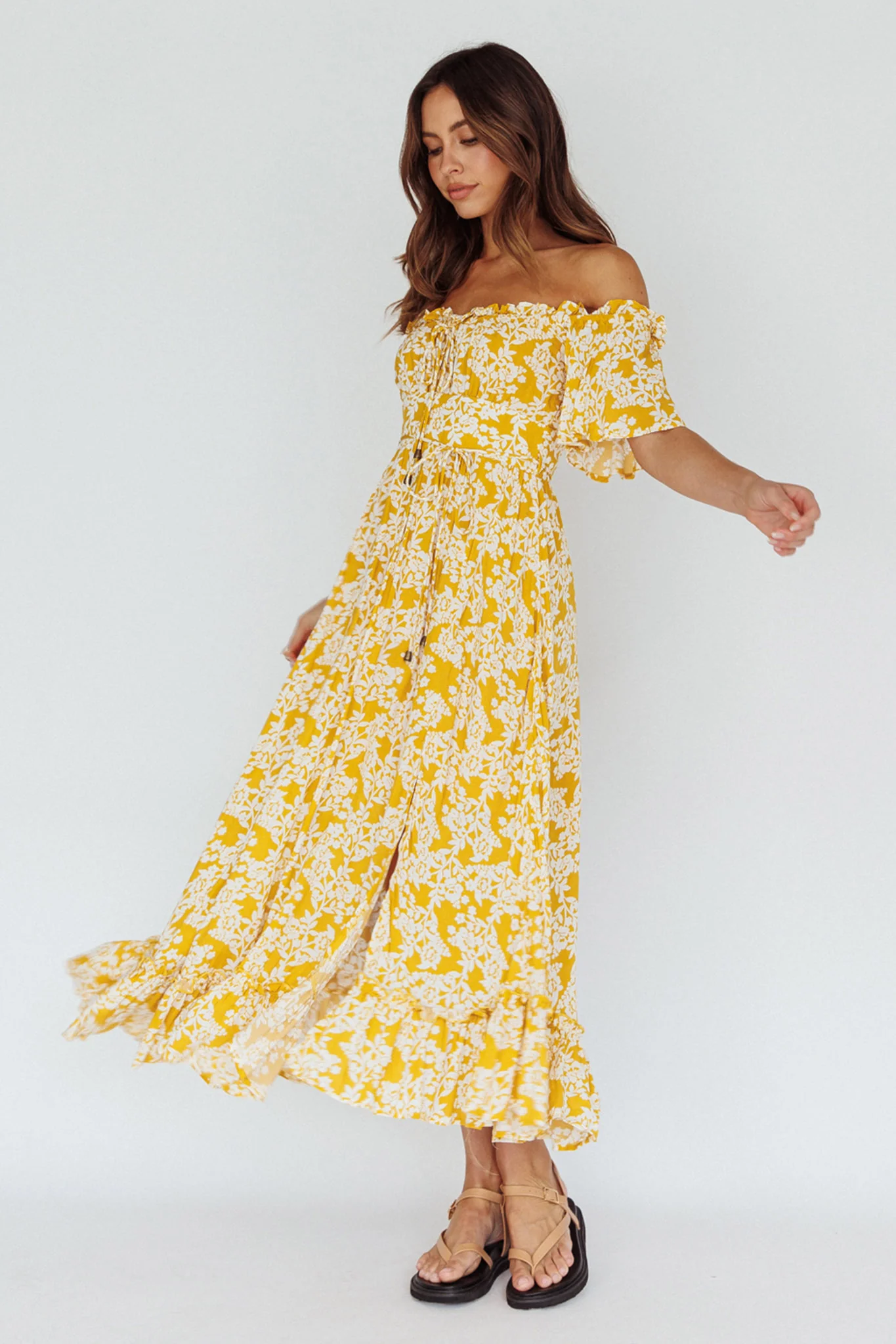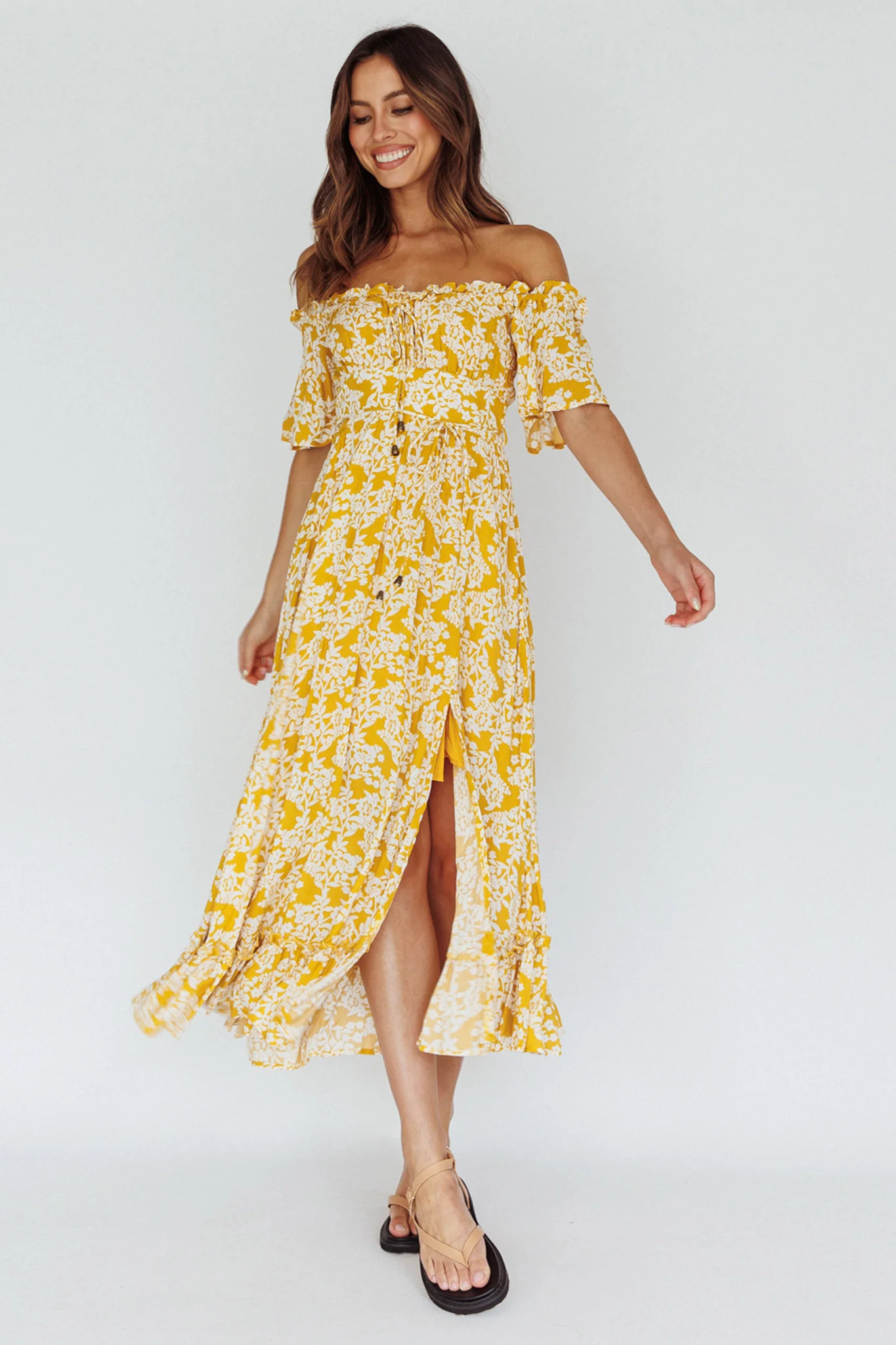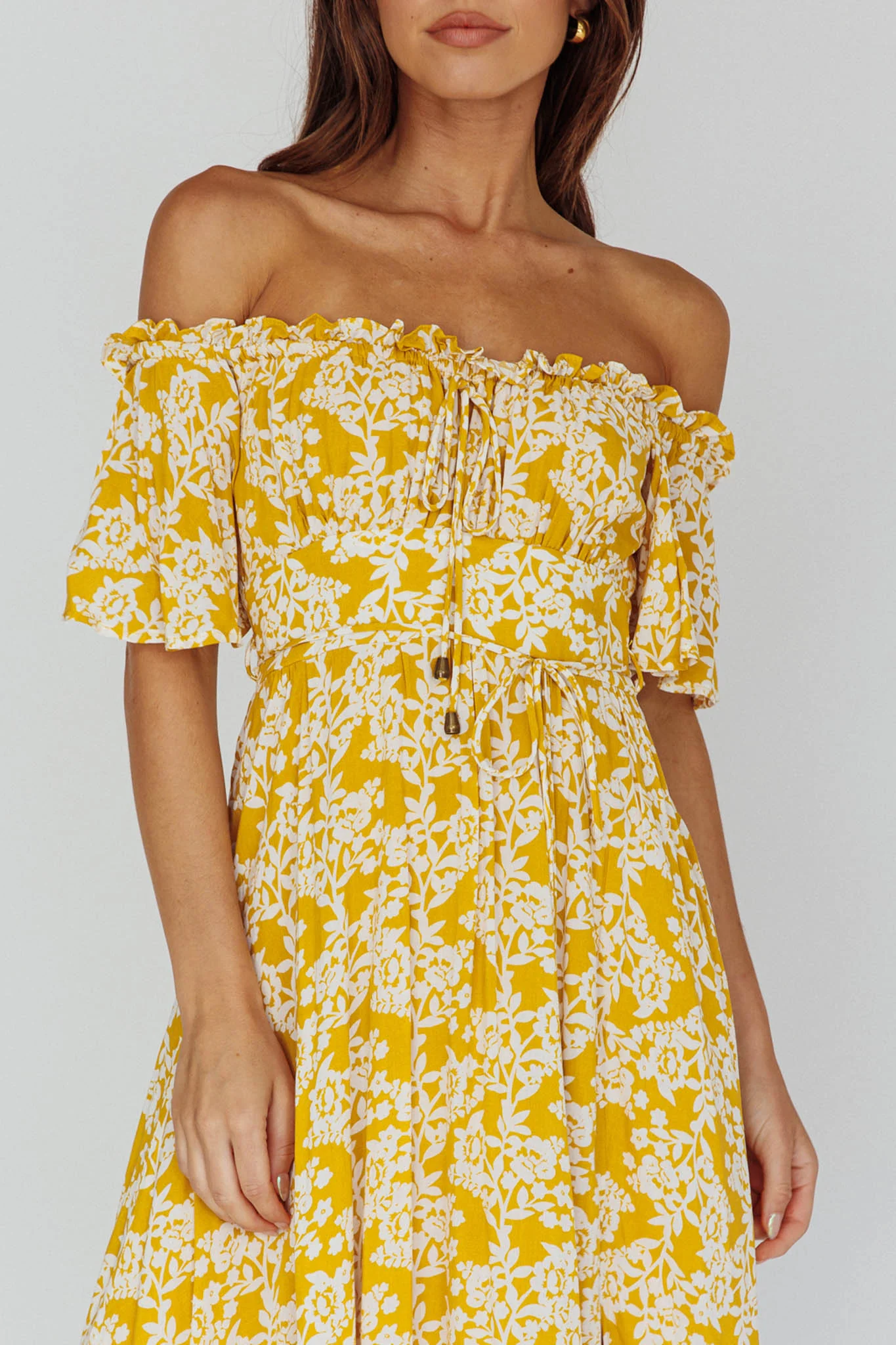 Voyager Off-Shoulder Bell Sleeve Midi Dress Floral Yellow