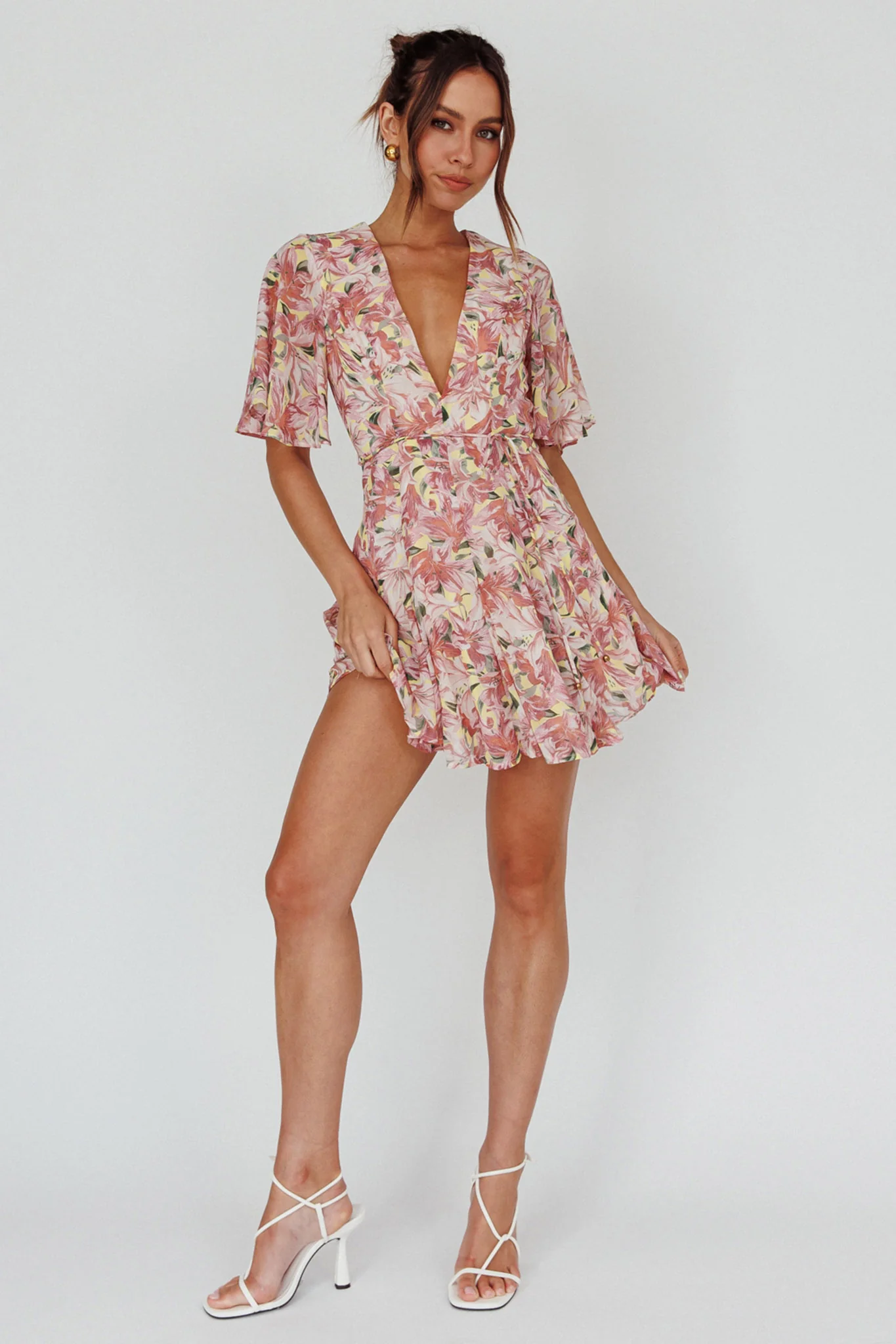 Make Memories Frill Strap Mini Dress Floral Yellow