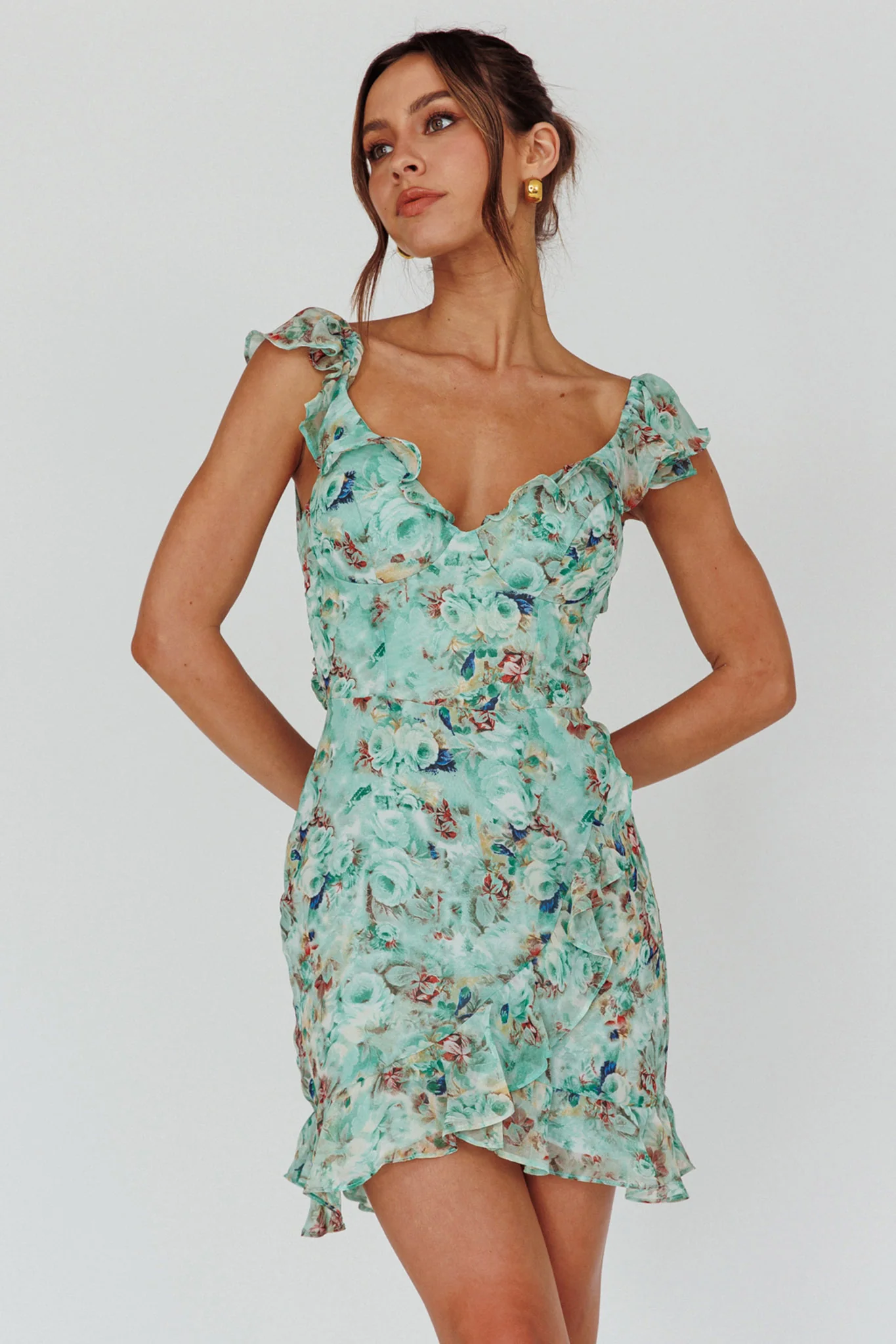 Jemilia Cut-Out Bust Flounce Mini Dress Floral Blue