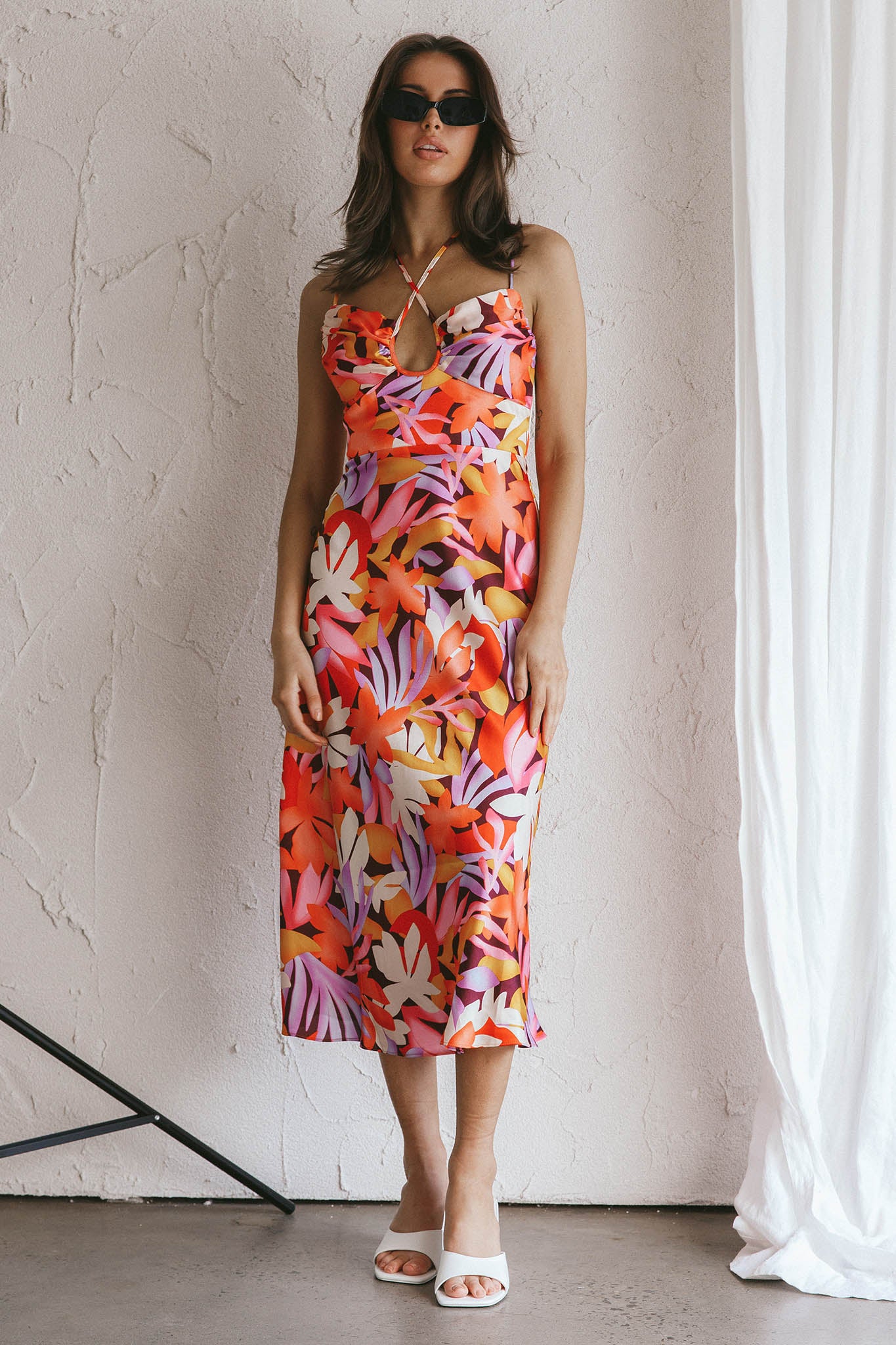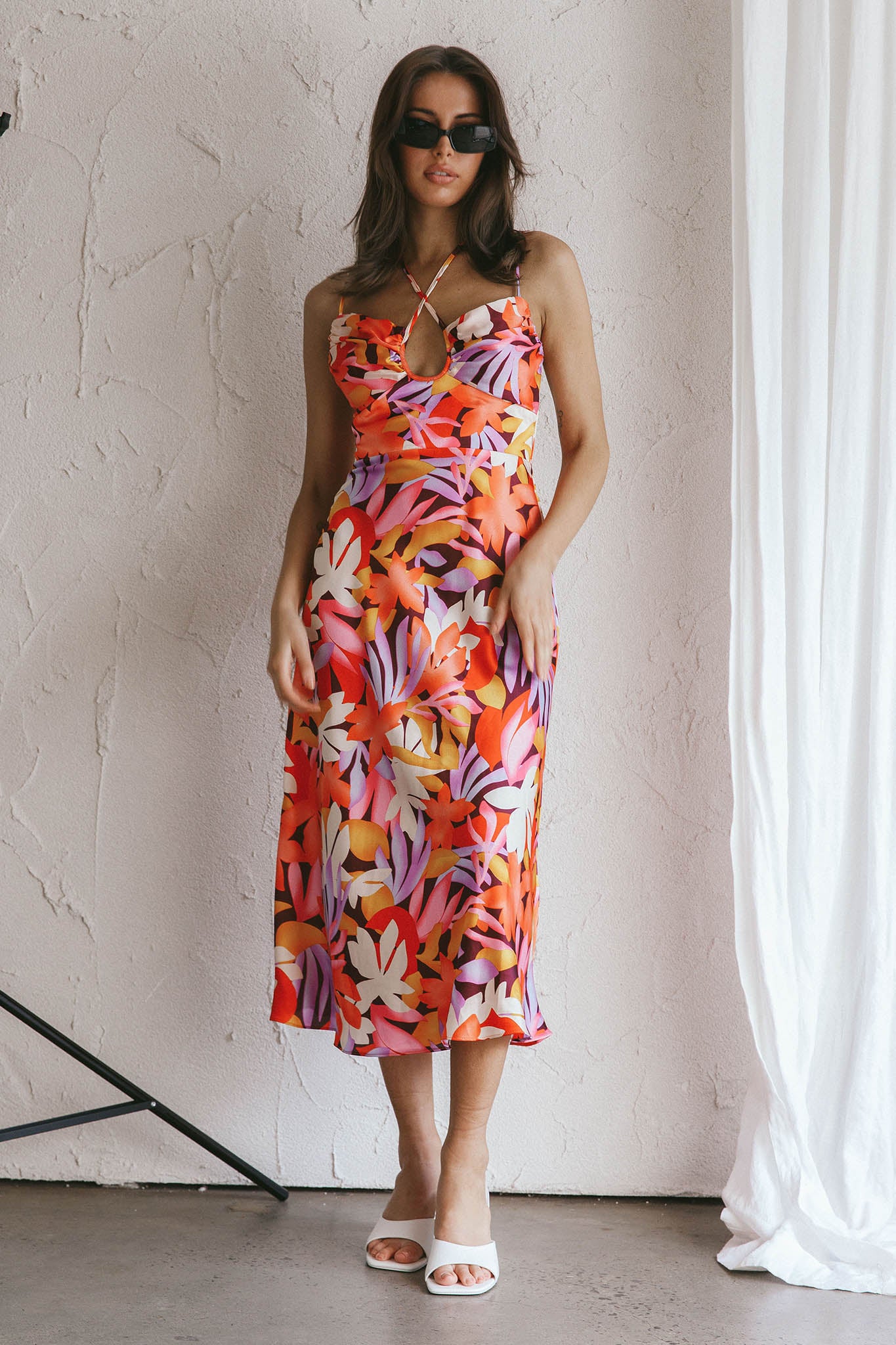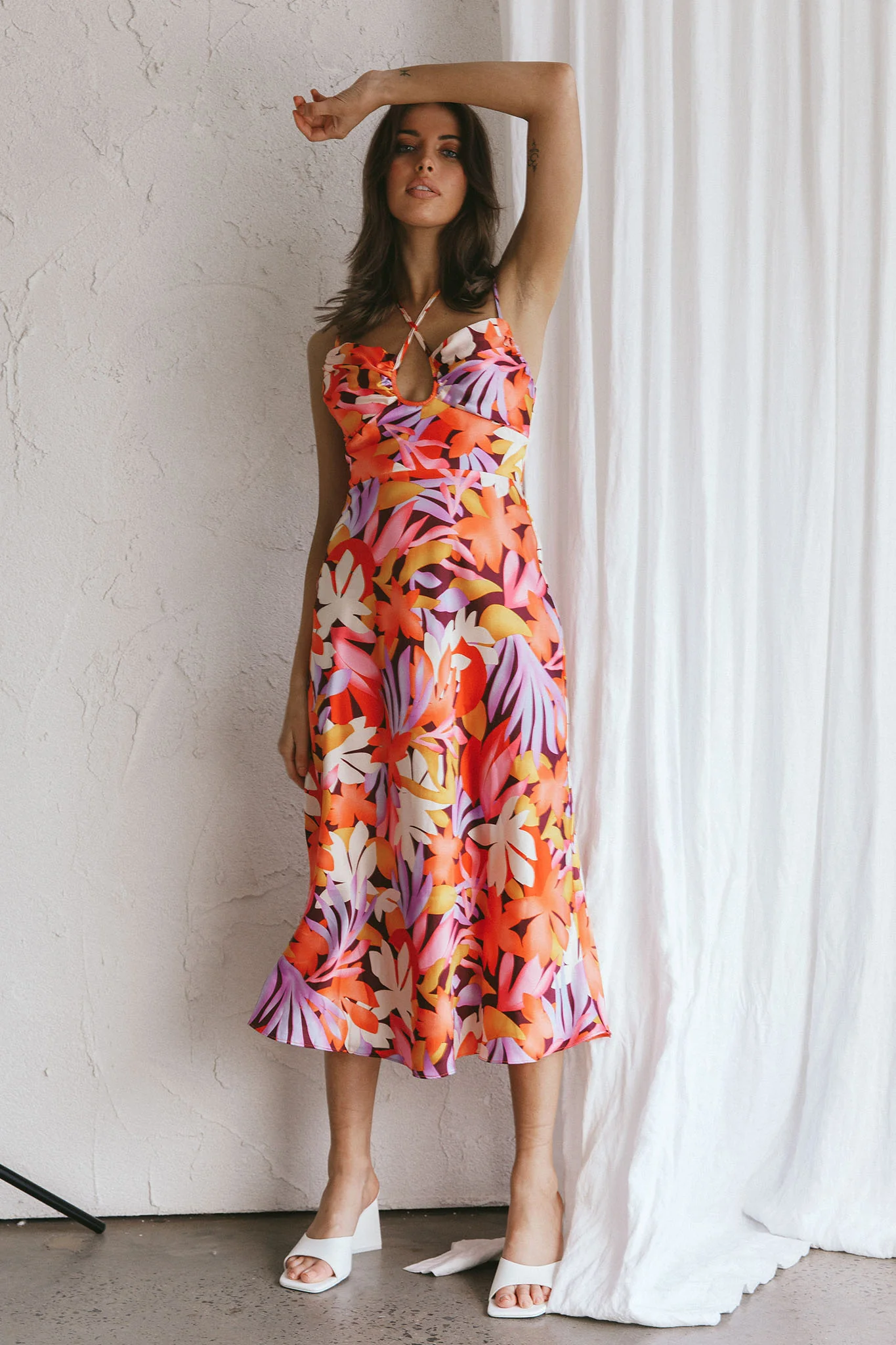 Amorcito Cut-Out Waist Midi Dress Floral Red
