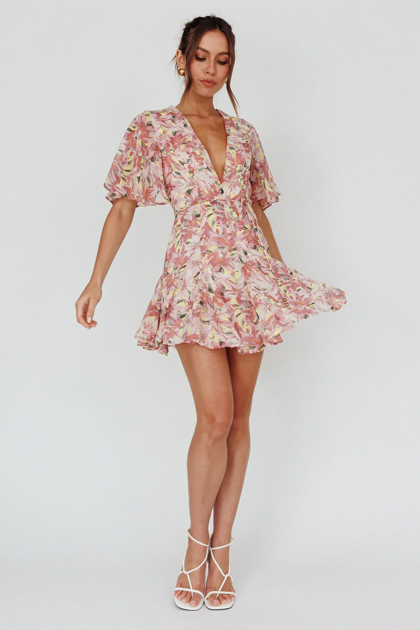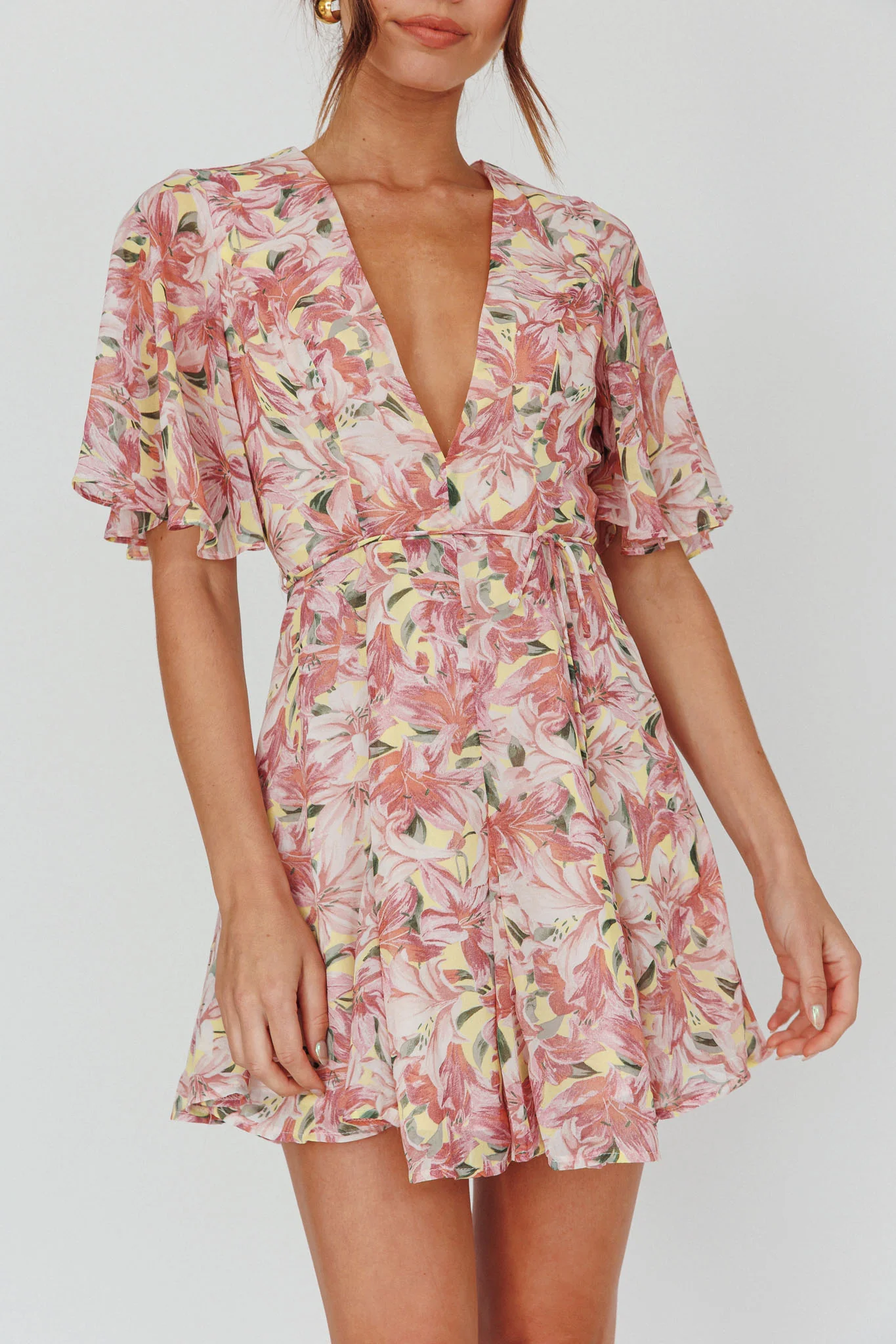 Estelle Angel Sleeve Dress Lily Print Yellow