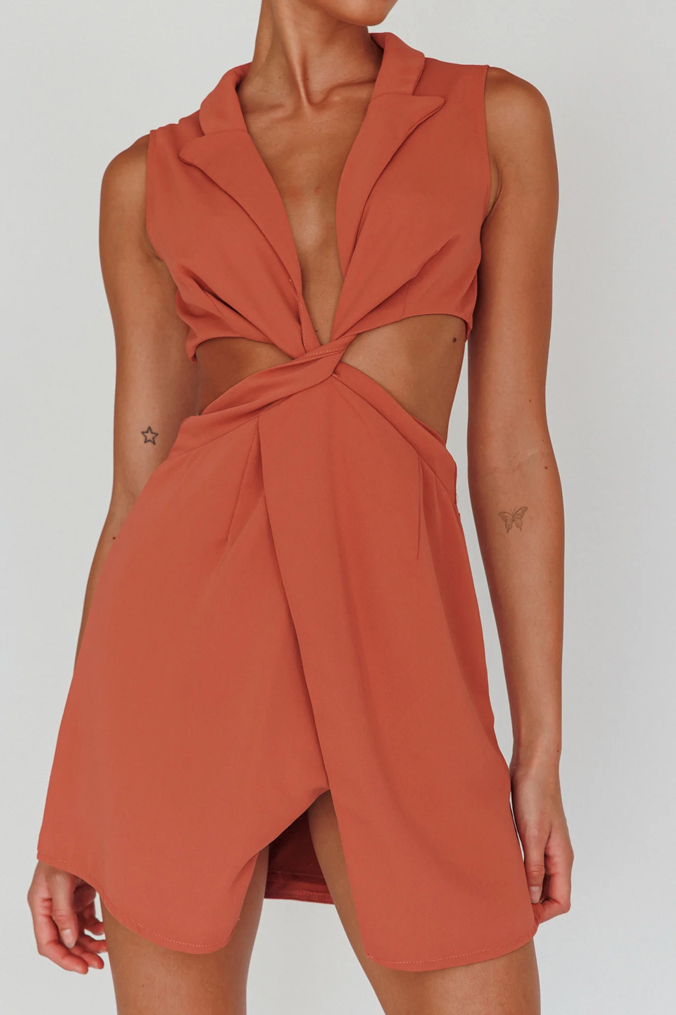 Feelin' Good Cut-Out Waist Lace Dress Rust