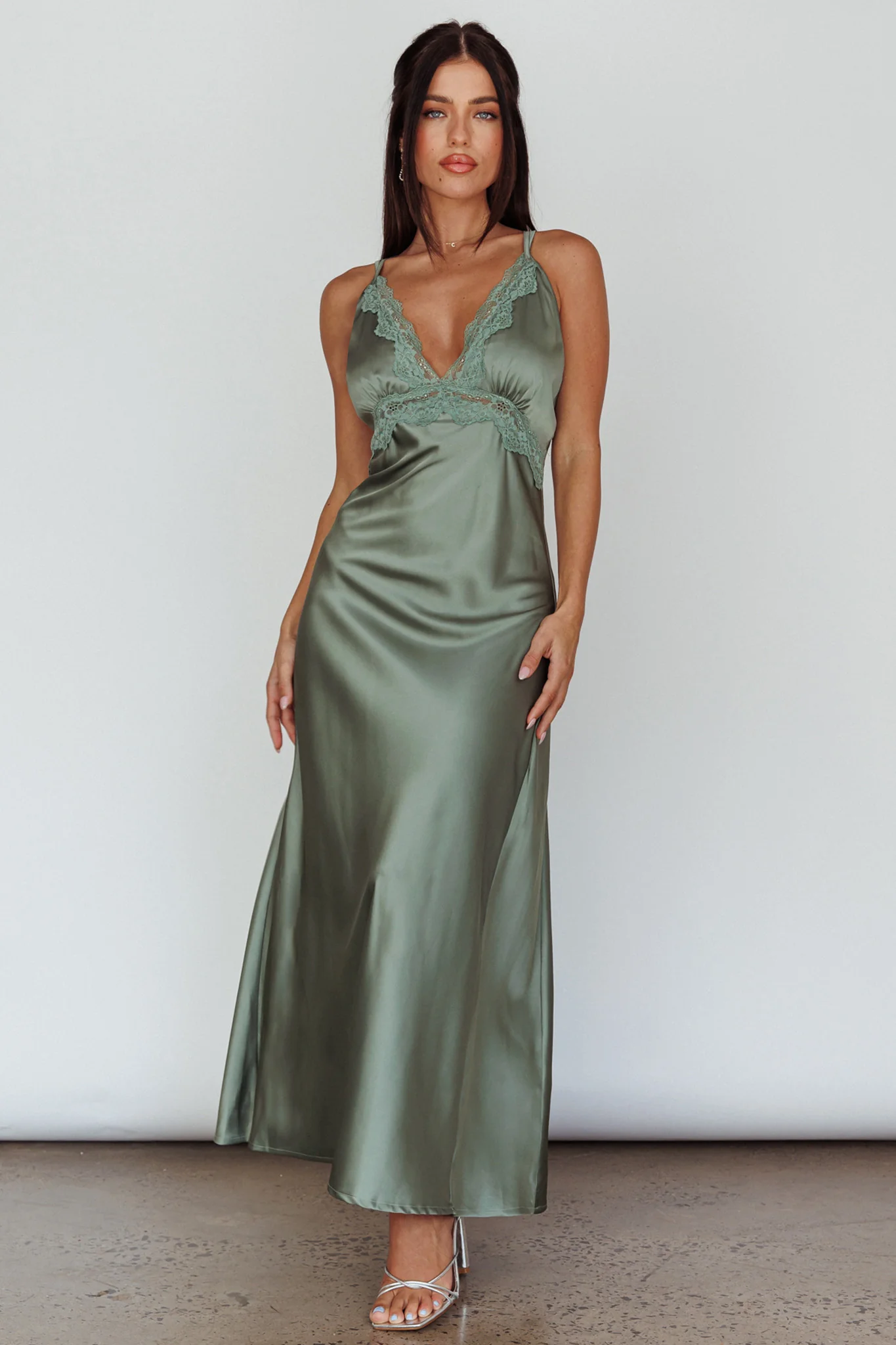 Moonlit Moment Ruffle Trim Piping Detail Lace-Up Back Dress Sage