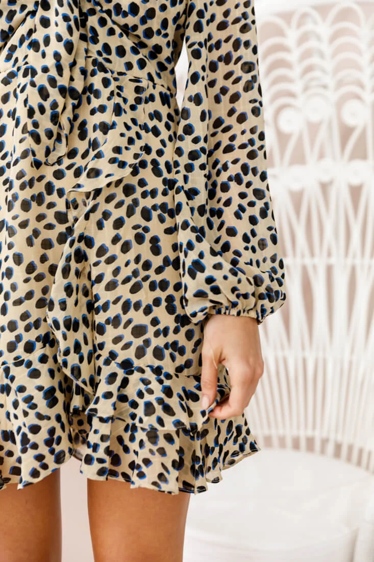 Interstellar Ruffle Hem Long Sleeve Dress Champagne
