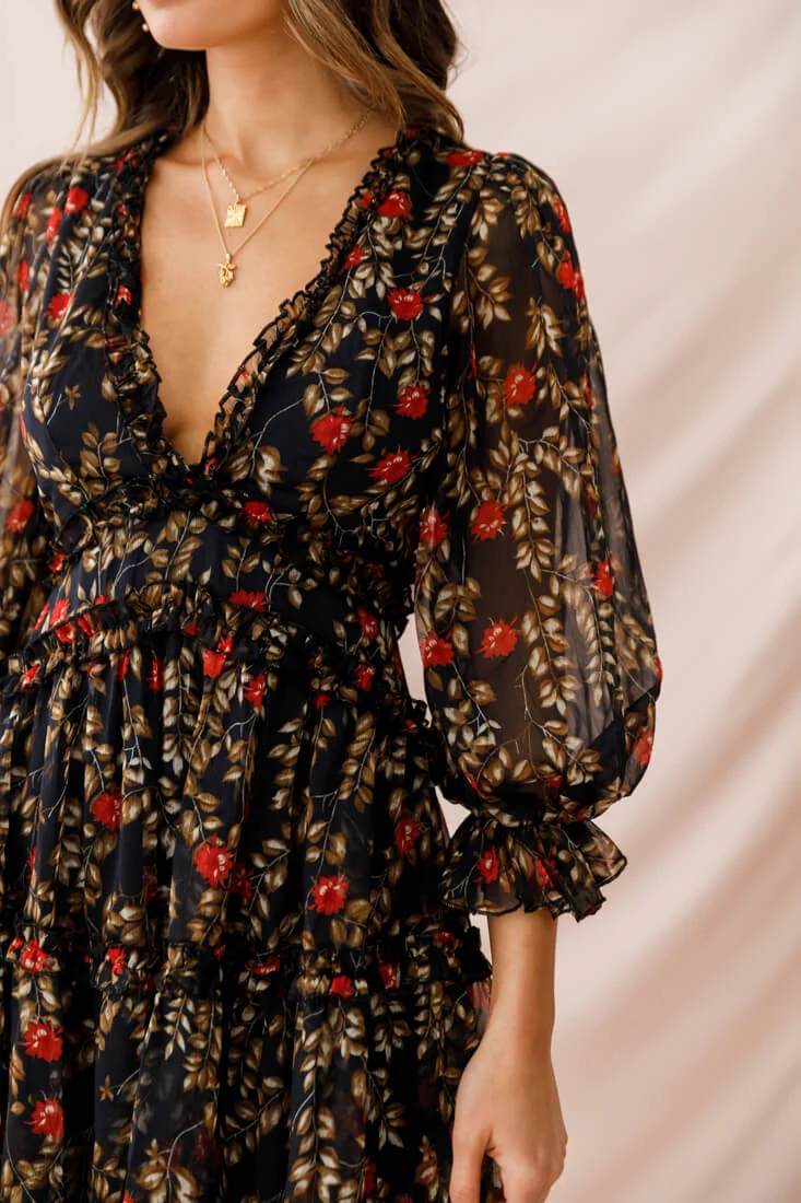 Wisteria Lane Long Sleeve Tea Dress Navy