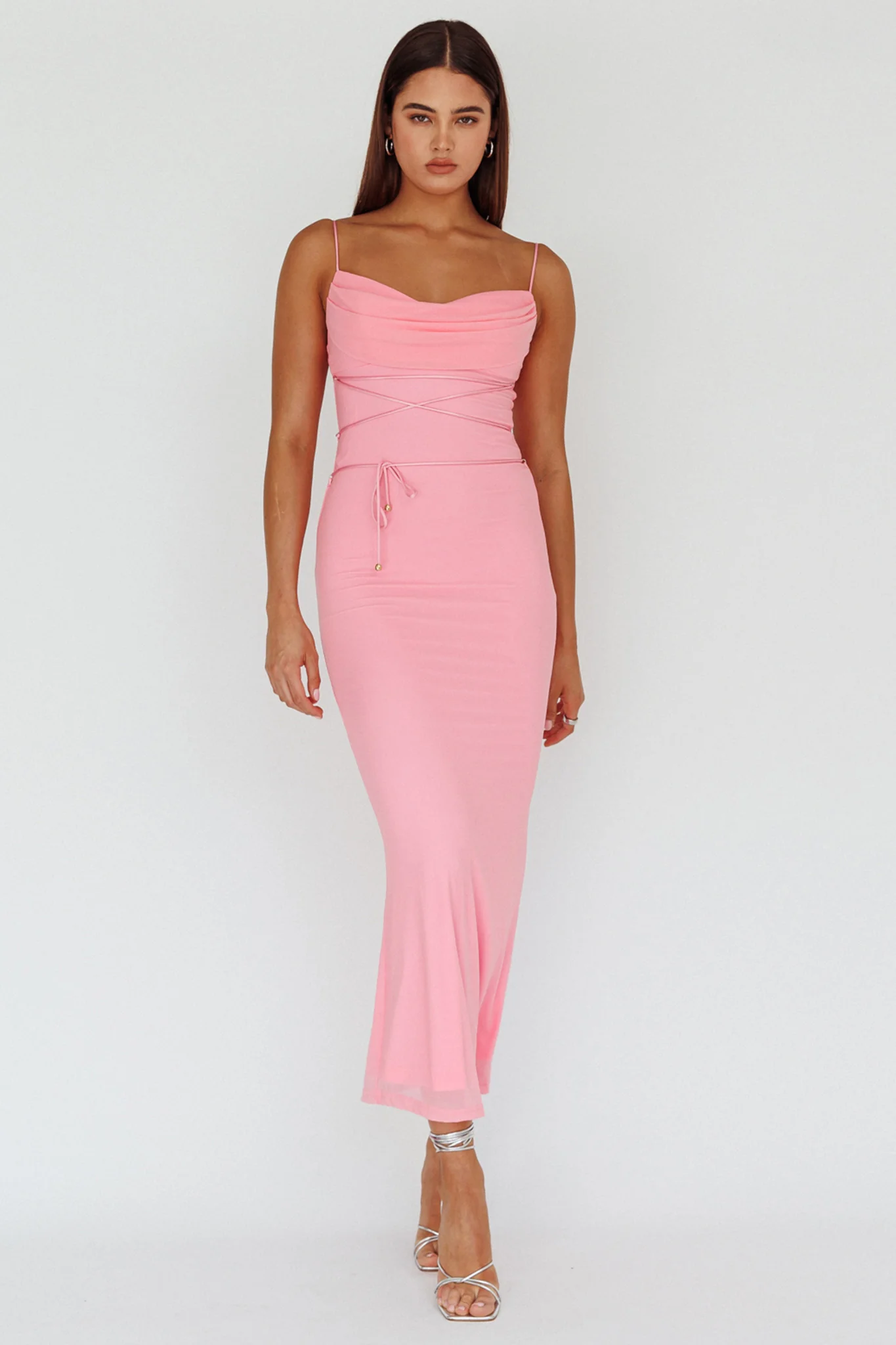 Well Versed Pleated Bust Front Split Dress Flora Pink