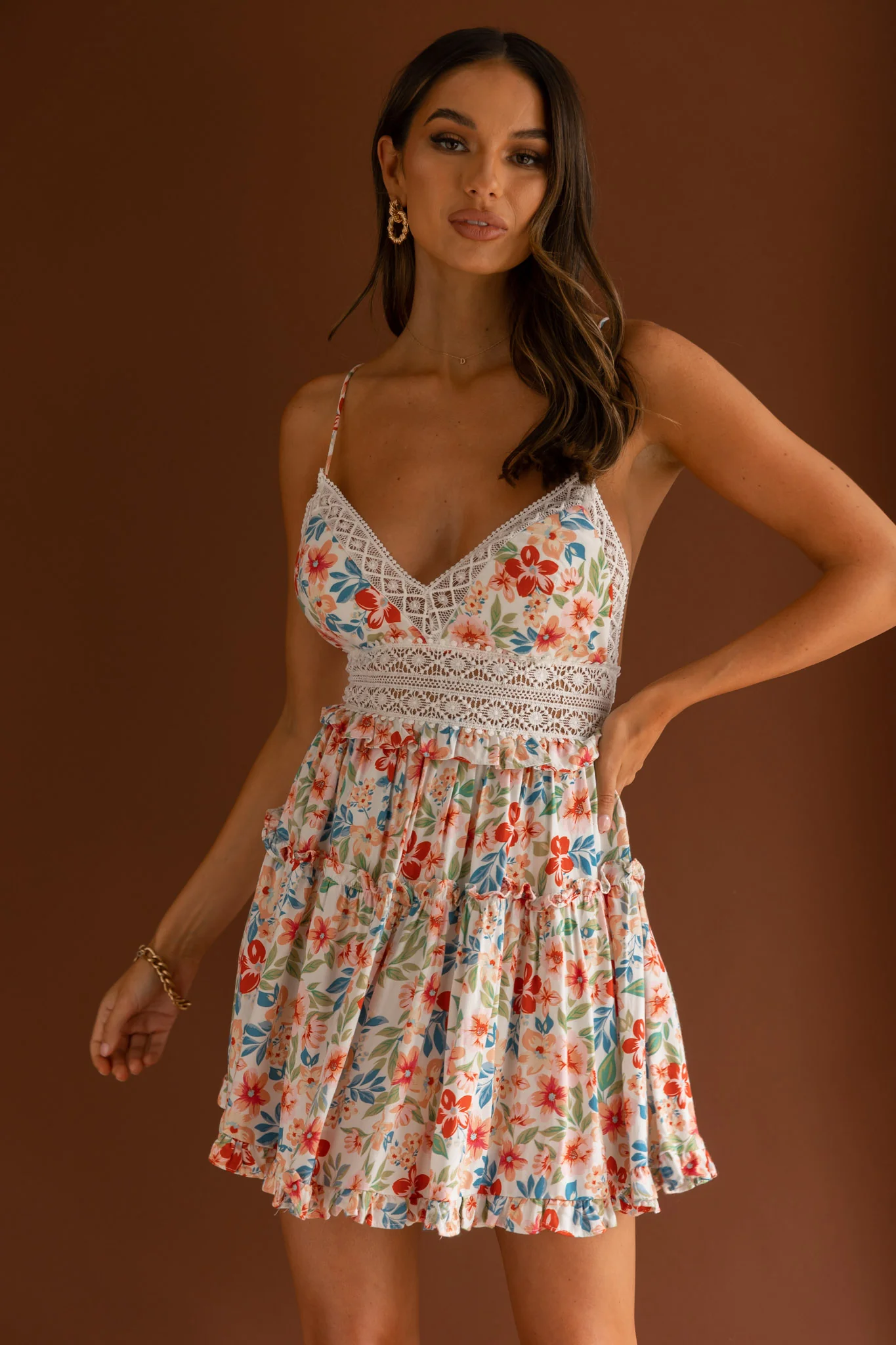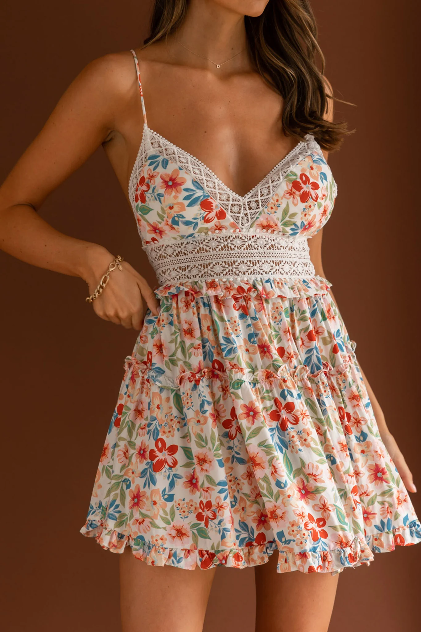 Graciele Laced Back Cut-Out Mini Dress Floral Orange