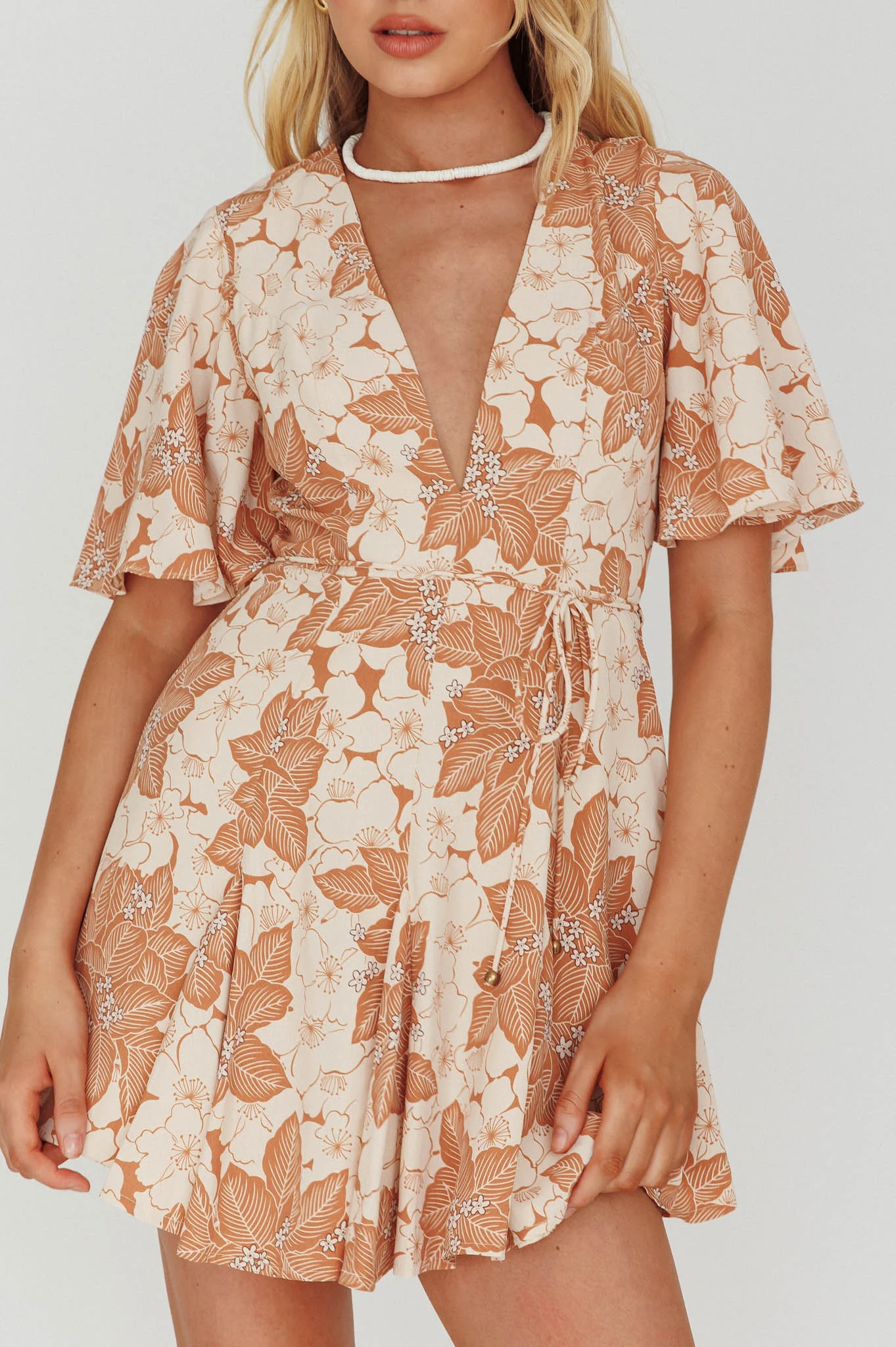 Tresa Cami Strap Twist Front Mini Dress Flowers Mocha