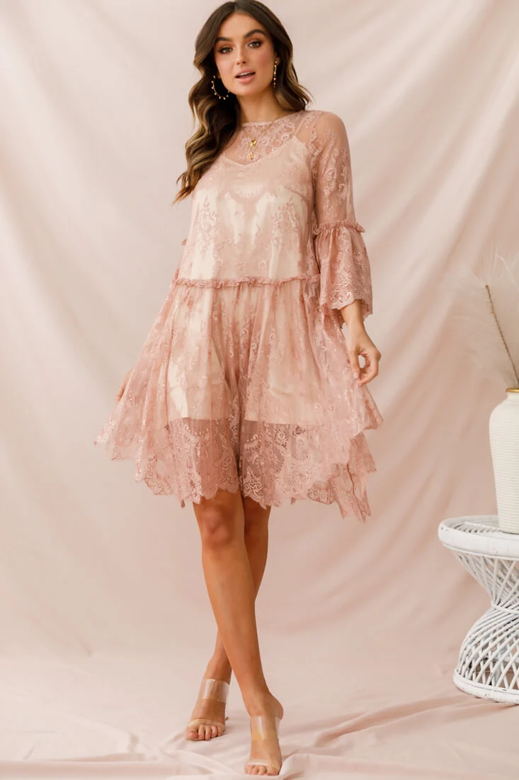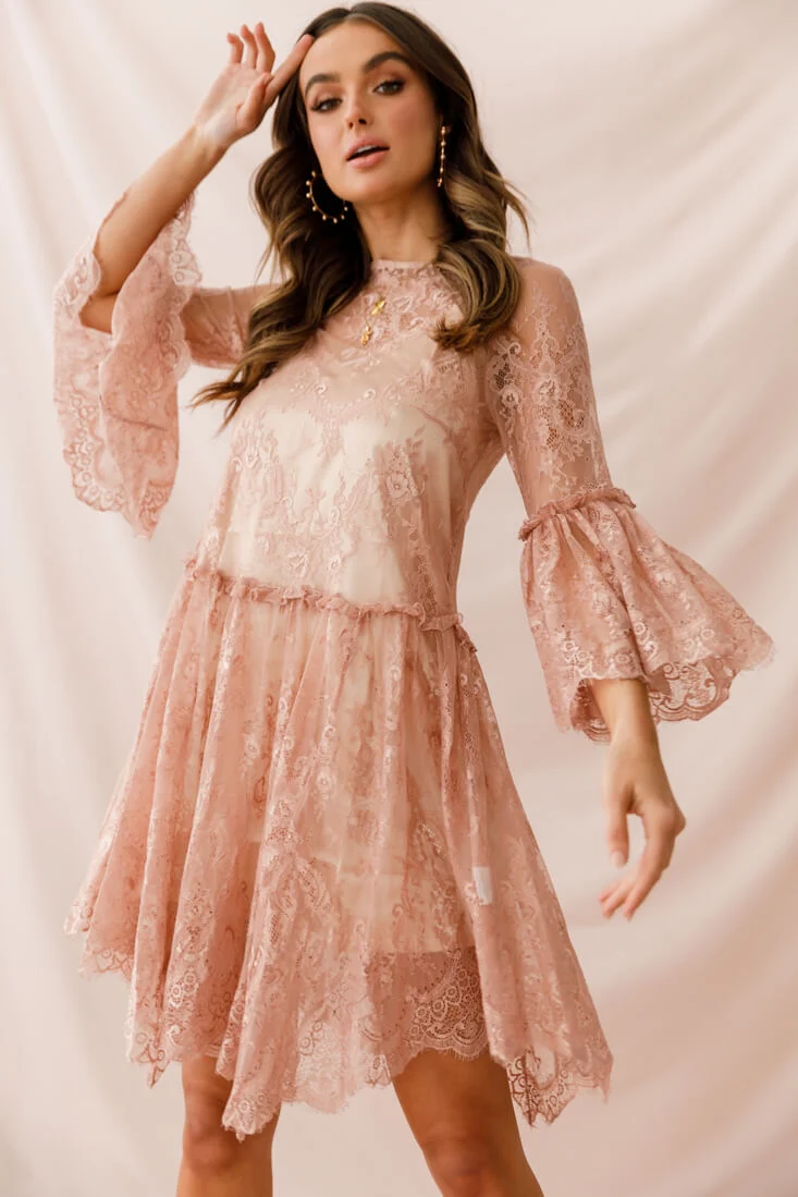 Cutie Pie Long Sleeve Babydoll Dress Mauve