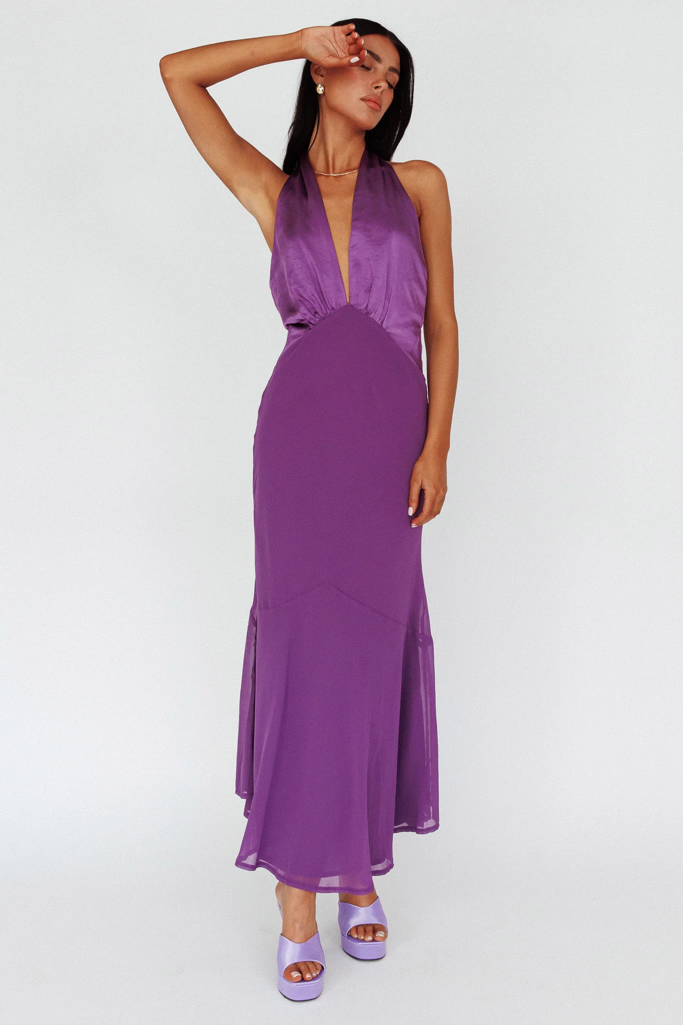 Etienne Off-Shoulder Halter Midi Dress Lilac