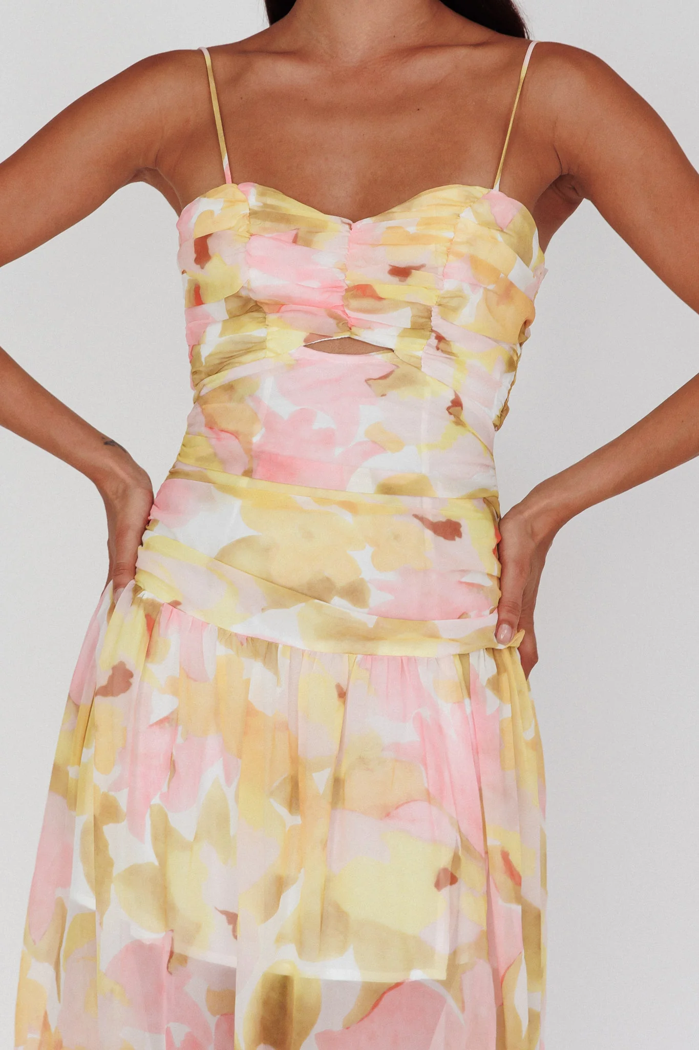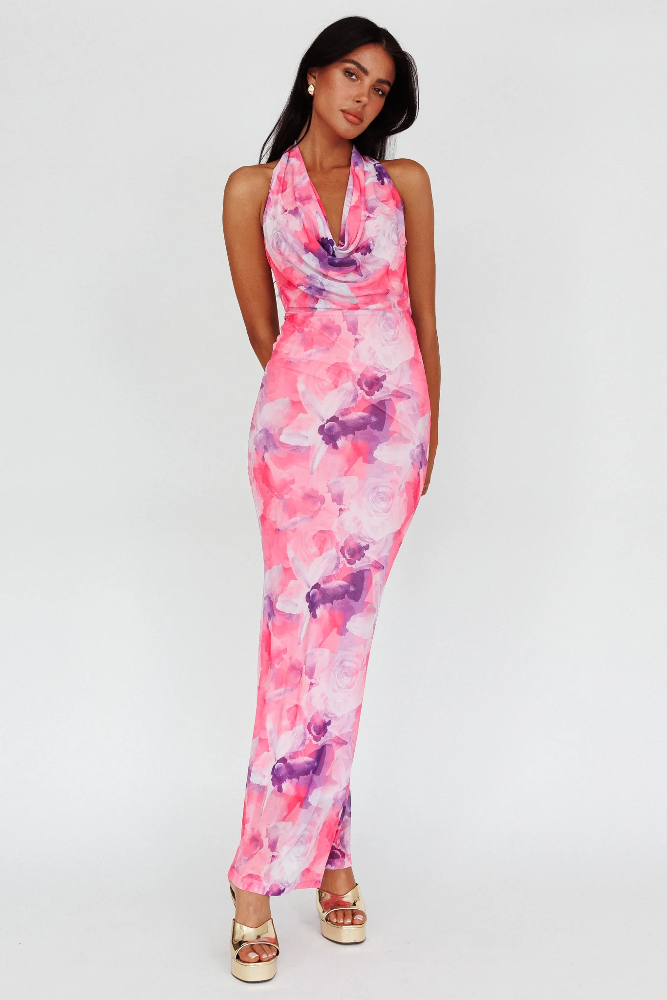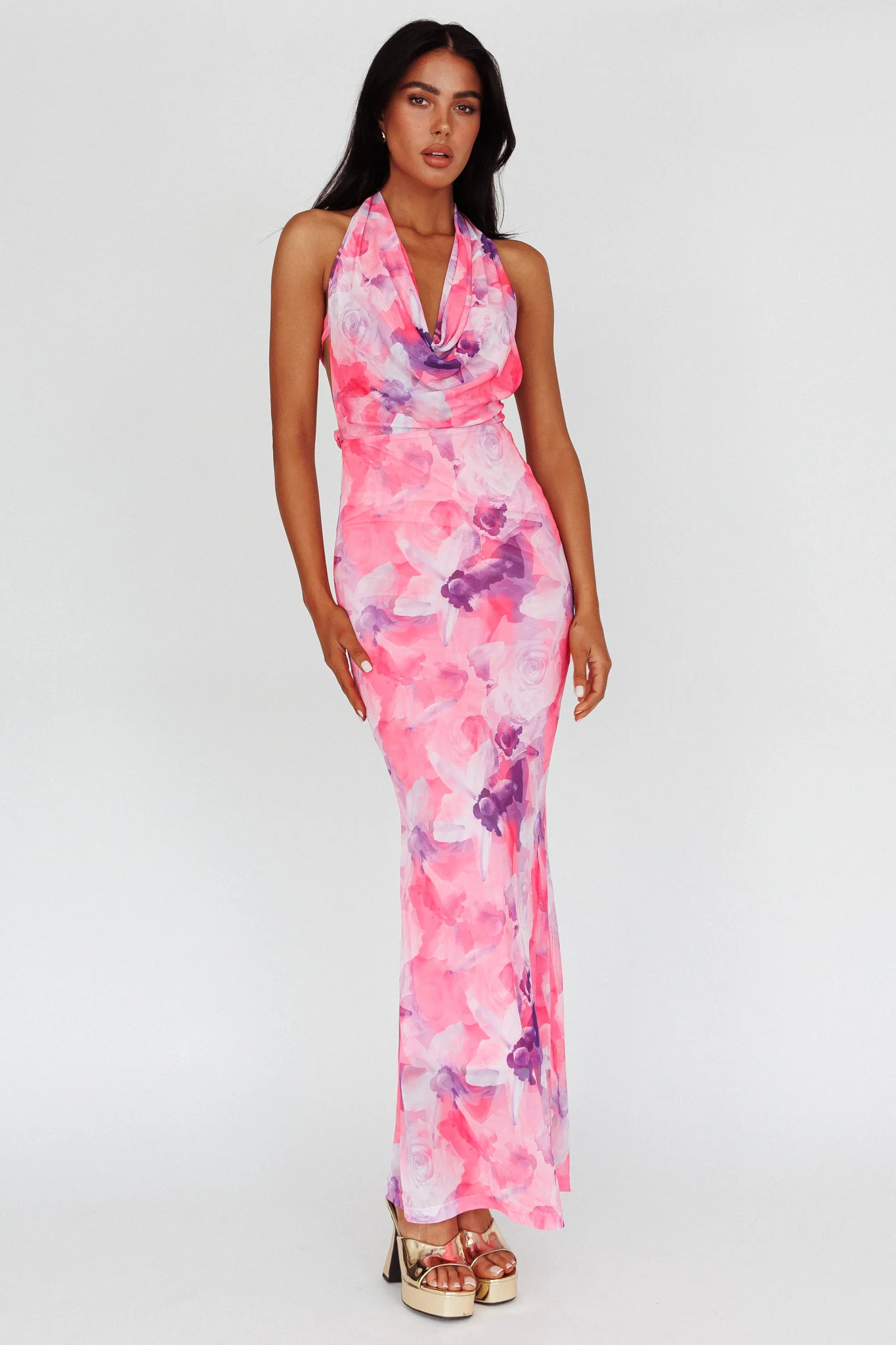 Stars Are Blind Tied Back Midi Dress Floral Pink