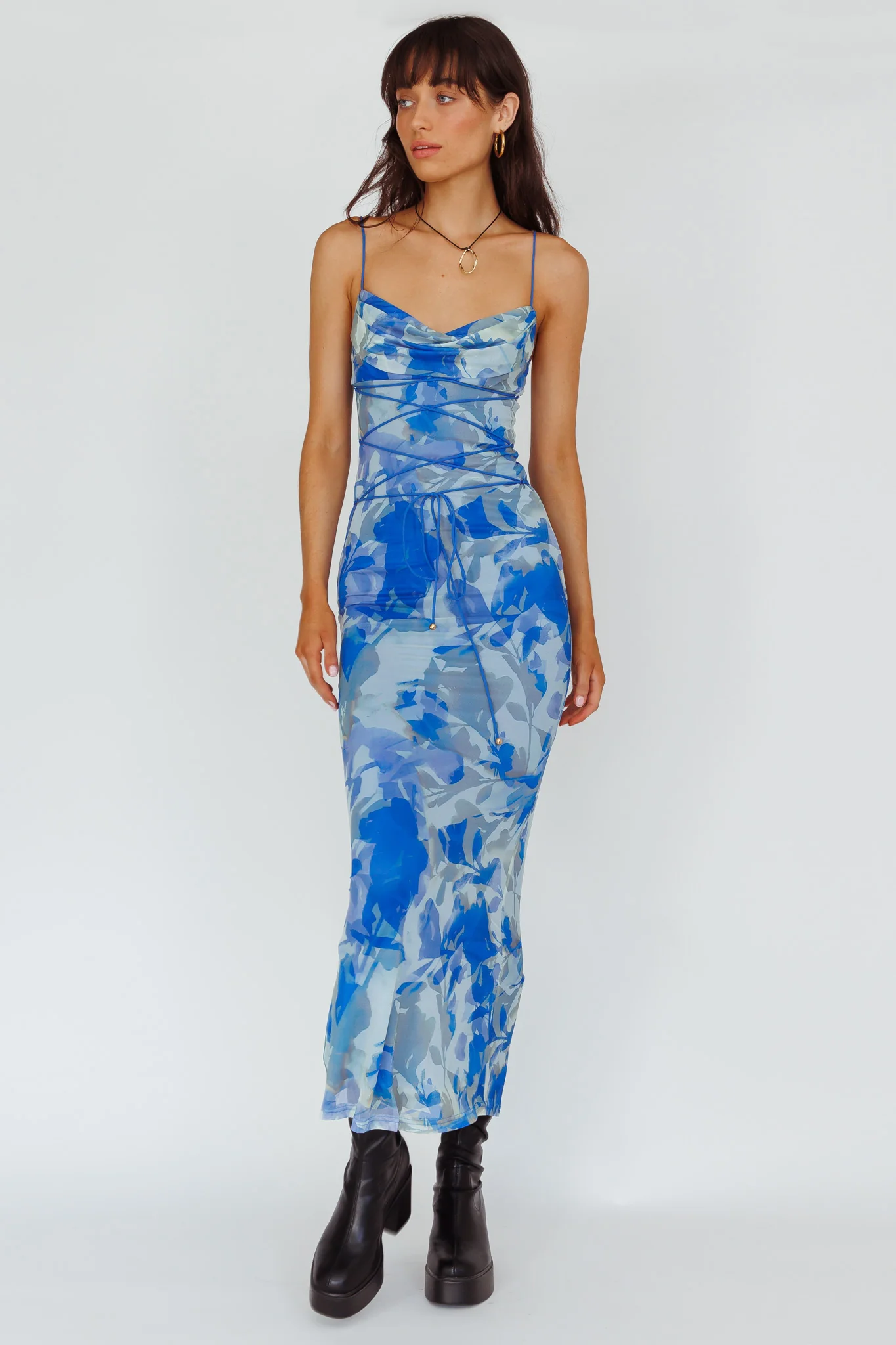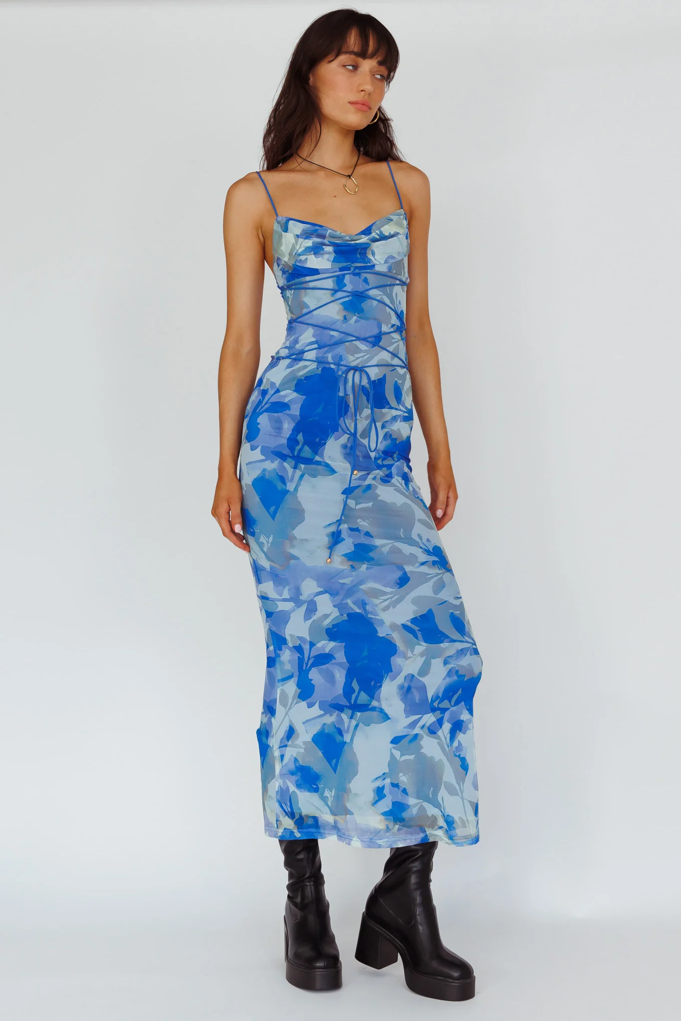 Teava Laced Waist Maxi Dress Print Floral Blue