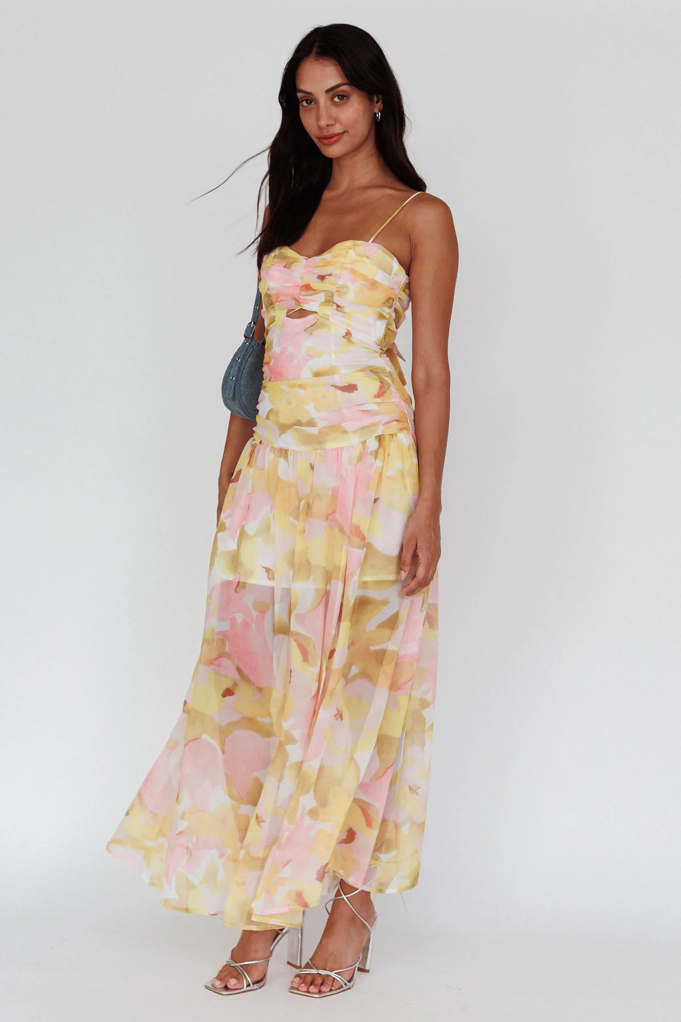 Shooting Stars One-Shoulder Maxi Dress Yellow