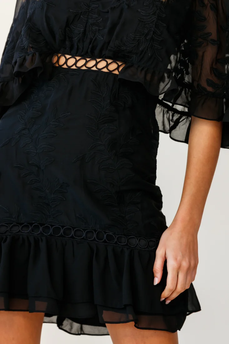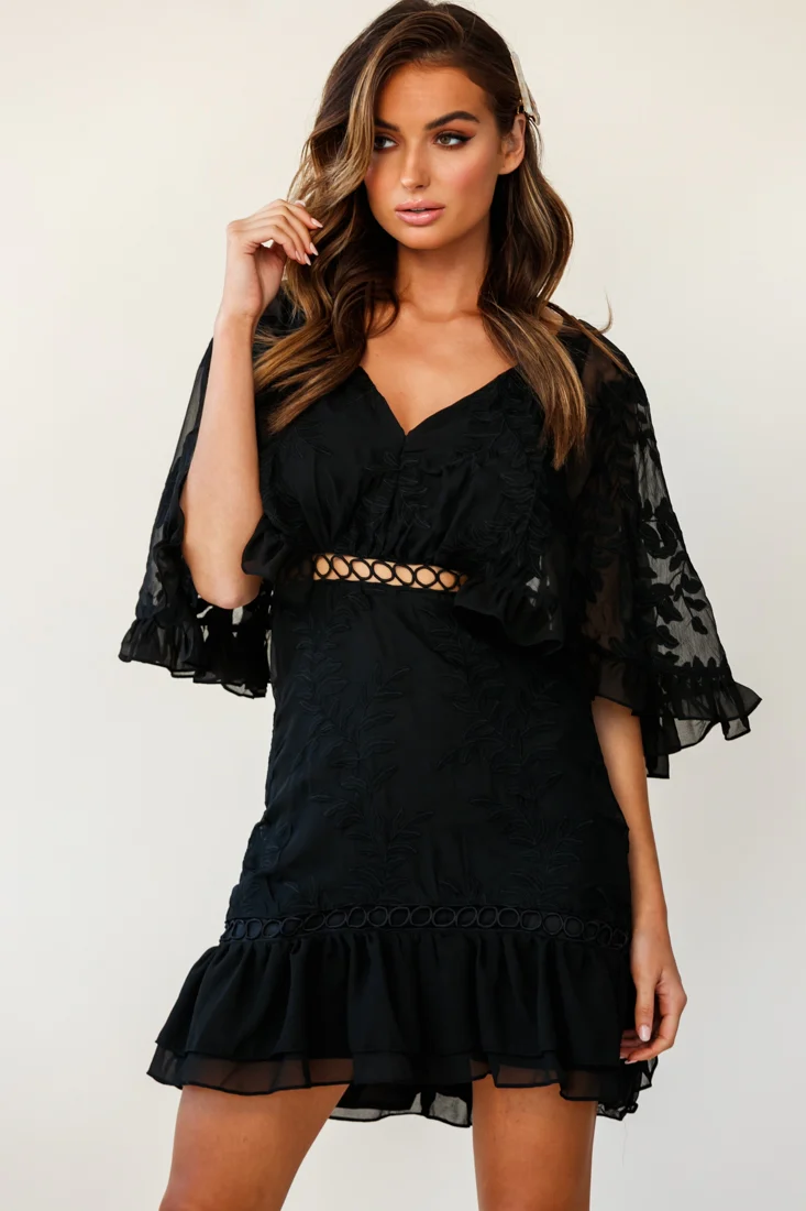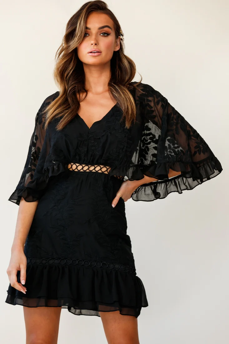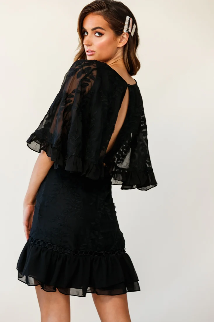 Bellini Tiered Ruffle Sleeve Dress Wine