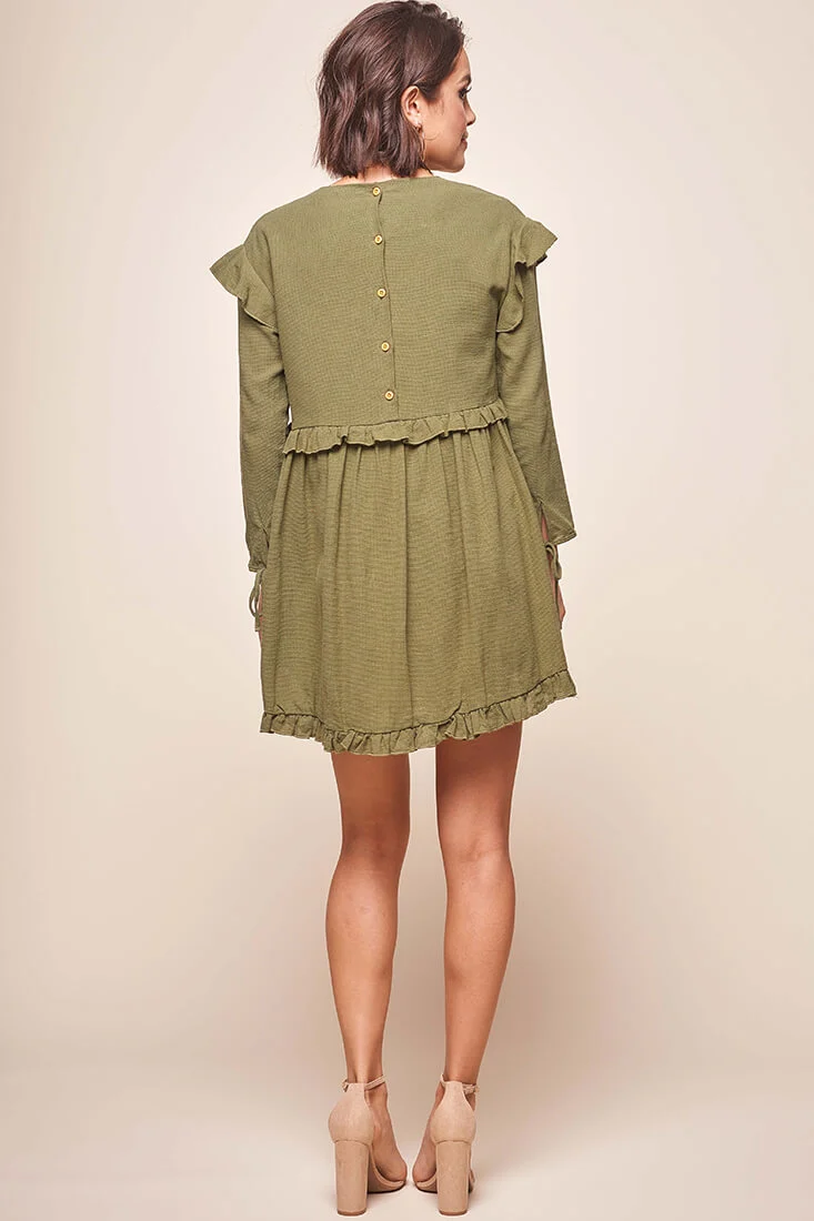 Cutie Pie Long Sleeve Babydoll Dress Grey