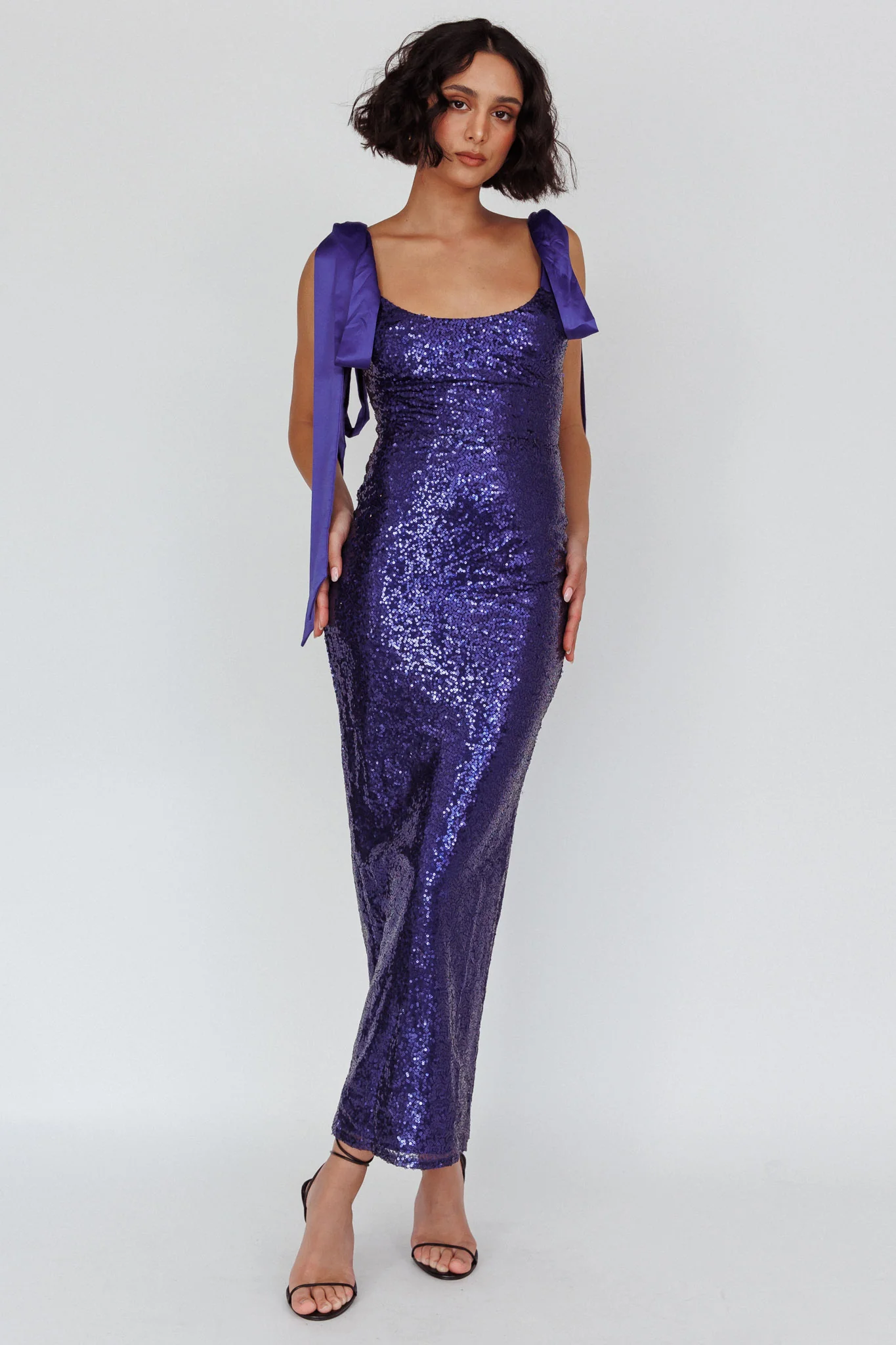 Birthday Wish Tied Shoulder Sequin Maxi Dress Blue