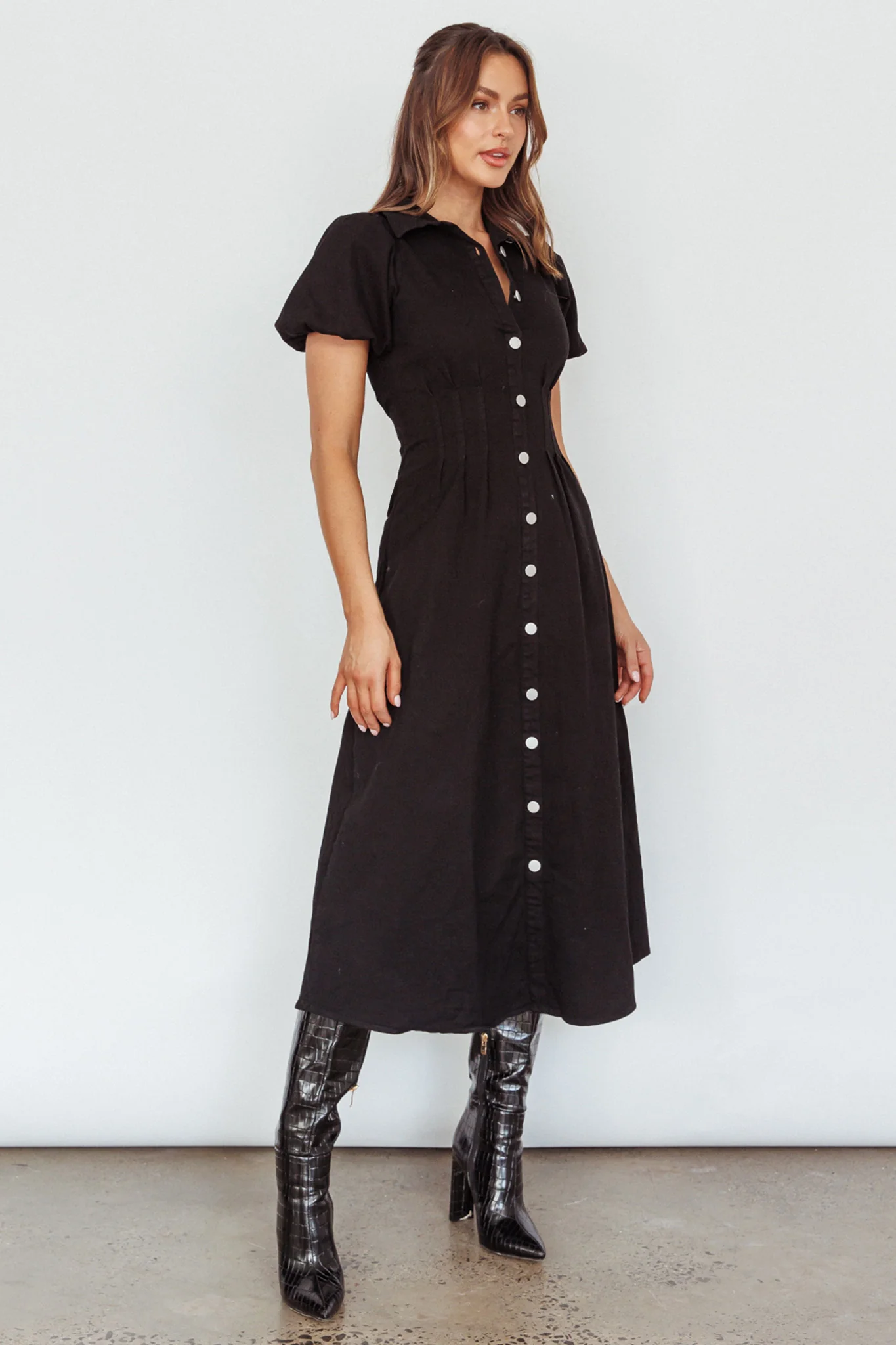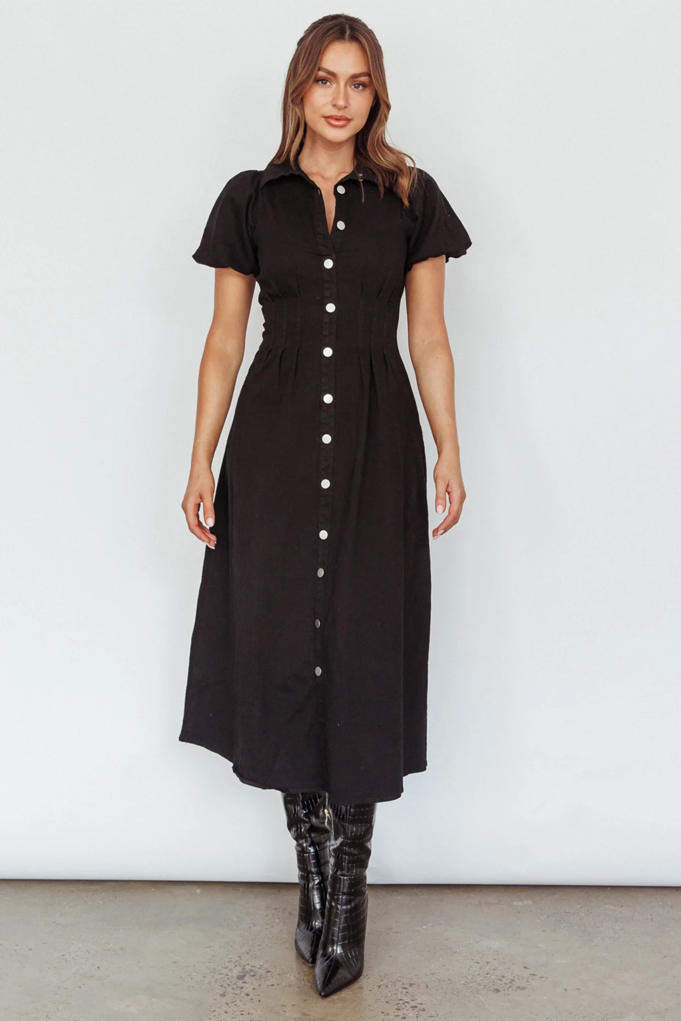 Zurich Pleated Waist Midi Dress Black