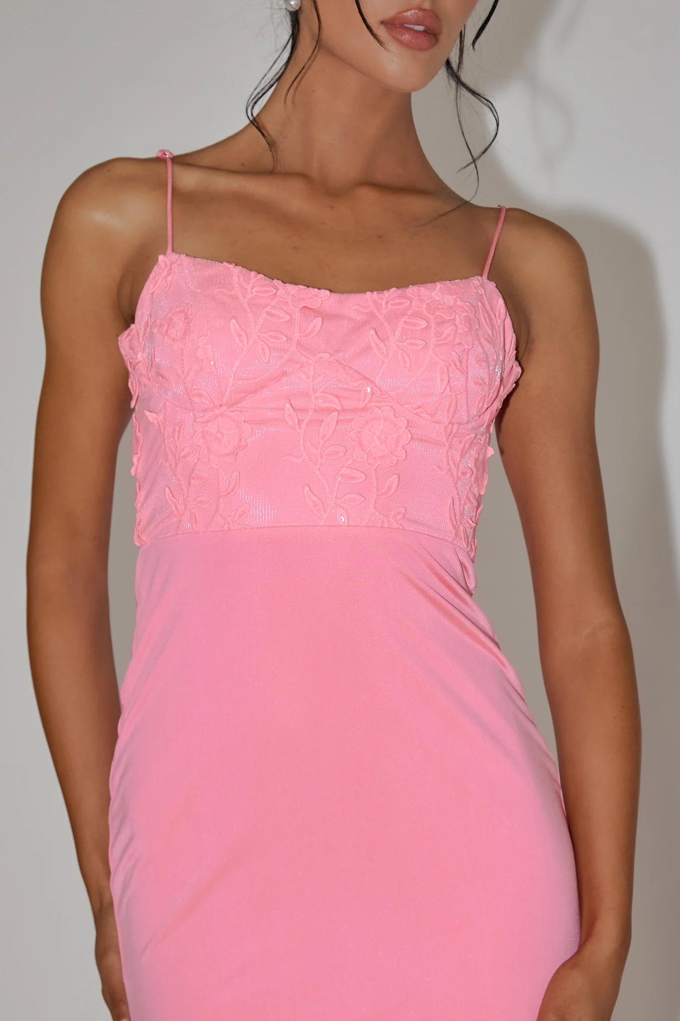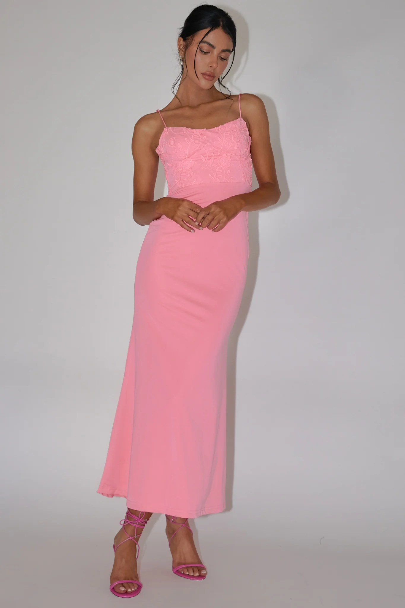 Likita Floral Applique Bodice Maxi Dress Pink