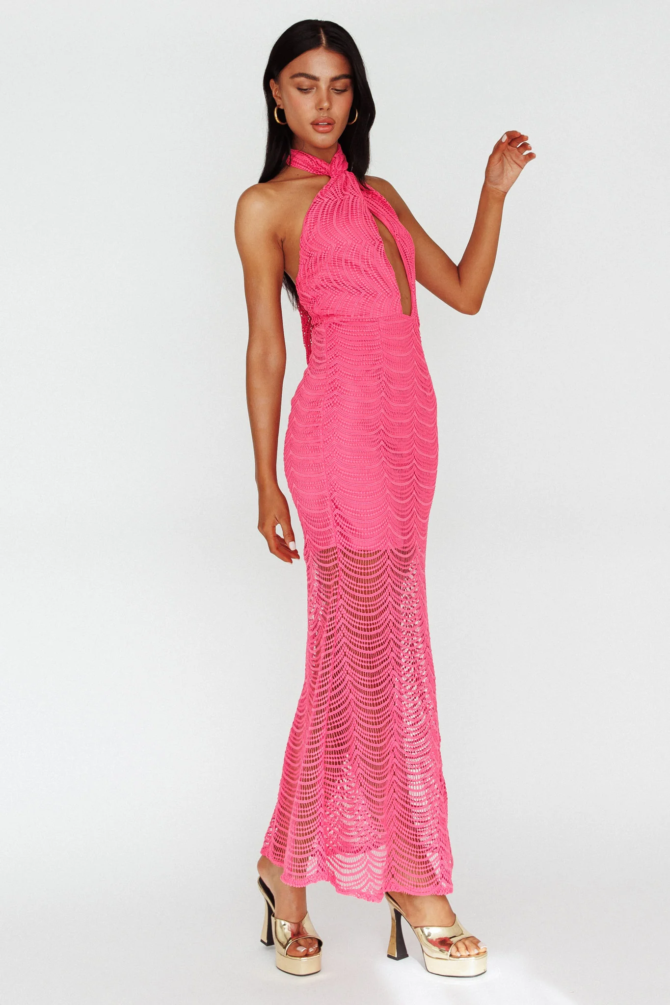 Costa Halterneck Midi Dress Pink