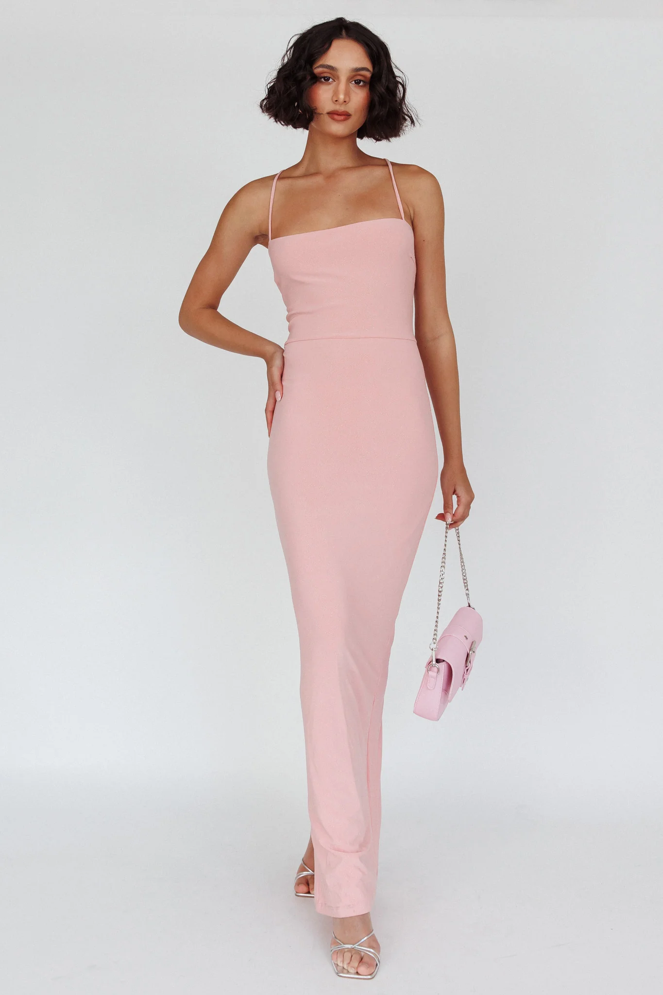 Ailani Lace-Up Back Maxi Dress Sparkle Pink