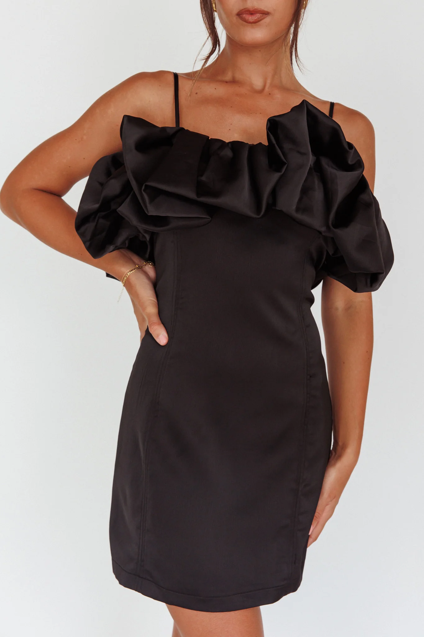 All The Drama Bubble Neckline Mini Dress Black