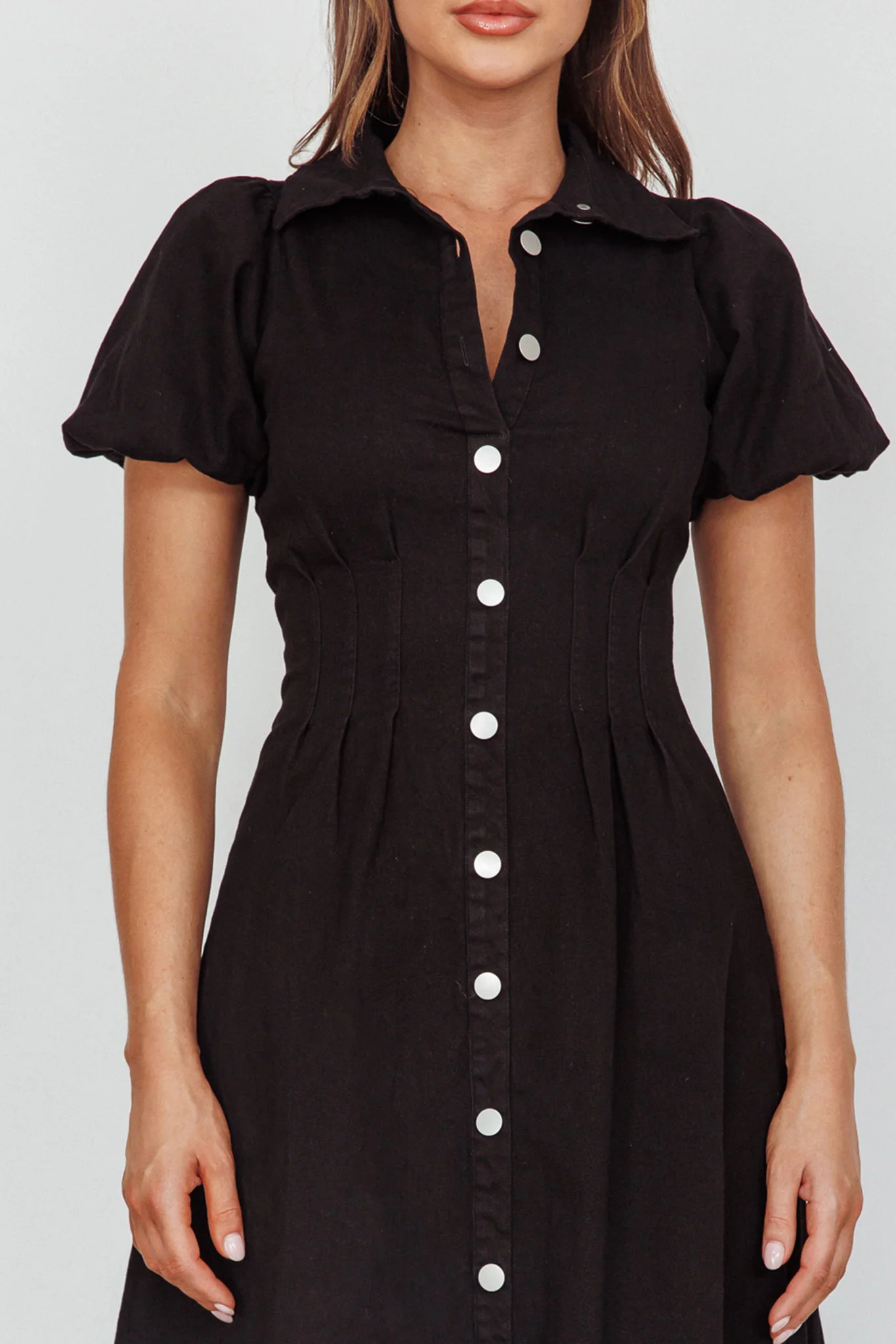 Liardon Bubble Sleeve V-Neckline Mini Dress Black